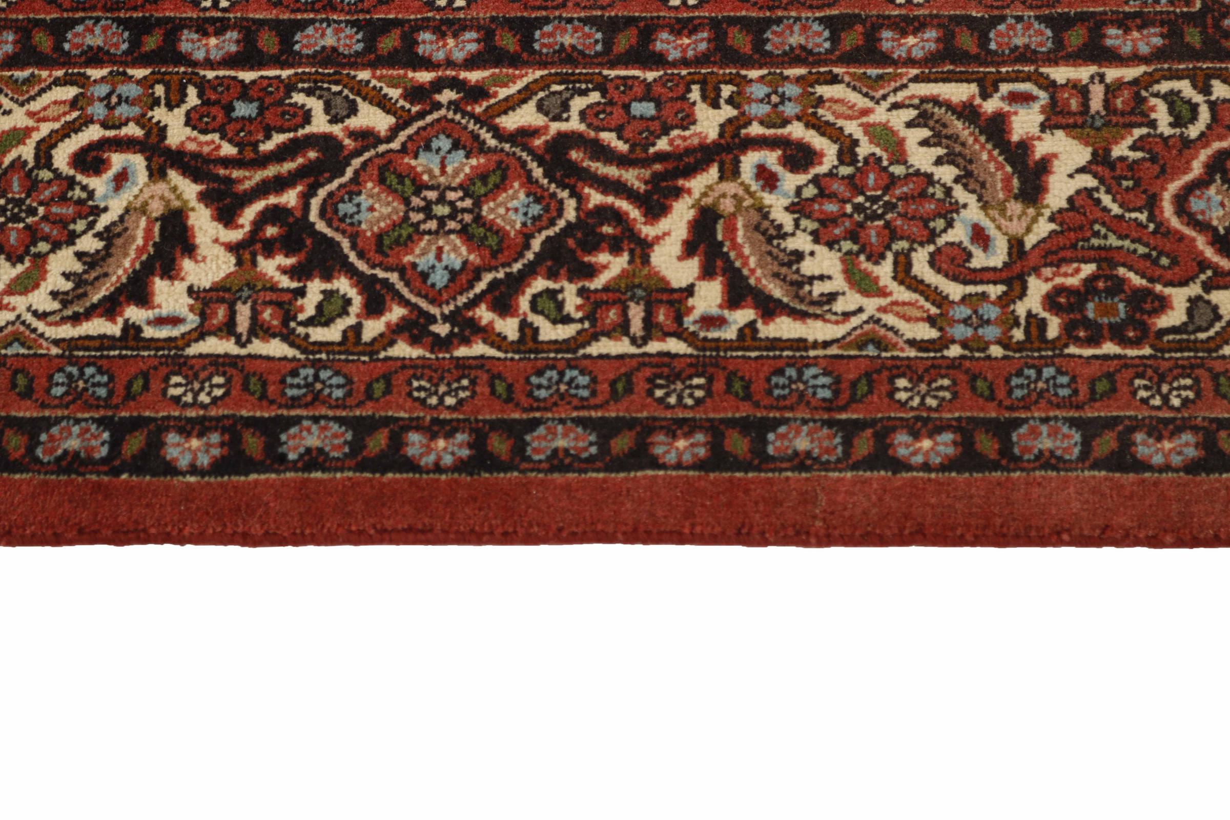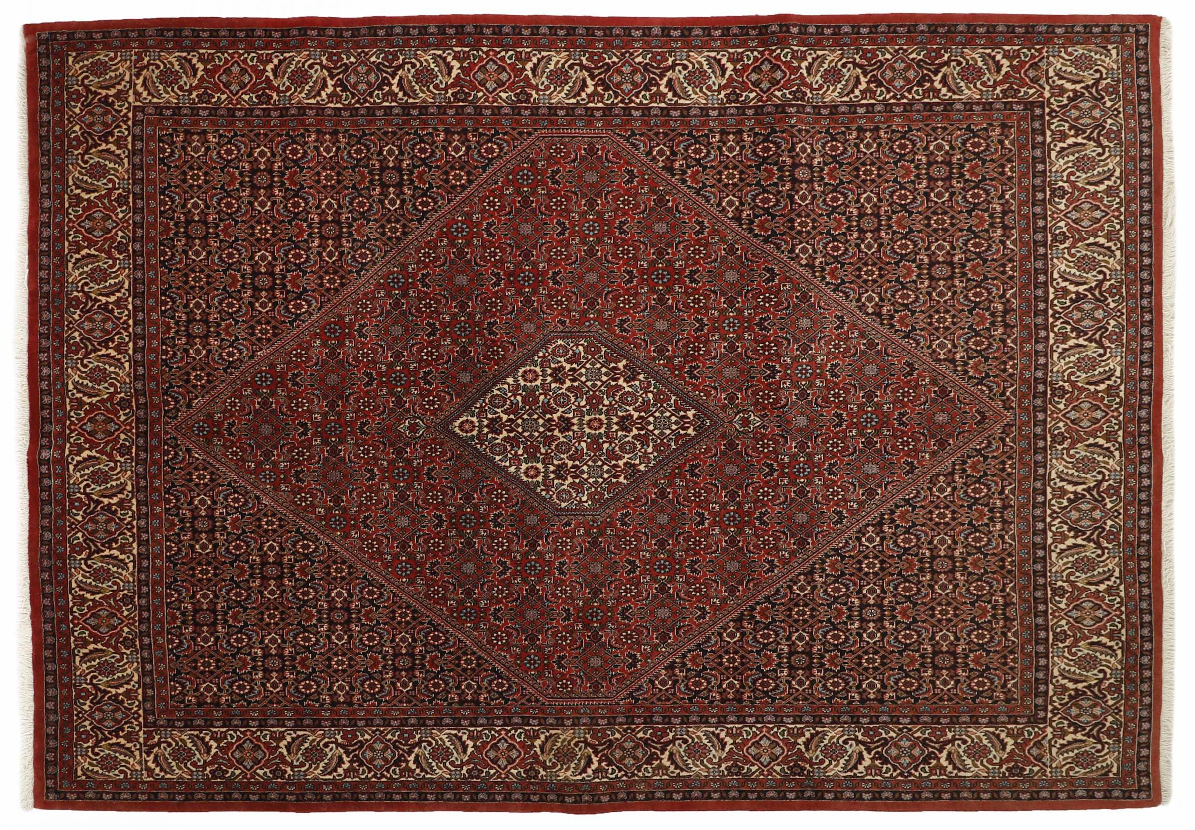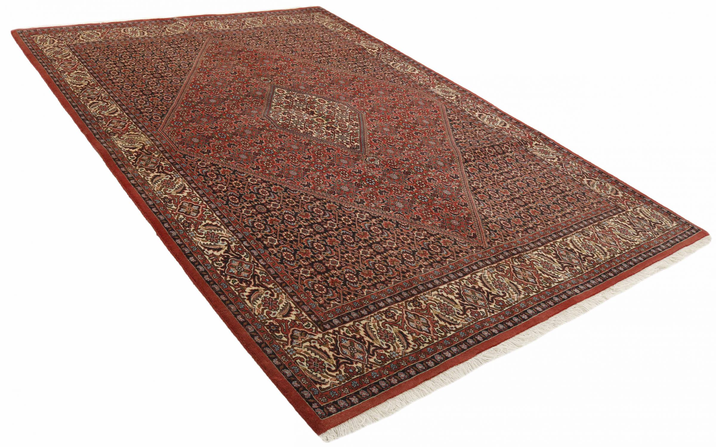 Esta alfombra persa fue anudada a mano en una pequeña ciudad kurda en el oeste de Irán. Las Bidjar son sinónimo de calidad. Su terciopelo compacto cautiva con su alta densidad y con ello resistencia al desgaste. Se lo aseguramos: esta alfombra kurda deleita desde el principio. E incluso le seguirá deleitando muchísimo más con el pasar de los años.