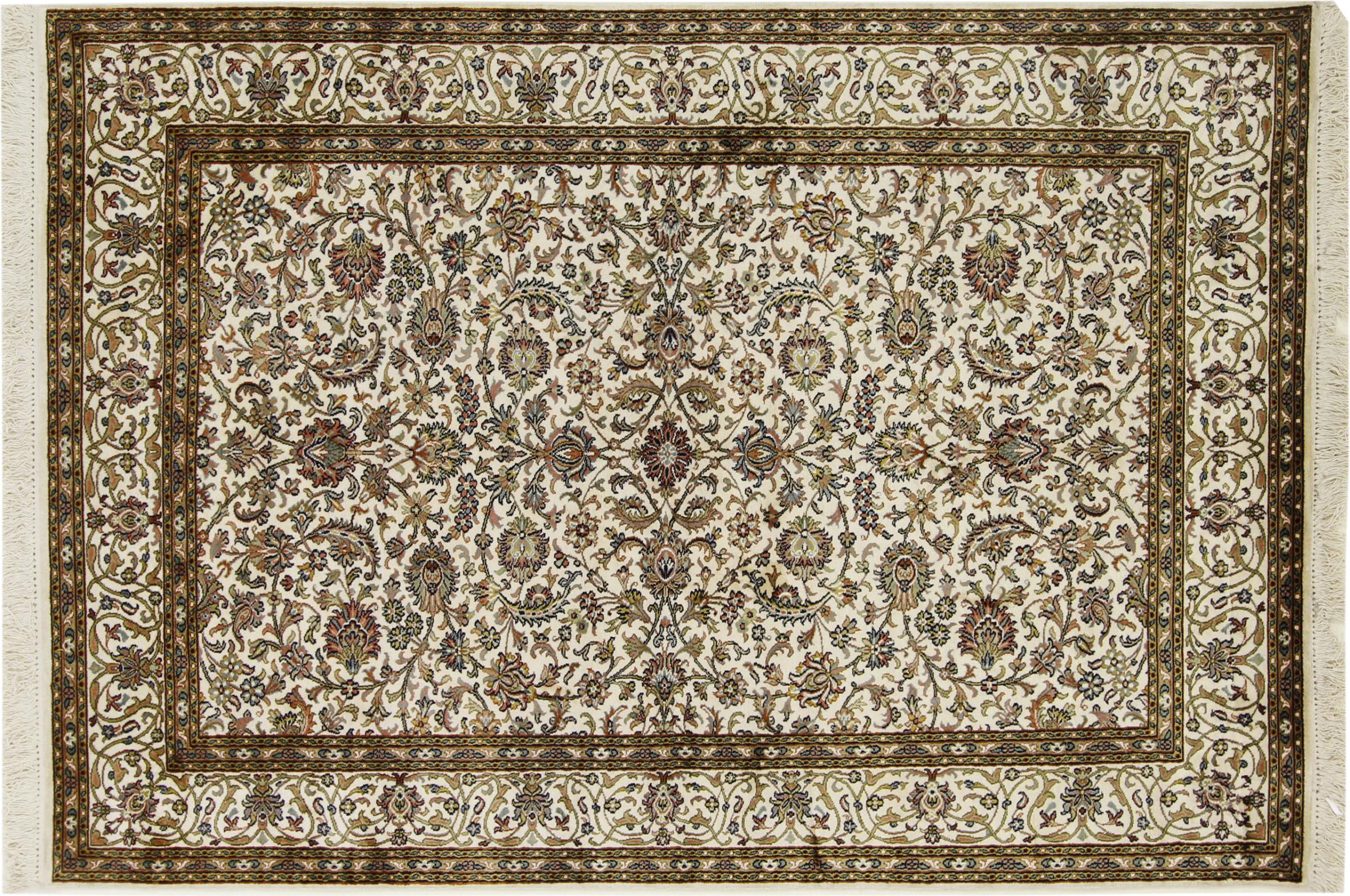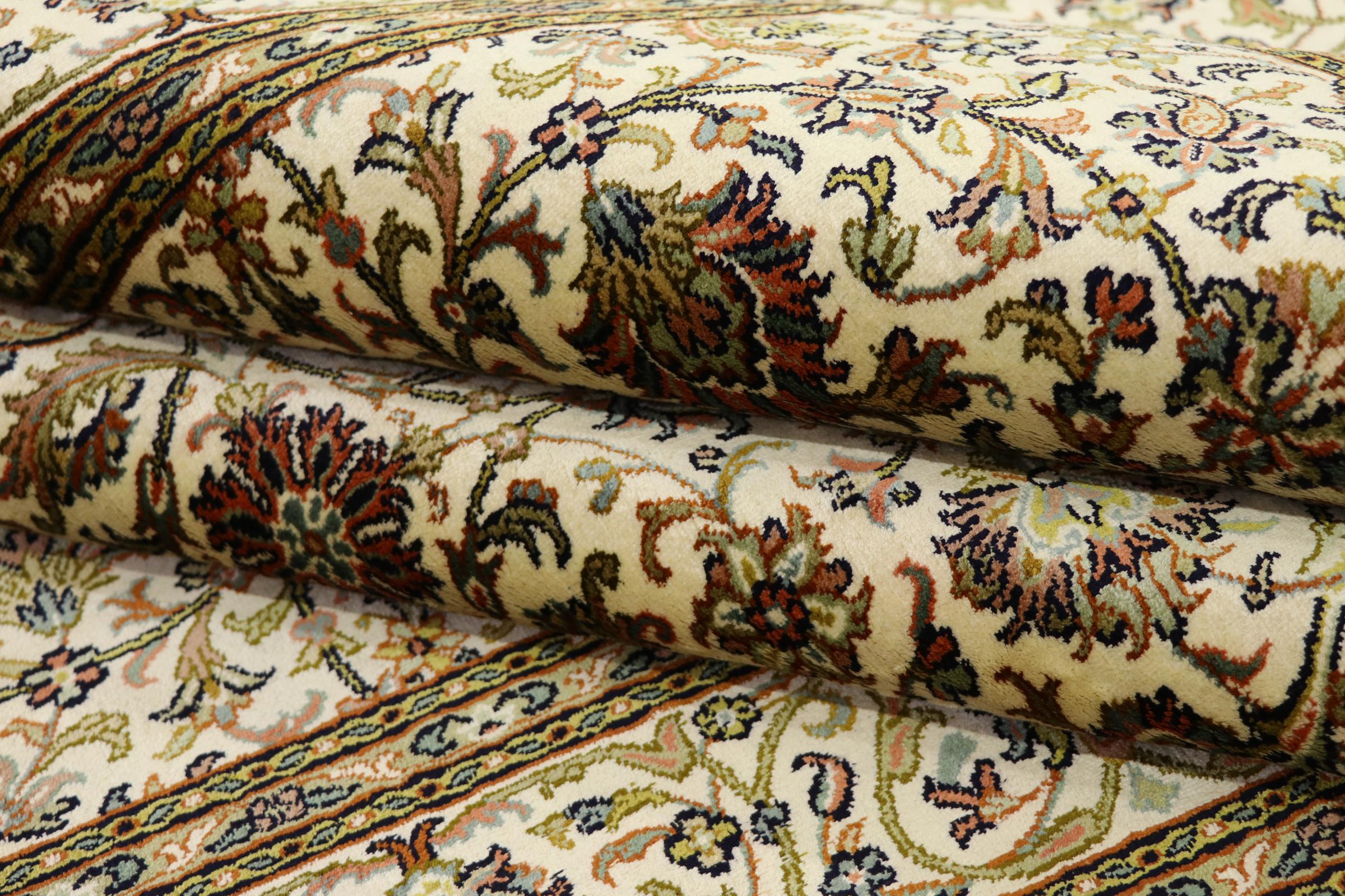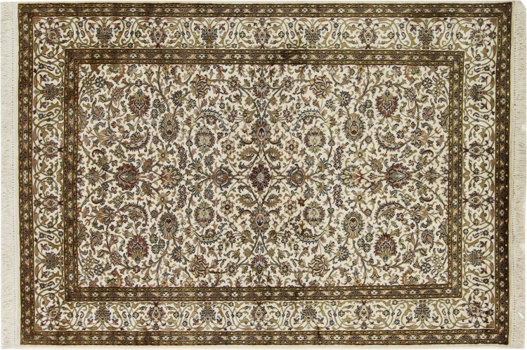 Alfombra número: 314139003174806 Tamaño: 183x127 cm Espesor: alrededor de 7 mm Nudos: 640 000 / m² Elaboración: Anudado a mano Crespón: Seda Urdimbre: Algodón Origen: India Edad: Nuevo Peso: alrededor de 7 kg Cantidad en stock: Única - Solo 1 en stock
