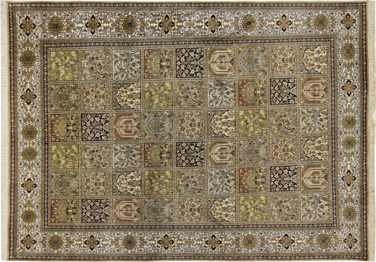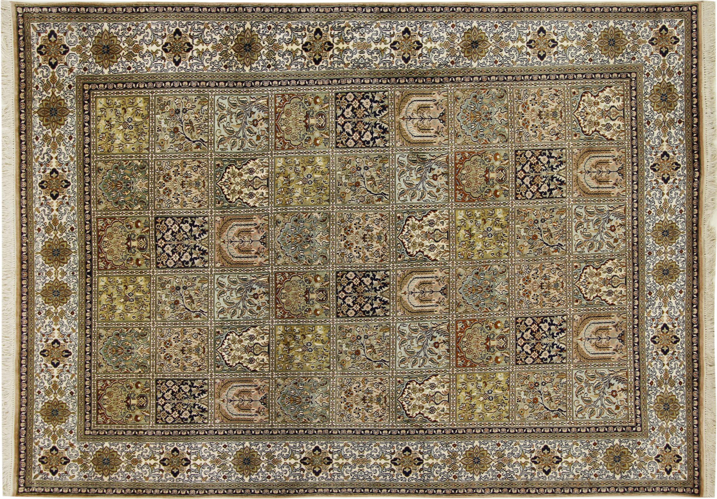 Alfombra número: 31413400302575 Tamaño: 240x174 cm Espesor: alrededor de 7 mm Nudos: 640 000 / m² Elaboración: Anudado a mano Crespón: Seda Urdimbre: Algodón Origen: India Edad: Nuevo Peso: alrededor de 13 kg Cantidad en stock: Única - Solo 1 en stock