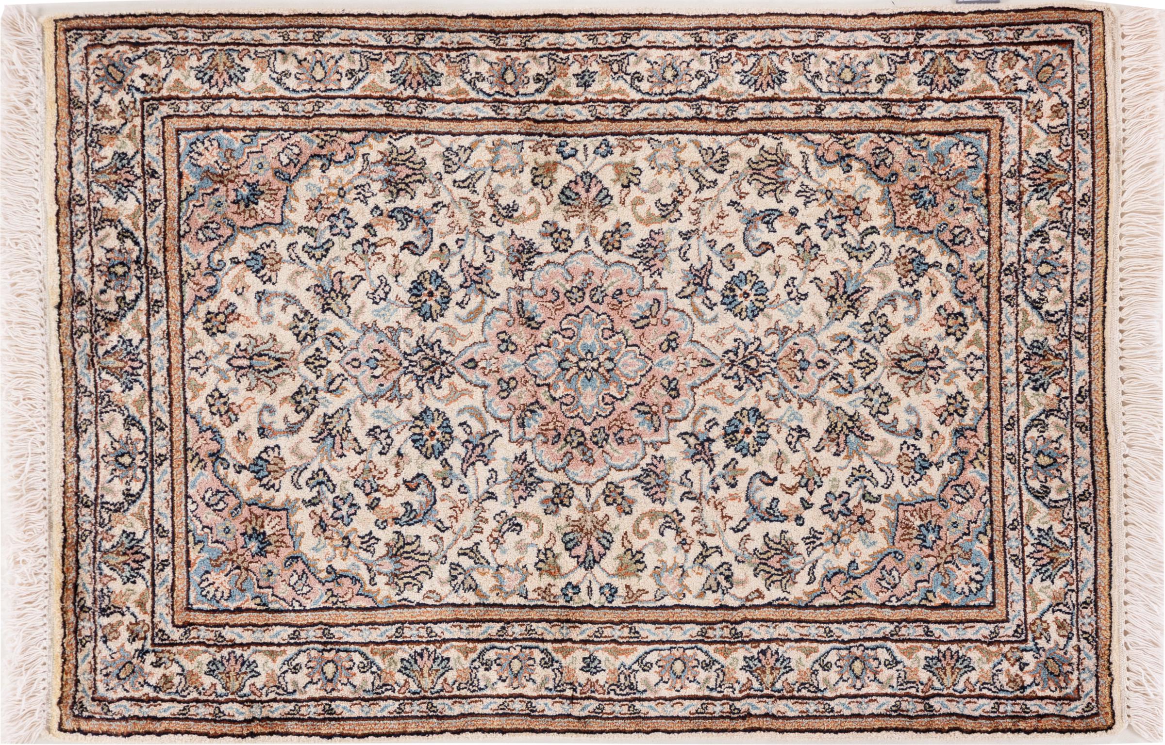 Alfombra número: 30712300105626 Tamaño: 91x62 cm Espesor: alrededor de 7 mm Nudos: 320 000 - 360 000 / m² Elaboración: Anudado a mano Crespón: Seda Urdimbre: Algodón Origen: India Edad: Nuevo Peso: alrededor de 2 kg Cantidad en stock: Única - Solo 1 en stock
