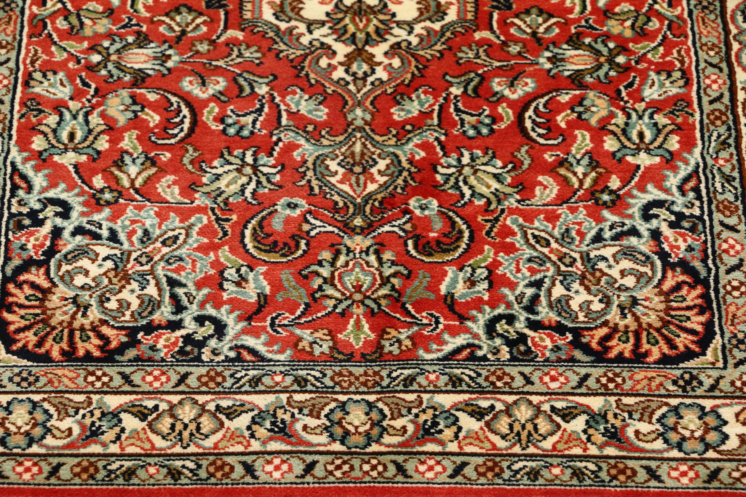 Los tejedores de alfombras de la antigua Persia llegaron a la India hace siglos para practicar su oficio. Así que la India hoy en día tiene una tradición de gran alcance en el tejido de alfombras. Los patrones y adornos se basan a menudo en los conocidos diseños de las alfombras persas. Muchas alfombras orientales anudadas a mano vienen del norte del país. Las alfombras de seda de Cachemira, por ejemplo, provienen de la región de Cachemira, que limita directamente con Pakistán.