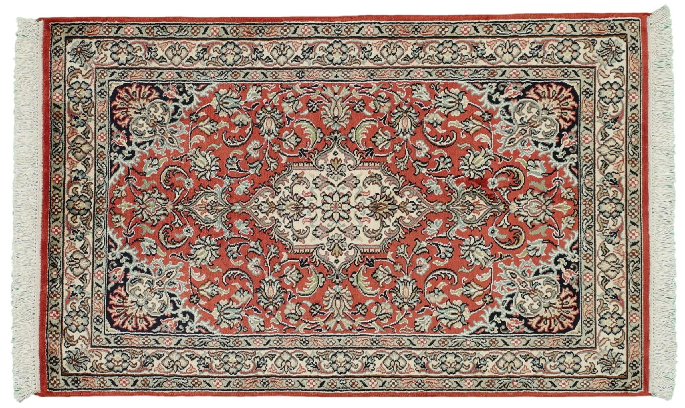 Alfombra número: 309645005088303 Tamaño: 97x61 cm Espesor: alrededor de 7 mm Nudos: 440 000 - 490 000 / m² Elaboración: Anudado a mano Crespón: Seda Urdimbre: Algodón Origen: India Edad: Nuevo Peso: alrededor de 2 kg Cantidad en stock: Única - Solo 1 en stock