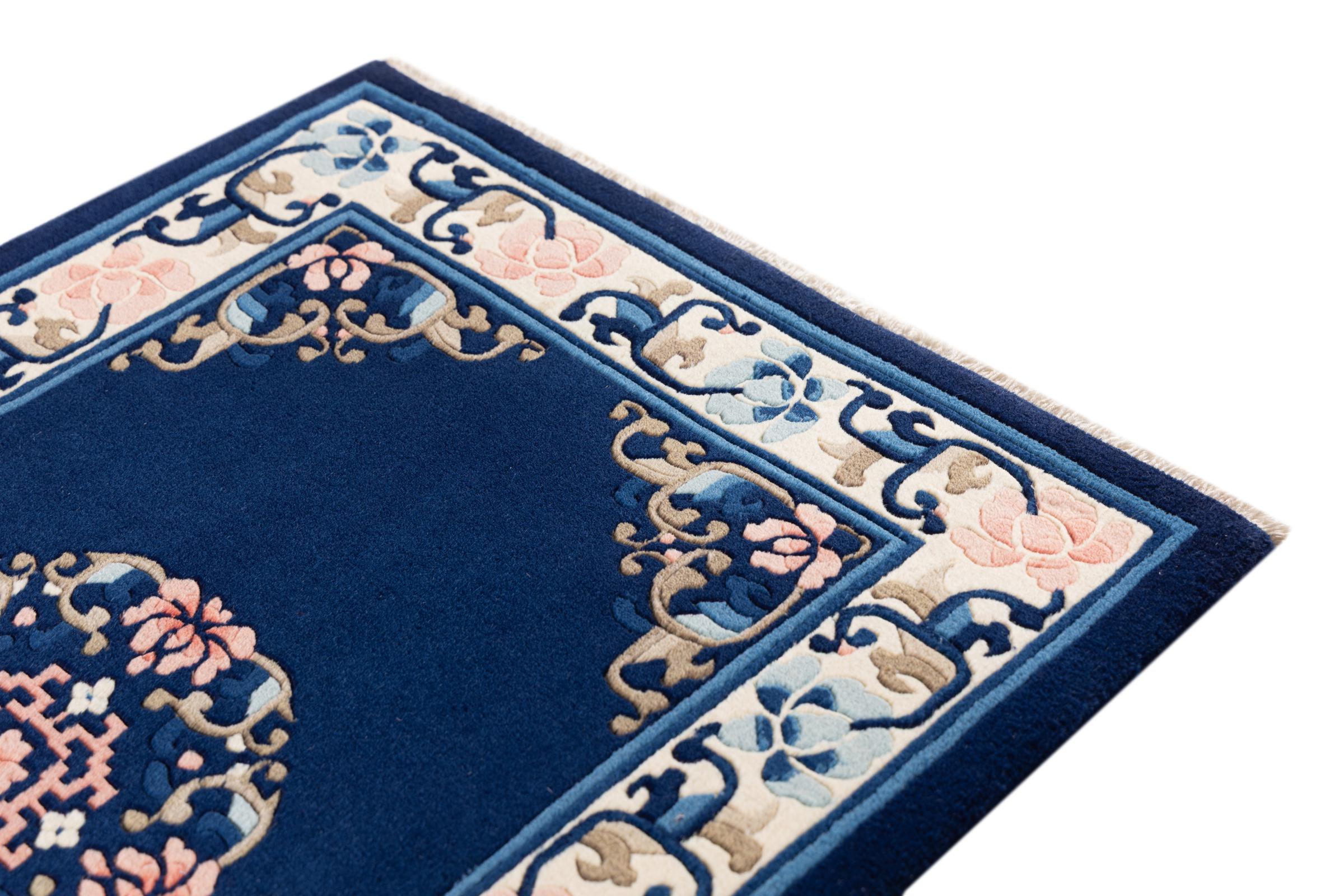 Las alfombras anudadas a mano de China tienen una tradición que se remonta a miles de años y fueron anudadas para la corte imperial. Su diseño está inequívocamente determinado por motivos de la pintura de porcelana, como los típicos patrones florales, pájaros o incluso dragones. Hoy en día, estos diseños se han vuelto mucho más raros, ya que las alfombras están más orientadas a la apariencia de las alfombras persas.