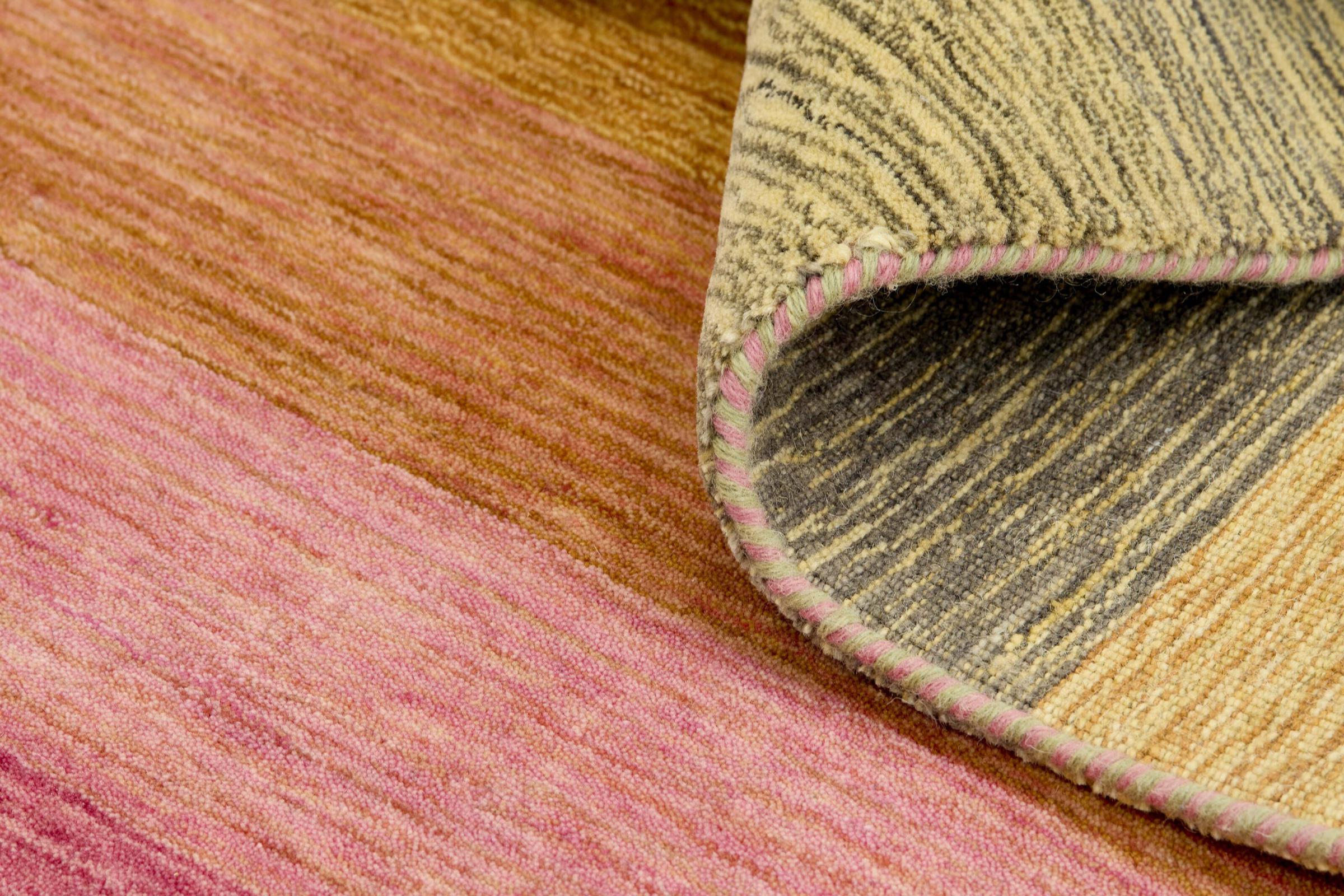 Esta alfombra de diseño hecha a mano recoge deliberadamente sutiles gradaciones de un determinado espectro de colores. Esto crea un diseño tranquilo y al mismo tiempo moderno. Se ha utilizado lana natural junto con viscosa para crear un hermoso brillo. Esto hace que la gama de colores sea realmente impresionante.
