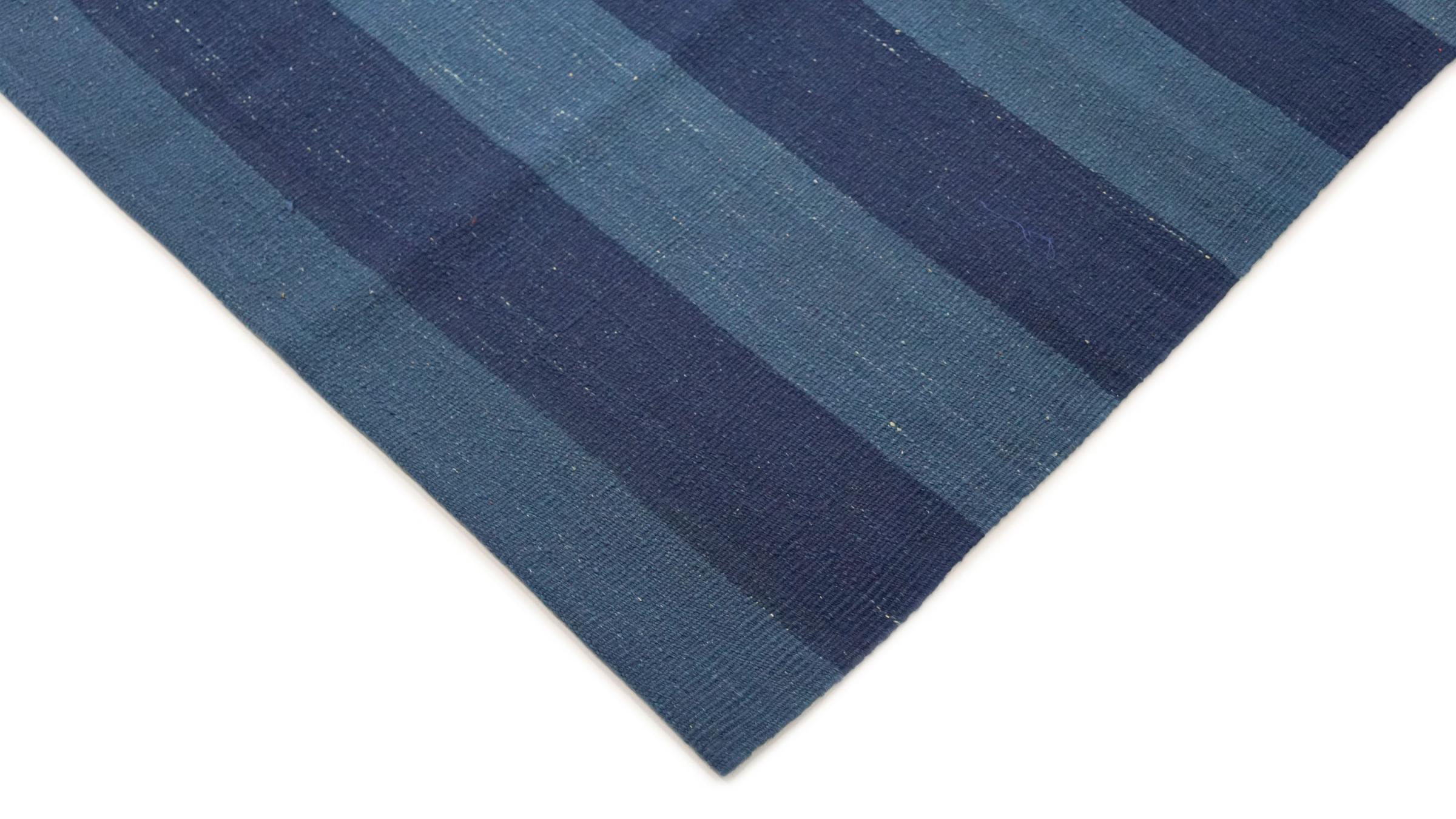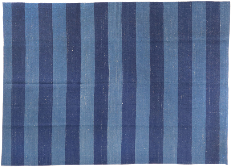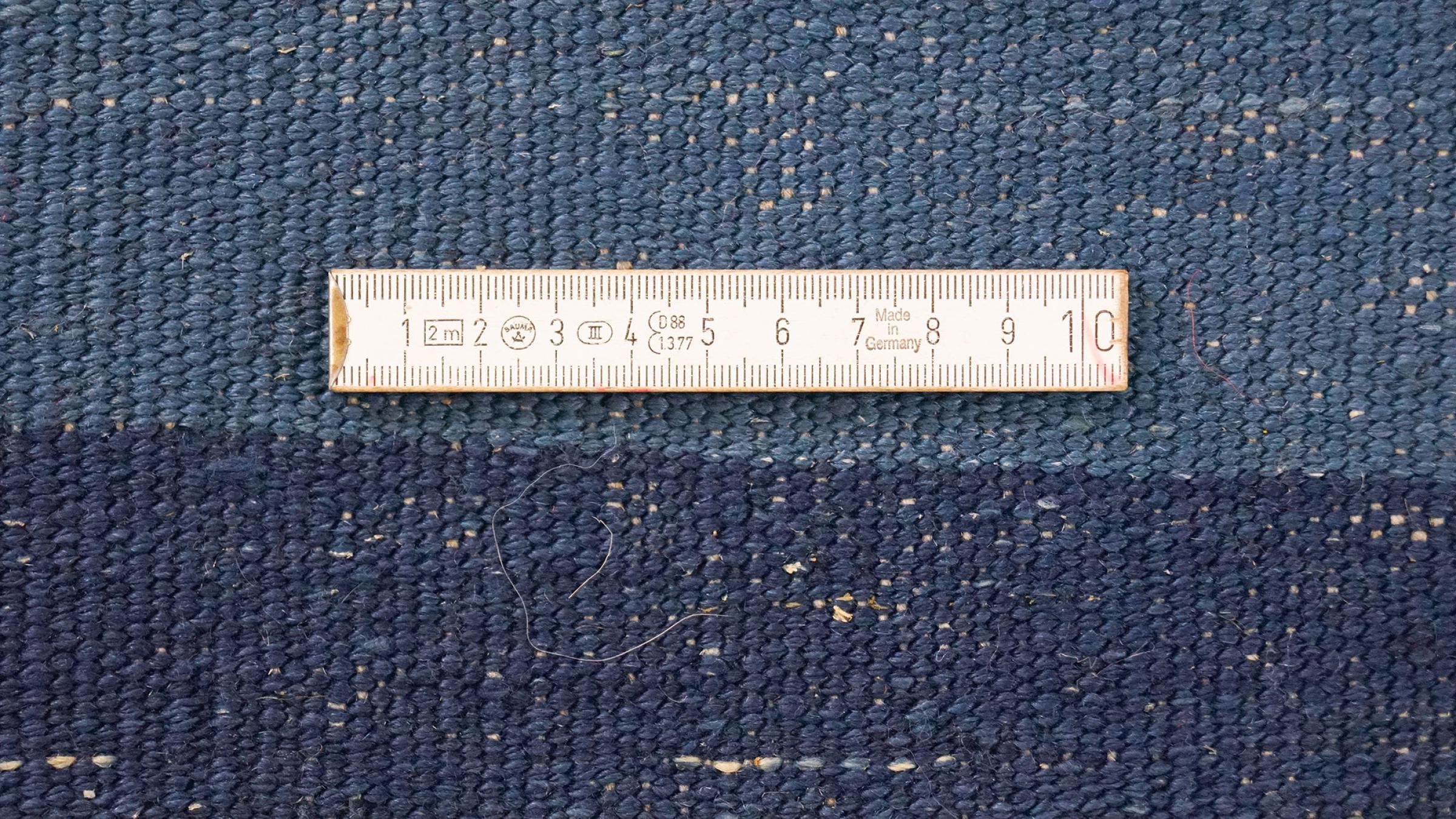 Esta alfombra fue hecha a mano en un telar como un tejido plano. Tejido plano es el término utilizado para describir las alfombras que no tienen pelo. Como el nombre promete, estas alfombras están tejidas y no anudadas. Esto resulta en una alfombra plana con una superficie estructurada. Los tejidos planos no son tan suaves y normalmente más delgados que las alfombras anudadas. Al mismo tiempo, su fabricación es mucho menos compleja y por lo general se pueden disponer por ambos lados (frontal y posterior). Sus patrones suelen ser geométricos, lo cual está determinado por el tejido.