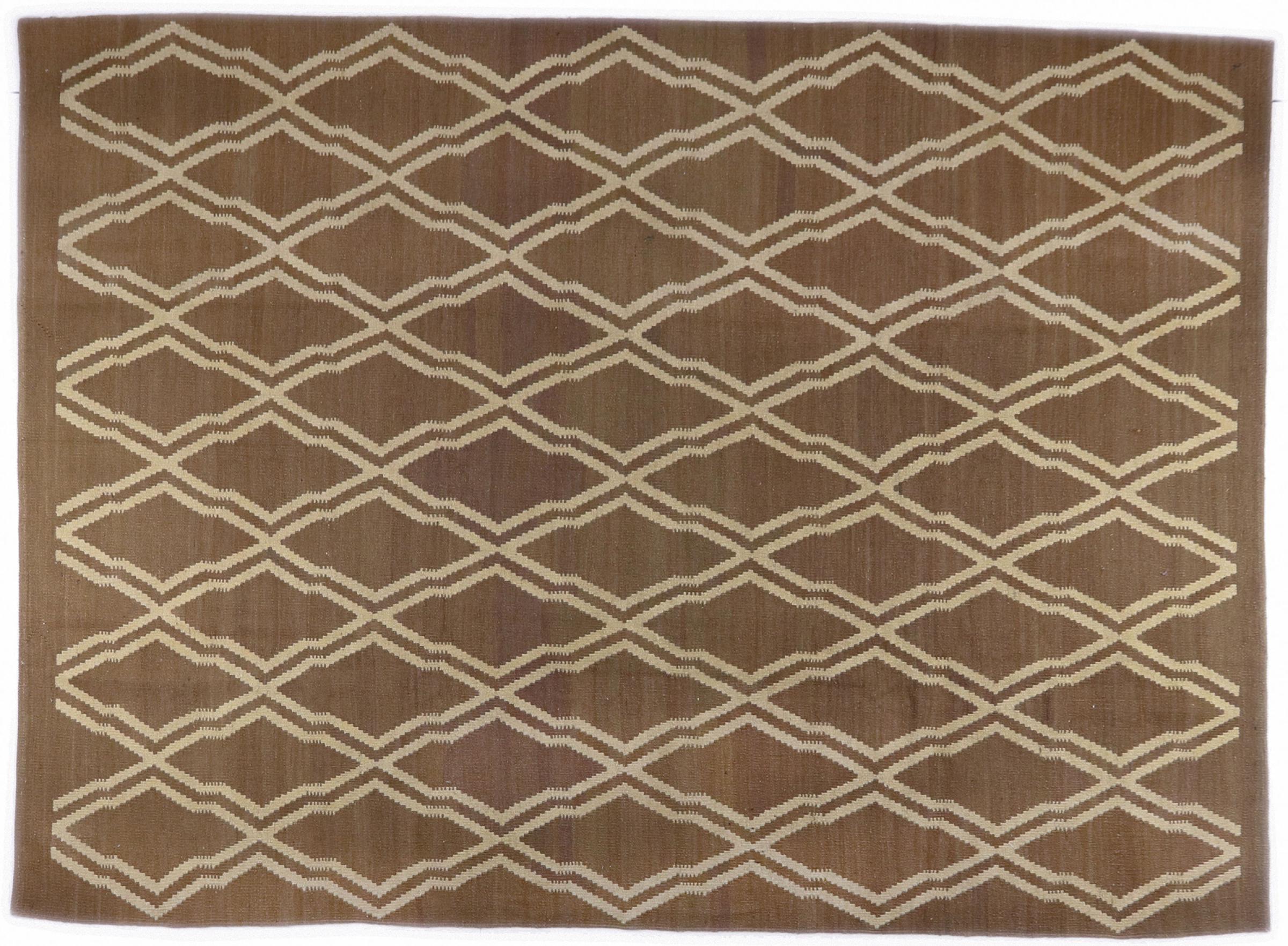 Este Eylisian es un kilim de diseño moderno, de tejido plano y de muy alta calidad. Su lana natural/hilada a mano fue tejida a mano según un diseño contemporáneo utilizando la técnica tradicional persa. Su calidad robusta y duradera lo convierte en un atractivo popular, contemporáneo y atemporal en su hogar.