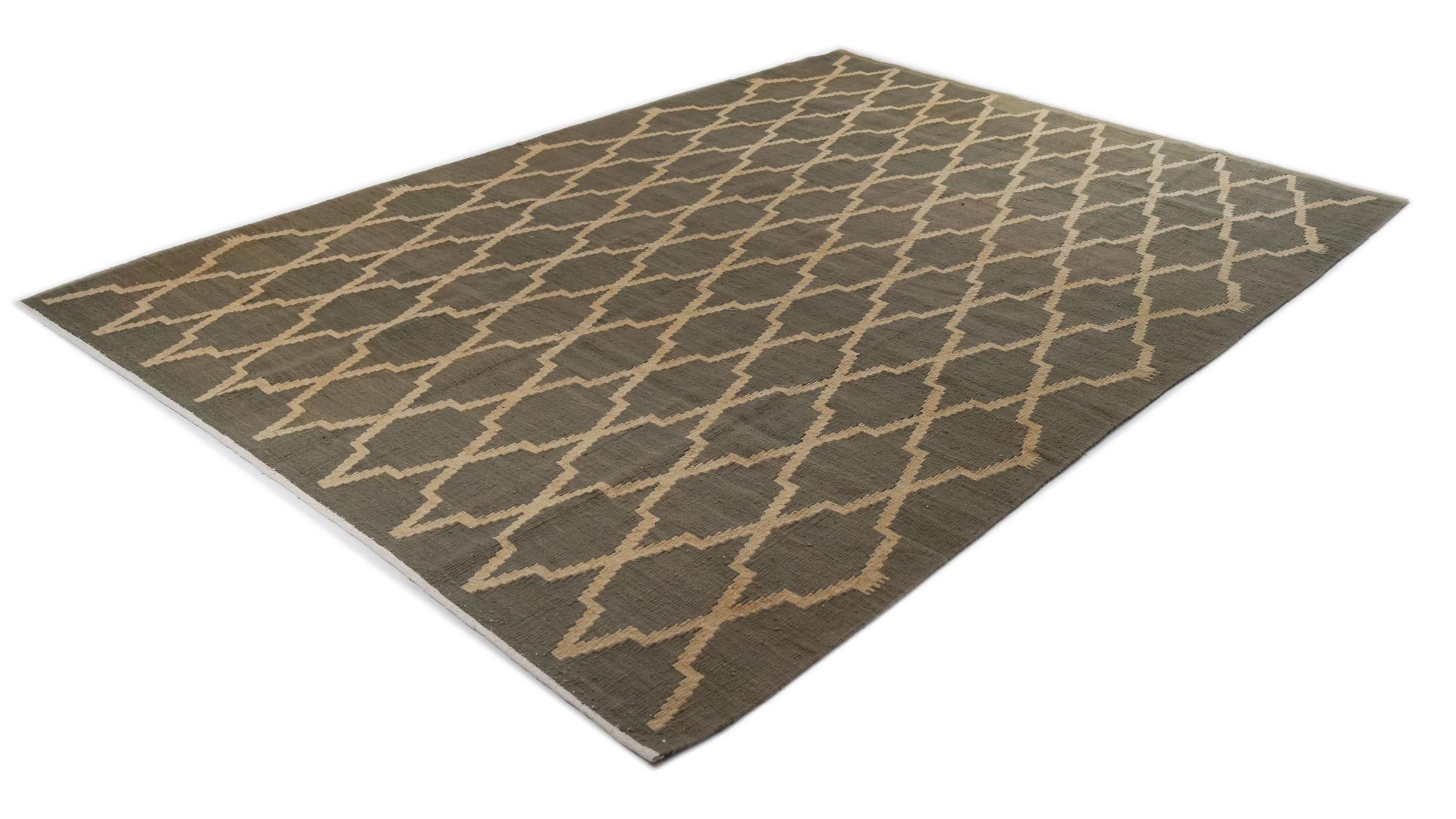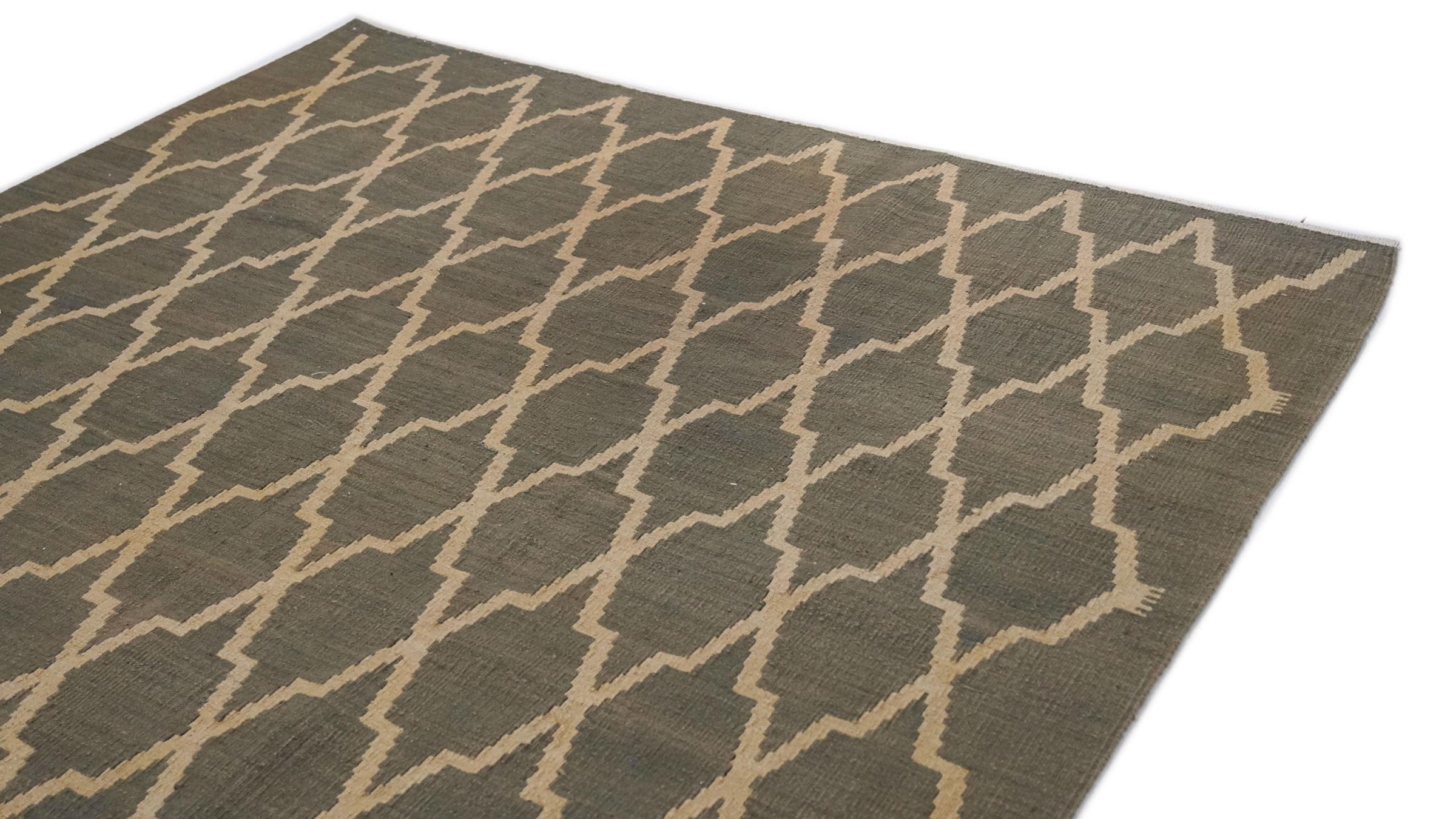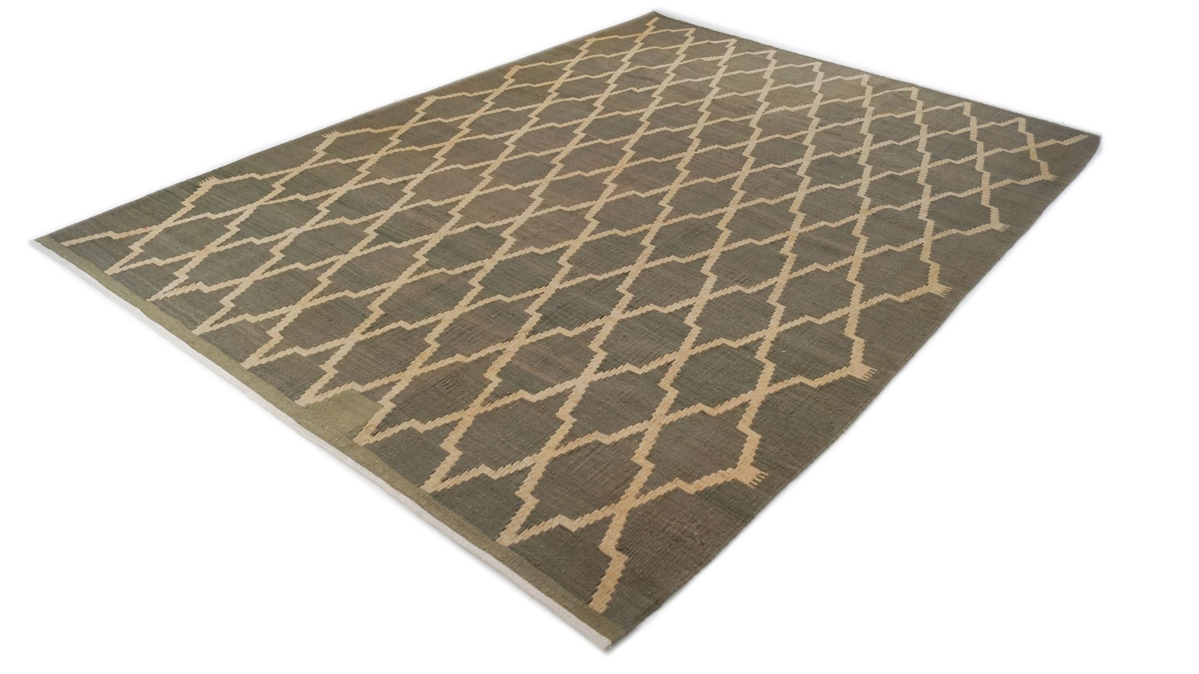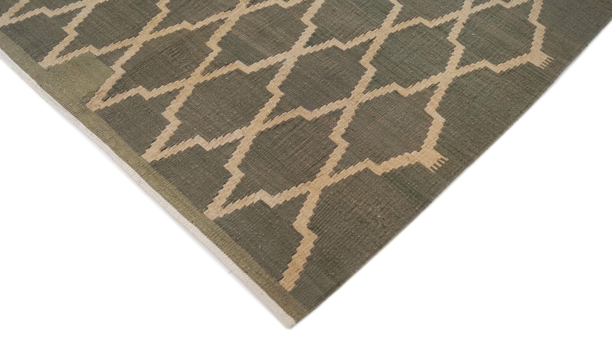 Este Eylisian es un kilim de diseño moderno, de tejido plano y de muy alta calidad. Su lana natural/hilada a mano fue tejida a mano según un diseño contemporáneo utilizando la técnica tradicional persa. Su calidad robusta y duradera lo convierte en un atractivo popular, contemporáneo y atemporal en su hogar.