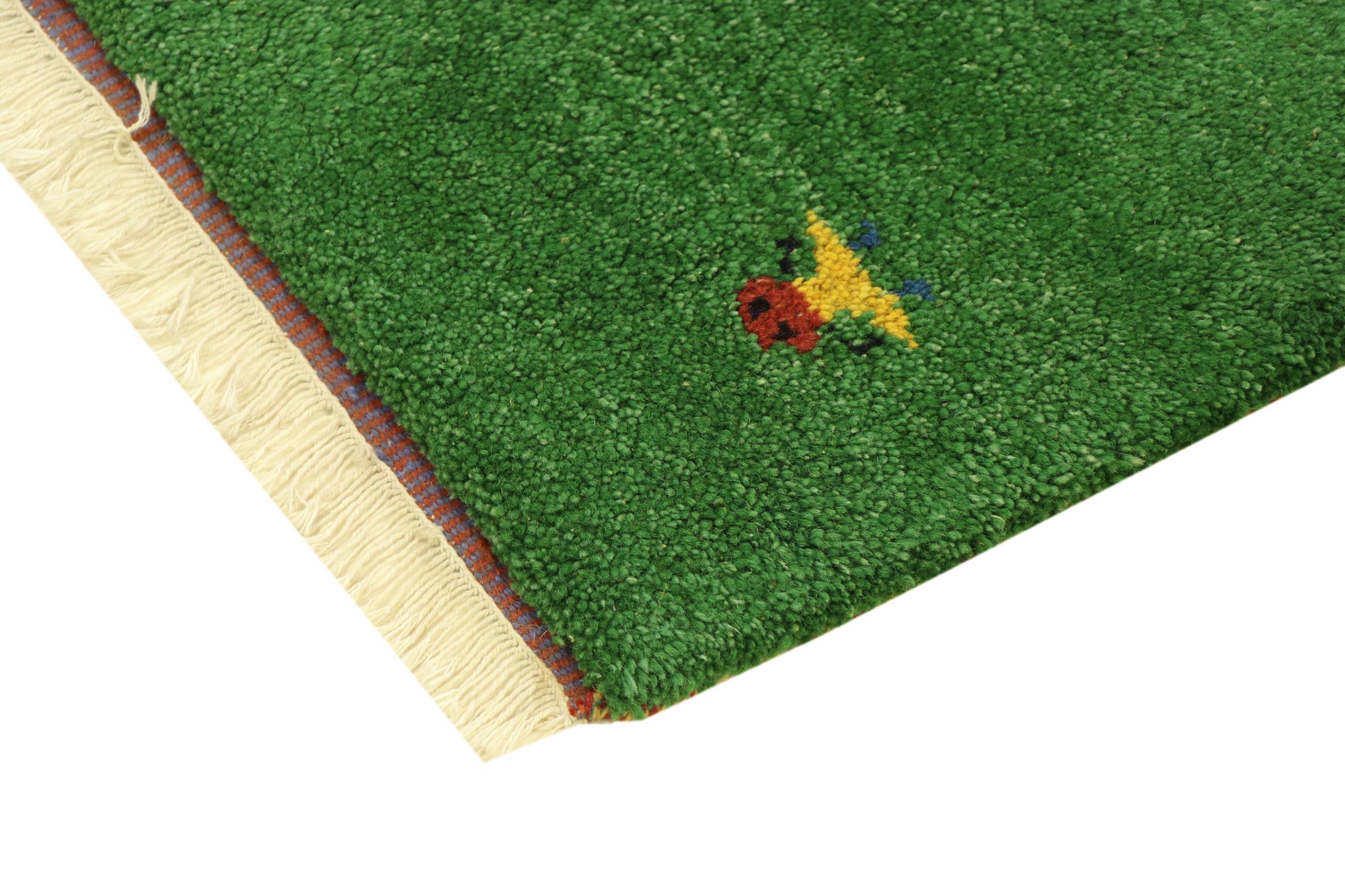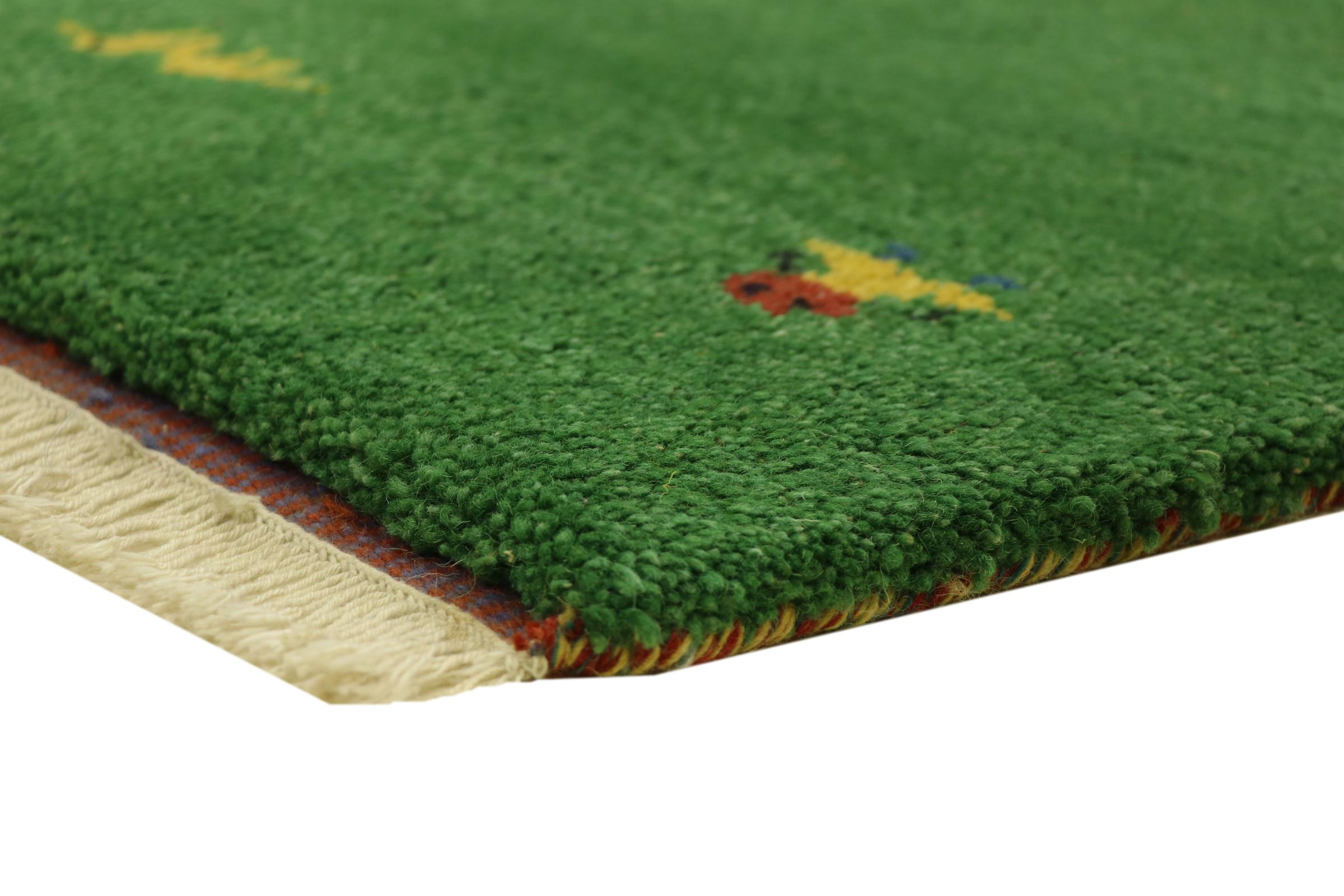 Esta hermosa alfombra de Gabbeh fue anudada a mano en la India. Las alfombras indias de Gabbeh están hechas de suave lana de oveja, son cómodas para los pies y tienen propiedades de aislamiento térmico. La mayoría de sus diseños son simples y modernos atemporales. Se inspiraron en los pueblos nómadas, que dejaban fluir en las alfombras motivos muy simples de su entorno. Las alfombras de Gabbeh de la India no se acercan mucho a la calidad de las de Gabbeh de Persia, pero tienen una muy buena relación precio-rendimiento. Por lo tanto, son perfectamente adecuadas como alfombras anudadas a mano para principiantes.