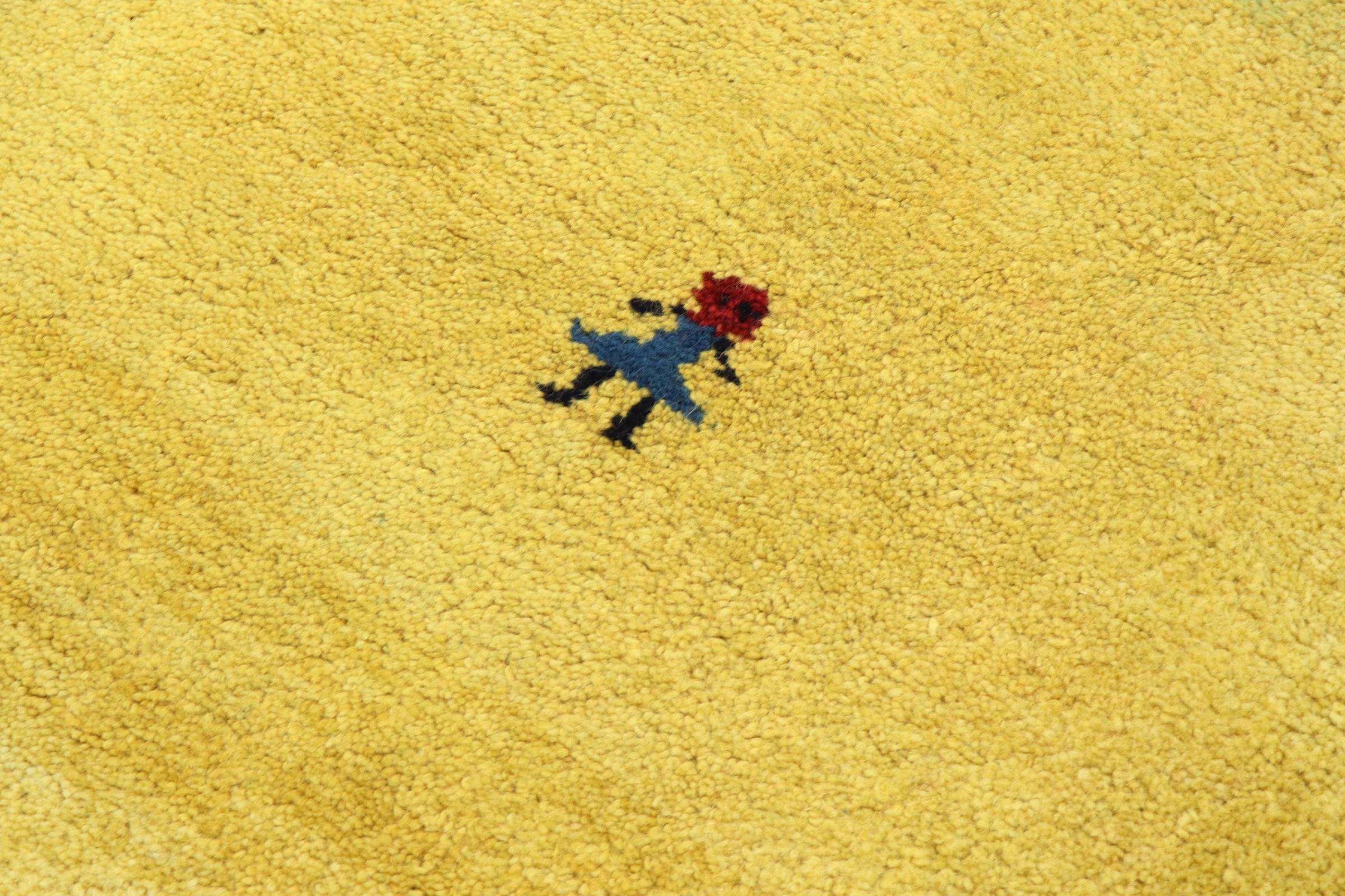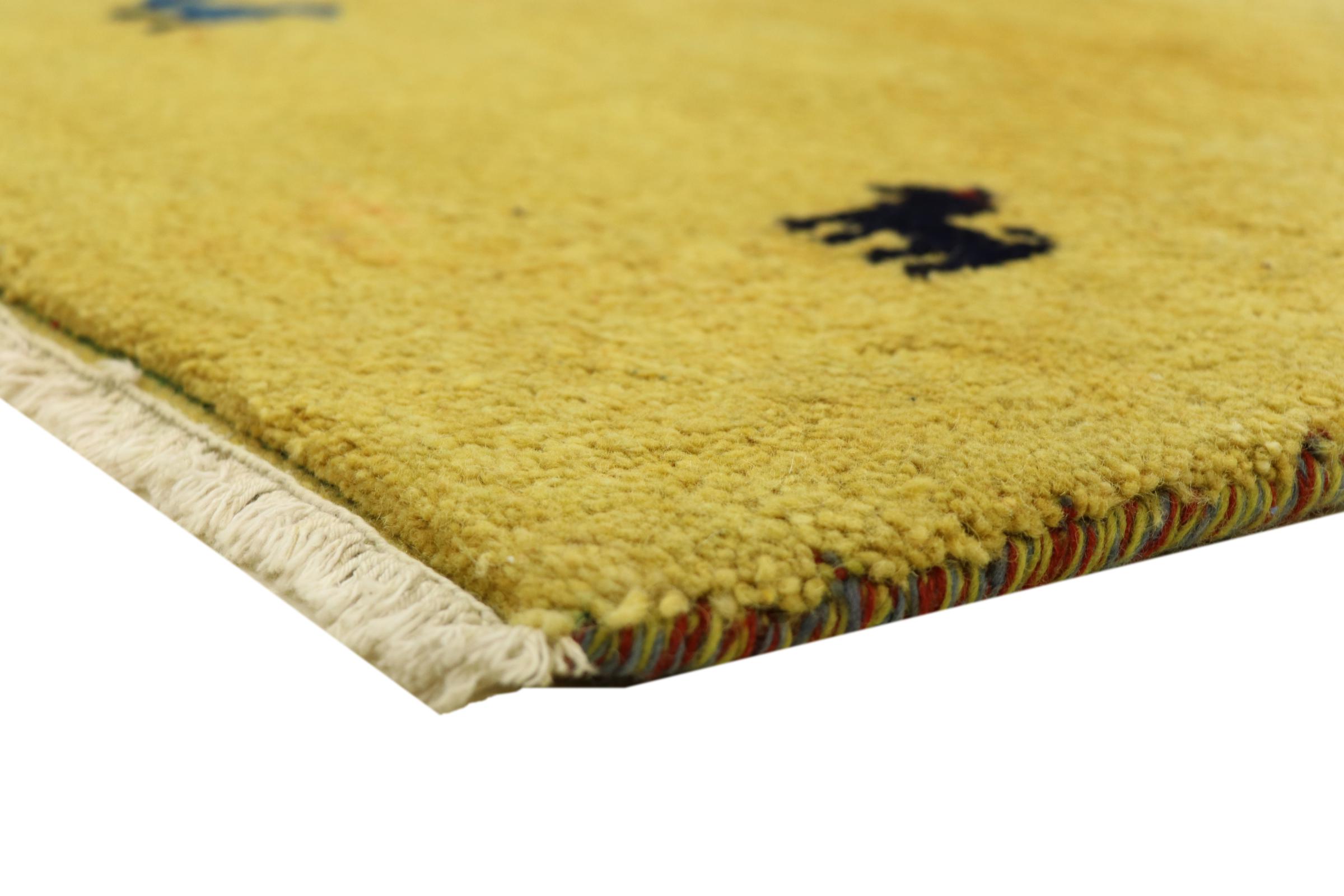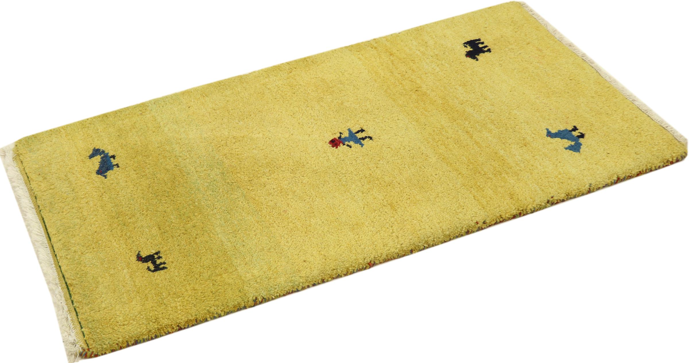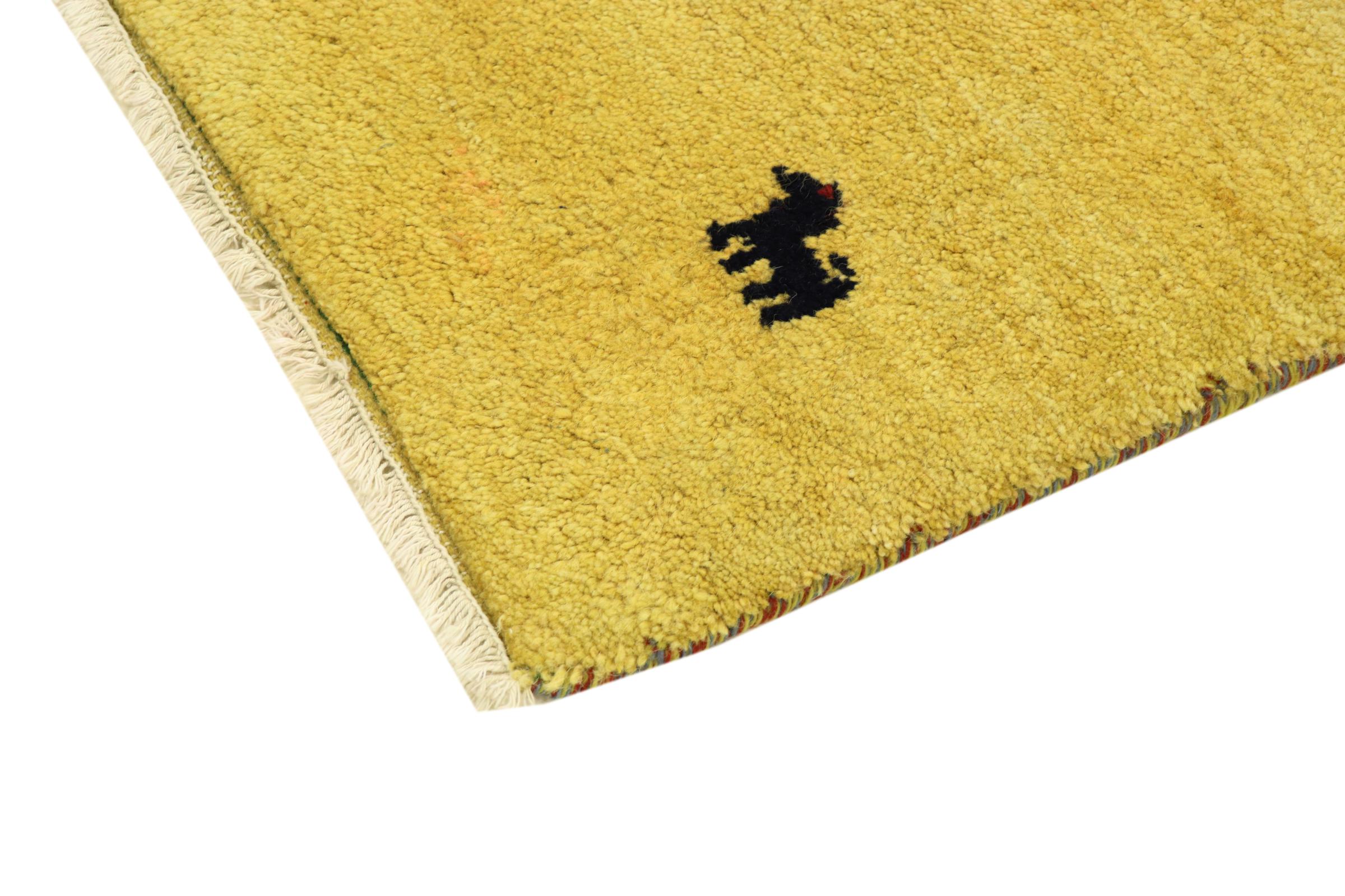 Esta hermosa alfombra de Gabbeh fue anudada a mano en la India. Las alfombras indias de Gabbeh están hechas de suave lana de oveja, son cómodas para los pies y tienen propiedades de aislamiento térmico. La mayoría de sus diseños son simples y modernos atemporales. Se inspiraron en los pueblos nómadas, que dejaban fluir en las alfombras motivos muy simples de su entorno. Las alfombras de Gabbeh de la India no se acercan mucho a la calidad de las de Gabbeh de Persia, pero tienen una muy buena relación precio-rendimiento. Por lo tanto, son perfectamente adecuadas como alfombras anudadas a mano para principiantes.