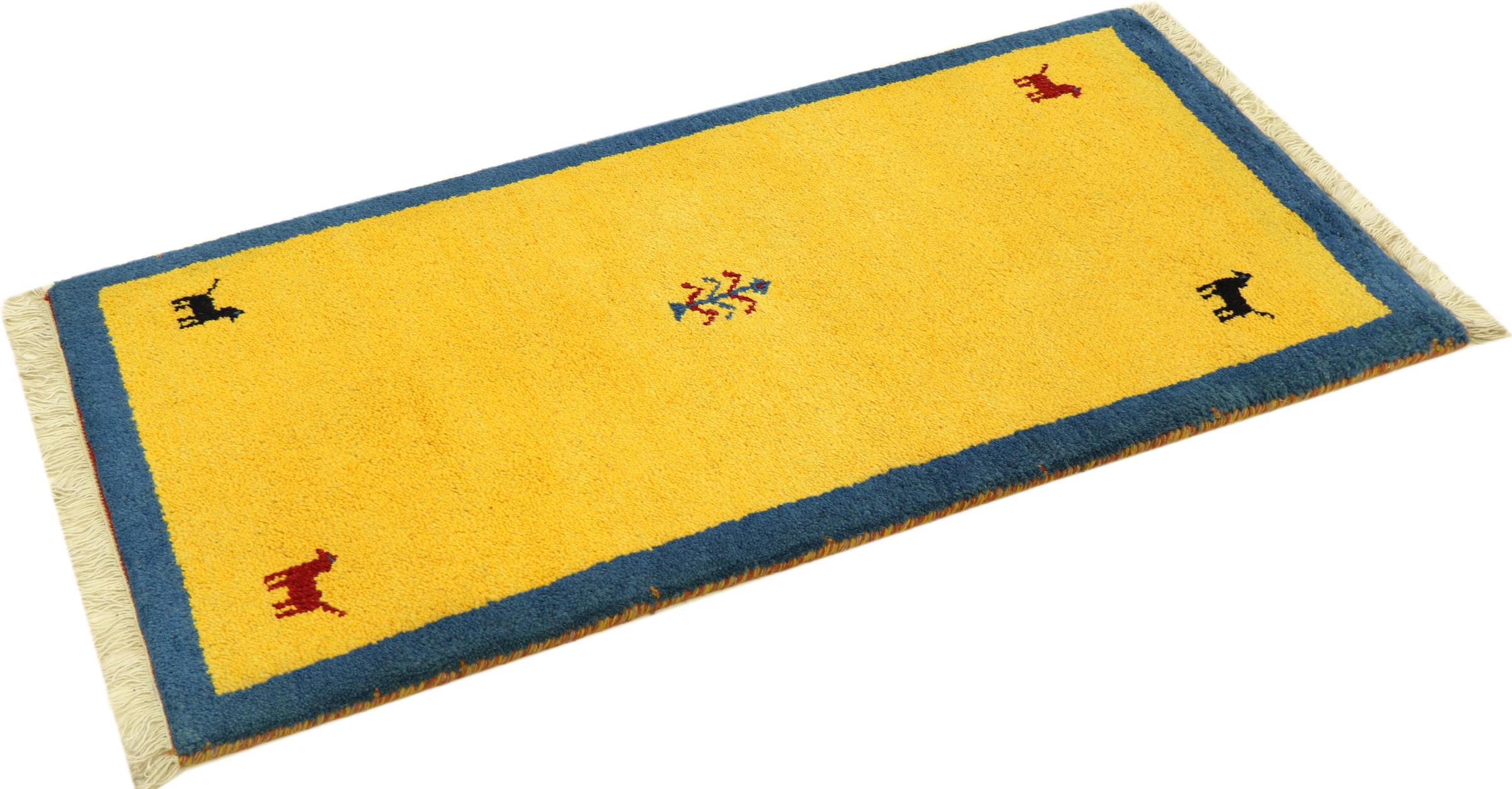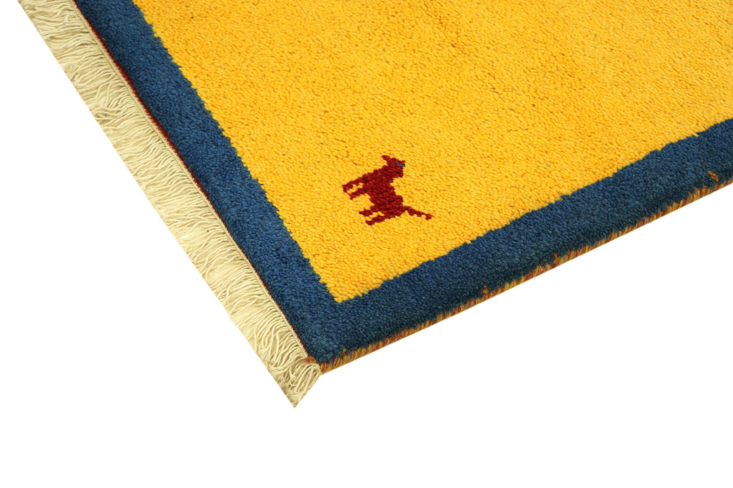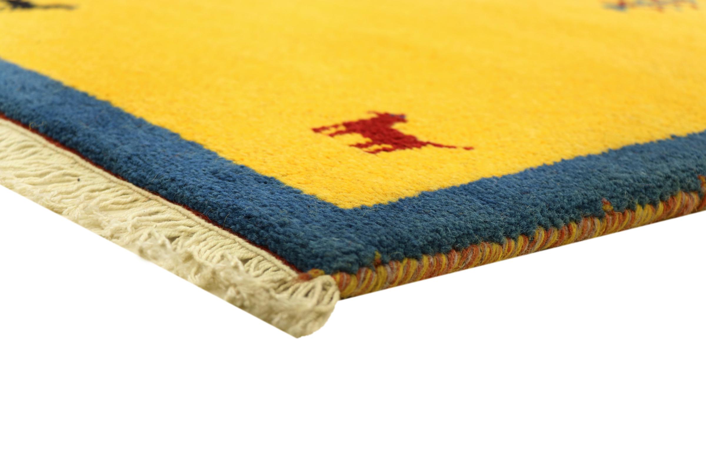Esta hermosa alfombra de Gabbeh fue anudada a mano en la India. Las alfombras indias de Gabbeh están hechas de suave lana de oveja, son cómodas para los pies y tienen propiedades de aislamiento térmico. La mayoría de sus diseños son simples y modernos atemporales. Se inspiraron en los pueblos nómadas, que dejaban fluir en las alfombras motivos muy simples de su entorno. Las alfombras de Gabbeh de la India no se acercan mucho a la calidad de las de Gabbeh de Persia, pero tienen una muy buena relación precio-rendimiento. Por lo tanto, son perfectamente adecuadas como alfombras anudadas a mano para principiantes.