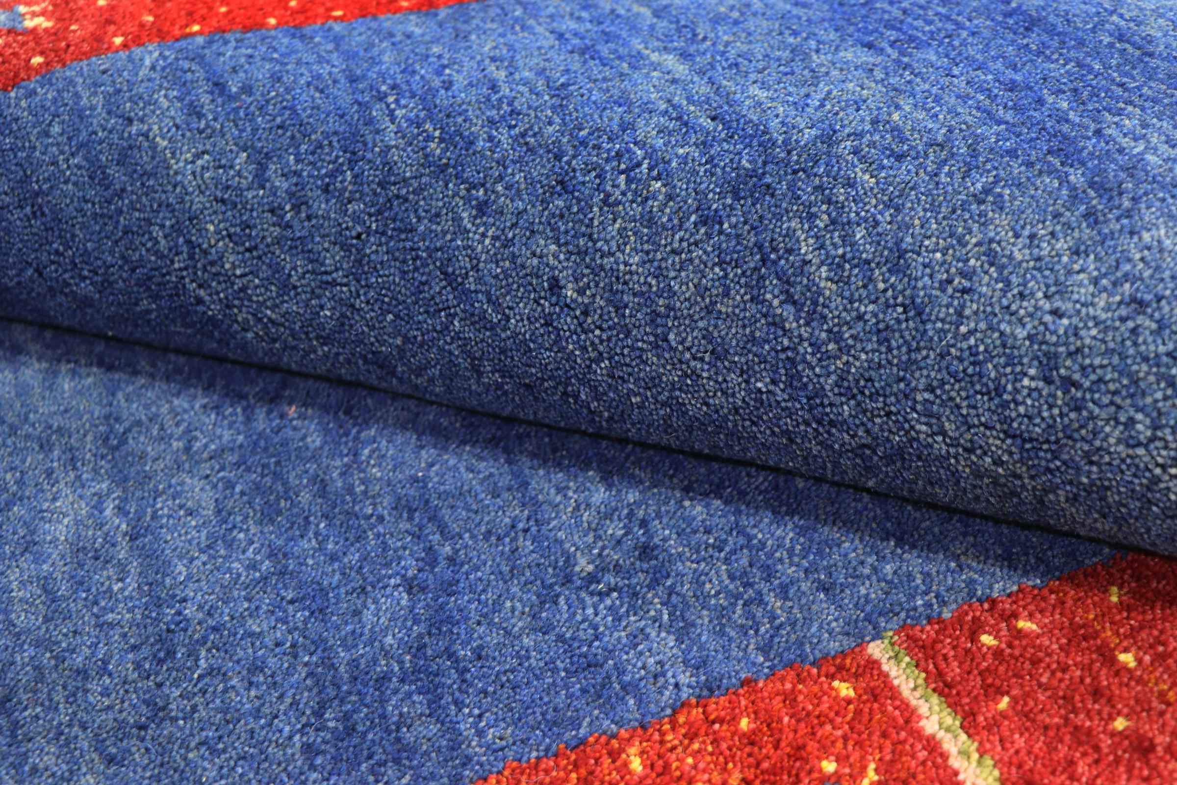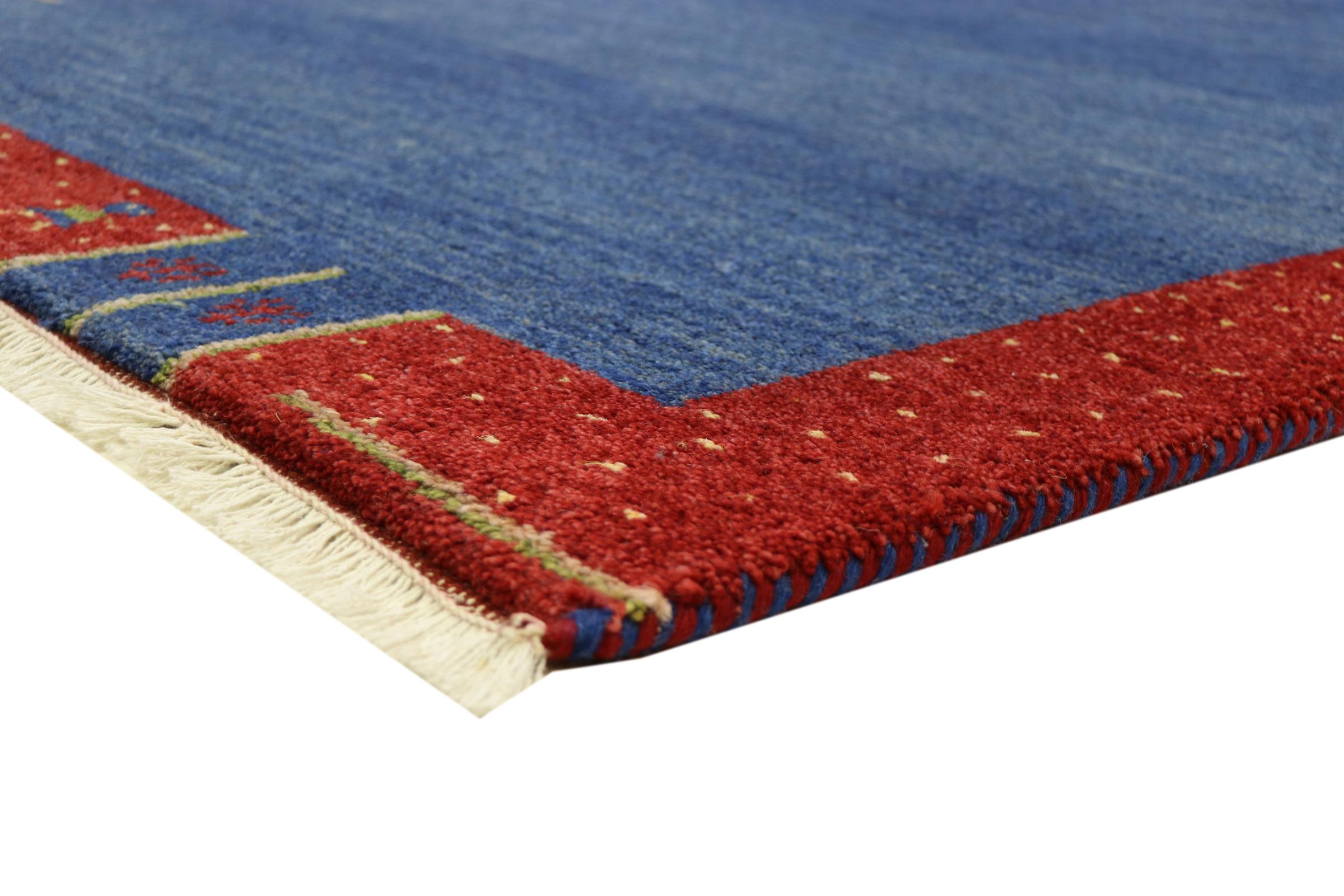 Esta hermosa alfombra de Gabbeh fue anudada a mano en la India. Las alfombras indias de Gabbeh están hechas de suave lana de oveja, son cómodas para los pies y tienen propiedades de aislamiento térmico. La mayoría de sus diseños son simples y modernos atemporales. Se inspiraron en los pueblos nómadas, que dejaban fluir en las alfombras motivos muy simples de su entorno. Las alfombras de Gabbeh de la India no se acercan mucho a la calidad de las de Gabbeh de Persia, pero tienen una muy buena relación precio-rendimiento. Por lo tanto, son perfectamente adecuadas como alfombras anudadas a mano para principiantes.