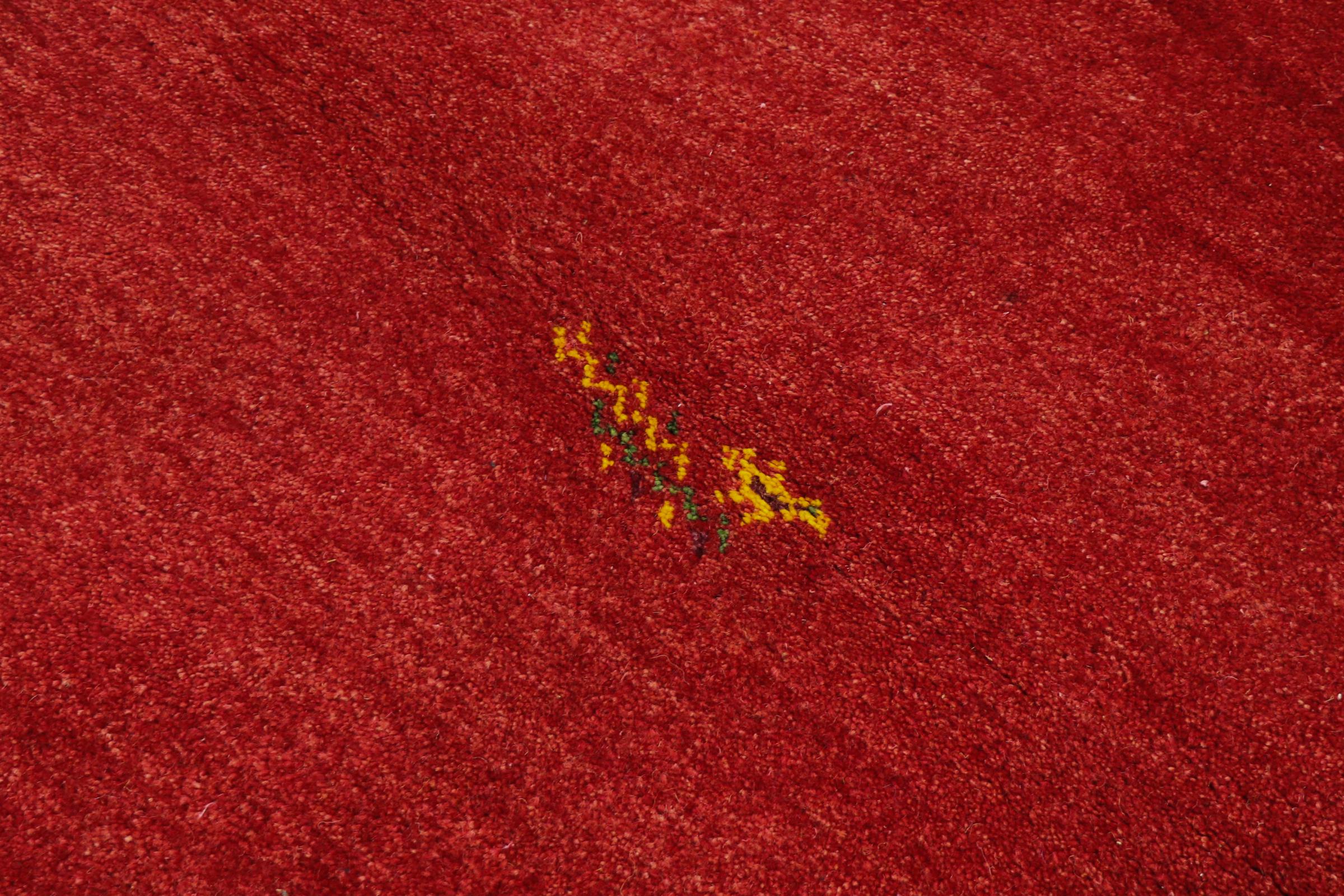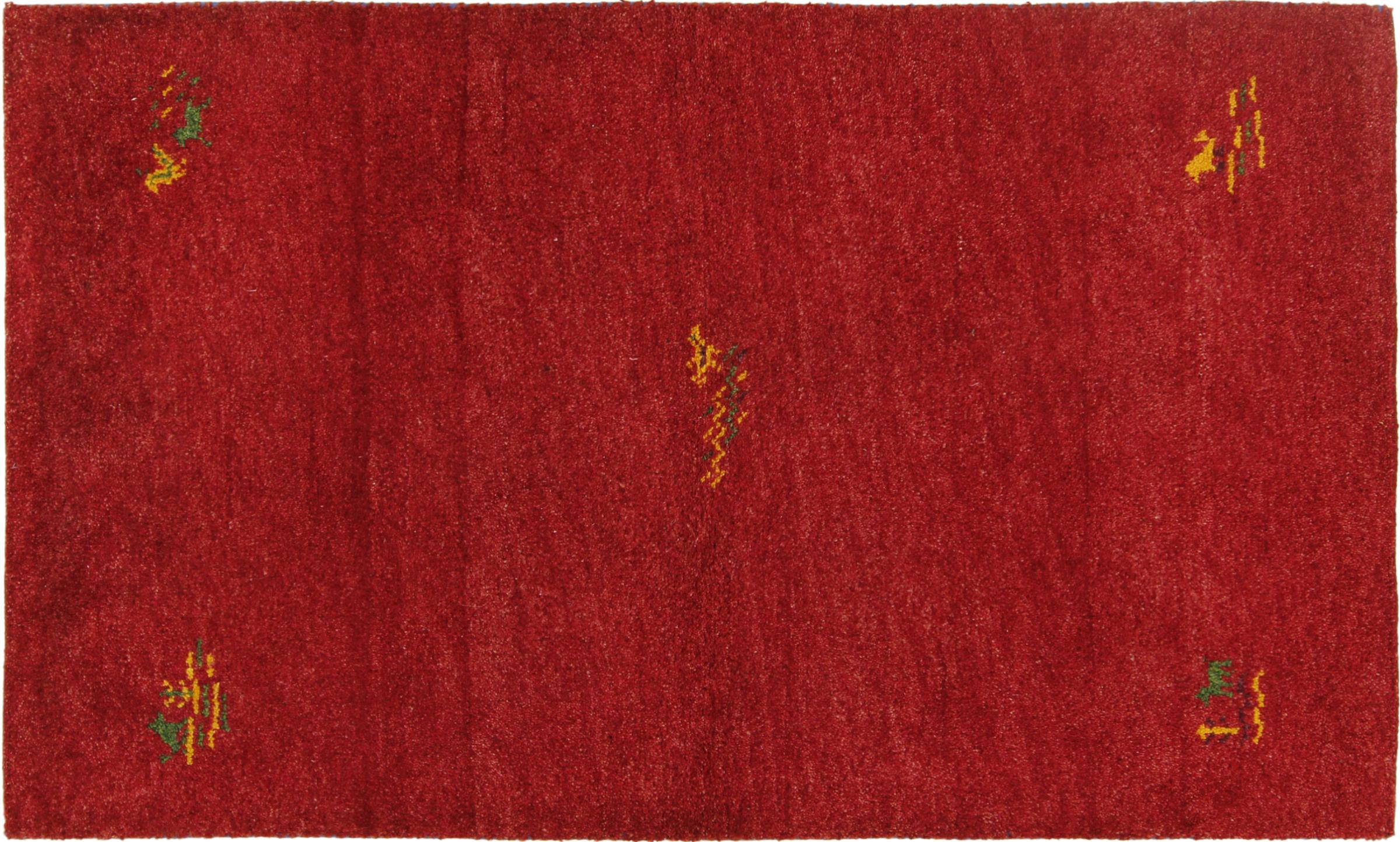 Esta hermosa alfombra de Gabbeh fue anudada a mano en la India. Las alfombras indias de Gabbeh están hechas de suave lana de oveja, son cómodas para los pies y tienen propiedades de aislamiento térmico. La mayoría de sus diseños son simples y modernos atemporales. Se inspiraron en los pueblos nómadas, que dejaban fluir en las alfombras motivos muy simples de su entorno. Las alfombras de Gabbeh de la India no se acercan mucho a la calidad de las de Gabbeh de Persia, pero tienen una muy buena relación precio-rendimiento. Por lo tanto, son perfectamente adecuadas como alfombras anudadas a mano para principiantes.