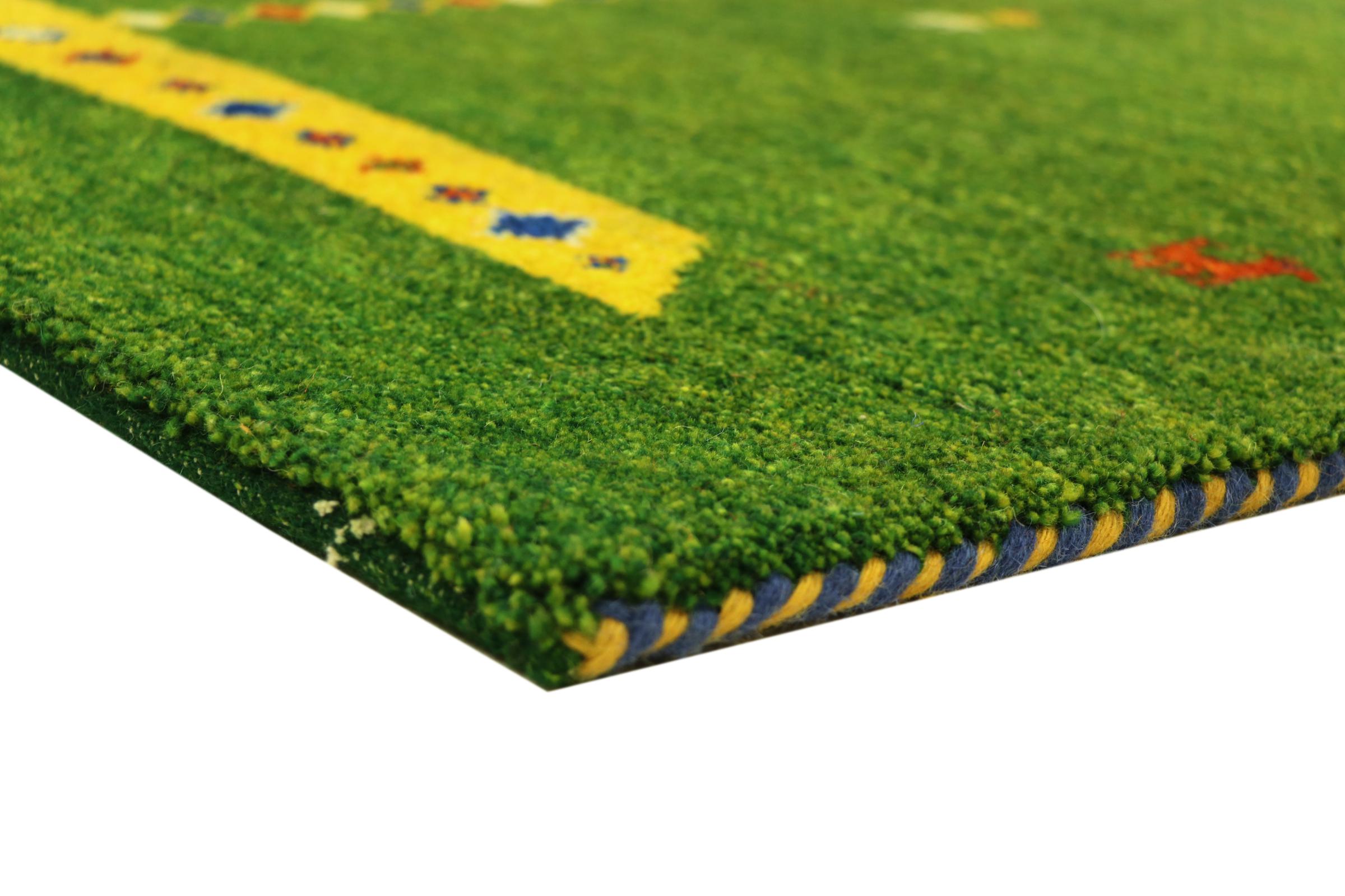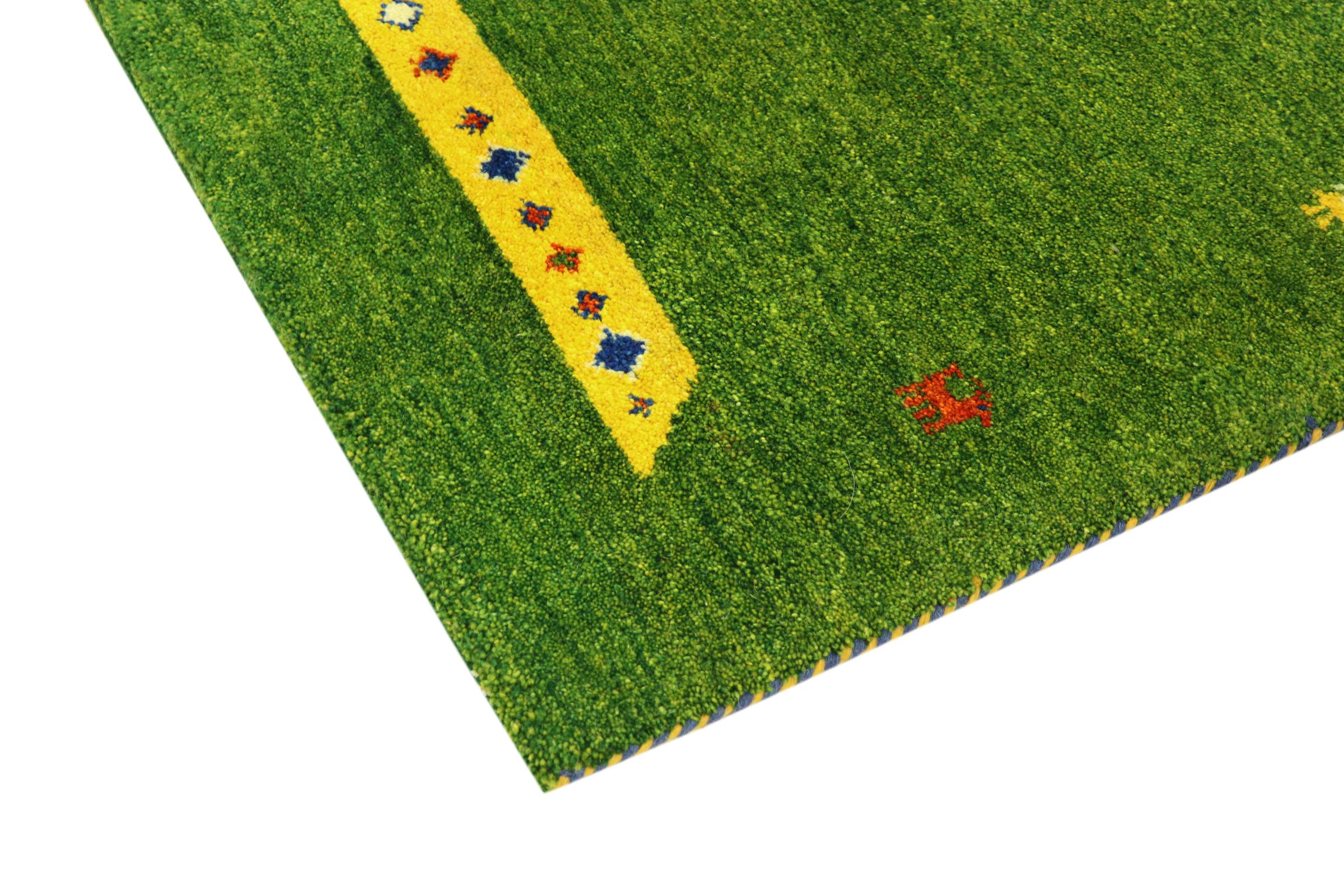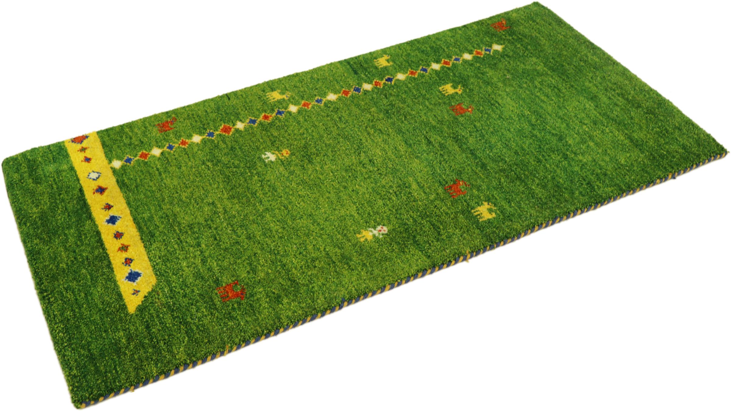 Esta hermosa alfombra de Gabbeh fue anudada a mano en la India. Las alfombras indias de Gabbeh están hechas de suave lana de oveja, son cómodas para los pies y tienen propiedades de aislamiento térmico. La mayoría de sus diseños son simples y modernos atemporales. Se inspiraron en los pueblos nómadas, que dejaban fluir en las alfombras motivos muy simples de su entorno. Las alfombras de Gabbeh de la India no se acercan mucho a la calidad de las de Gabbeh de Persia, pero tienen una muy buena relación precio-rendimiento. Por lo tanto, son perfectamente adecuadas como alfombras anudadas a mano para principiantes.