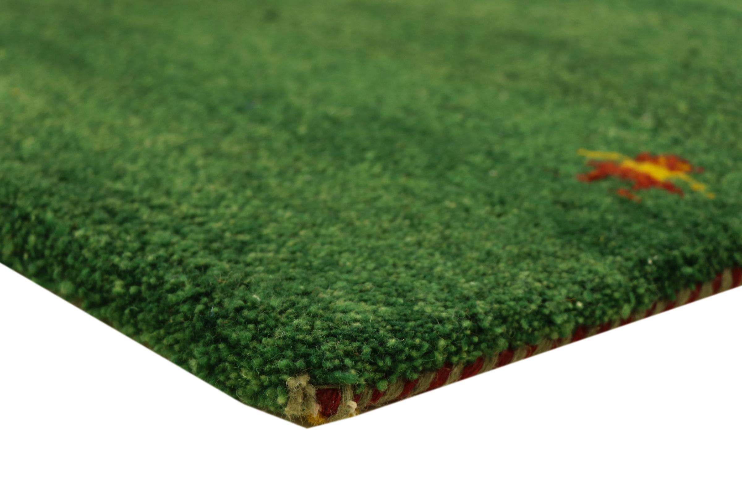 Esta hermosa alfombra de Gabbeh fue anudada a mano en la India. Las alfombras indias de Gabbeh están hechas de suave lana de oveja, son cómodas para los pies y tienen propiedades de aislamiento térmico. La mayoría de sus diseños son simples y modernos atemporales. Se inspiraron en los pueblos nómadas, que dejaban fluir en las alfombras motivos muy simples de su entorno. Las alfombras de Gabbeh de la India no se acercan mucho a la calidad de las de Gabbeh de Persia, pero tienen una muy buena relación precio-rendimiento. Por lo tanto, son perfectamente adecuadas como alfombras anudadas a mano para principiantes.