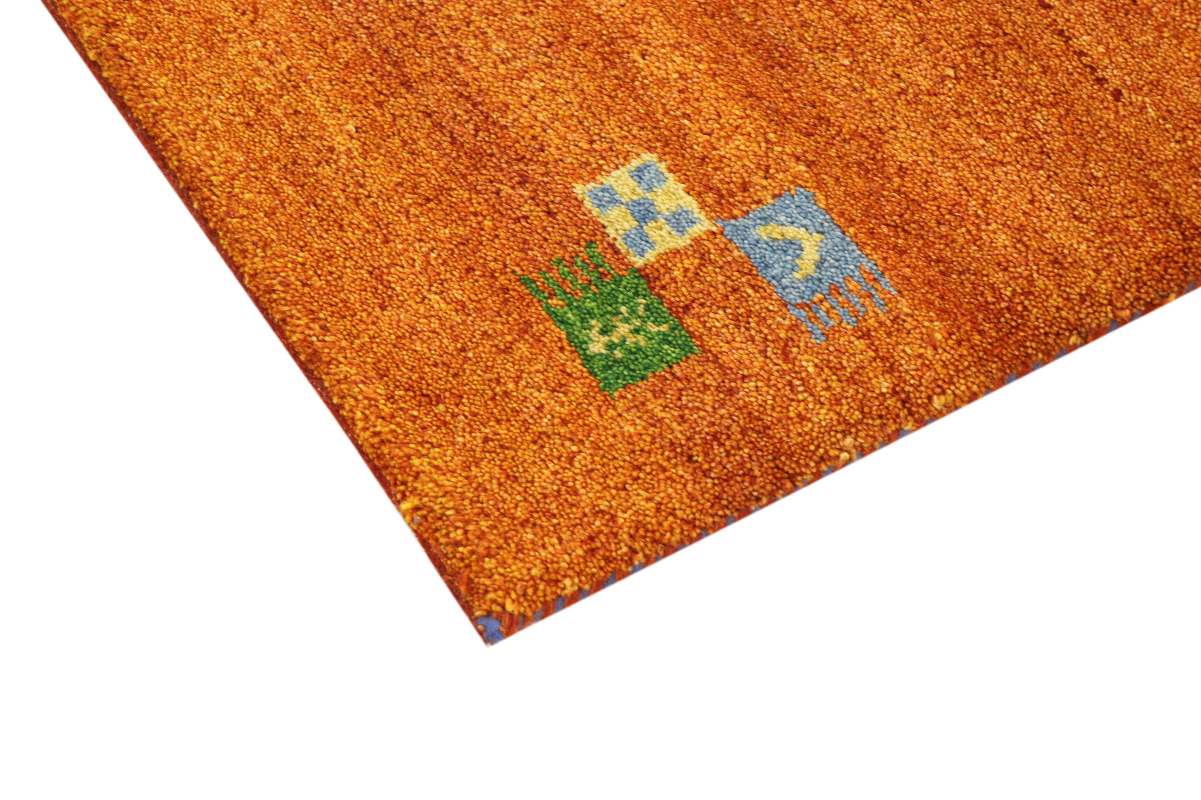 Esta hermosa alfombra de Gabbeh fue anudada a mano en la India. Las alfombras indias de Gabbeh están hechas de suave lana de oveja, son cómodas para los pies y tienen propiedades de aislamiento térmico. La mayoría de sus diseños son simples y modernos atemporales. Se inspiraron en los pueblos nómadas, que dejaban fluir en las alfombras motivos muy simples de su entorno. Las alfombras de Gabbeh de la India no se acercan mucho a la calidad de las de Gabbeh de Persia, pero tienen una muy buena relación precio-rendimiento. Por lo tanto, son perfectamente adecuadas como alfombras anudadas a mano para principiantes.