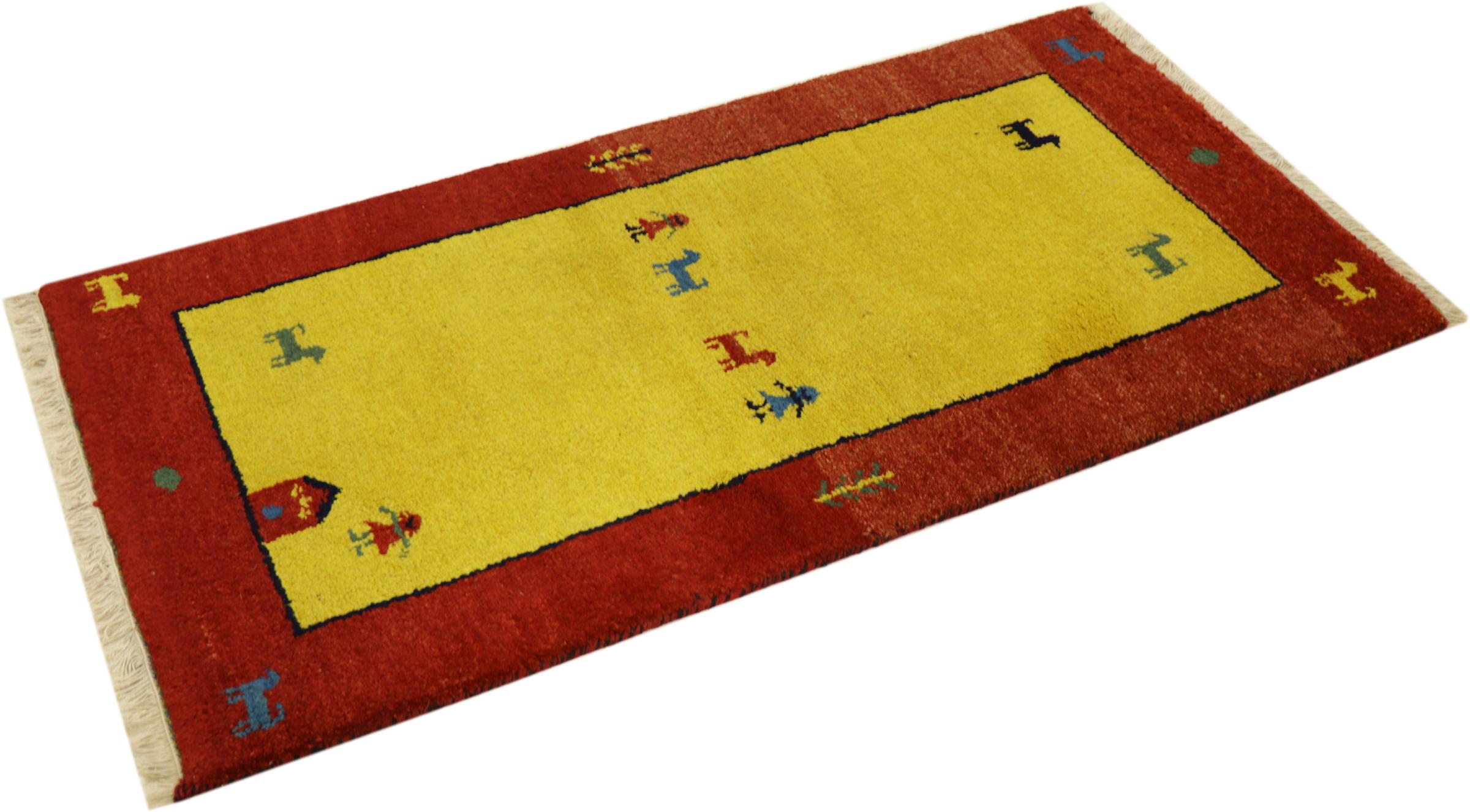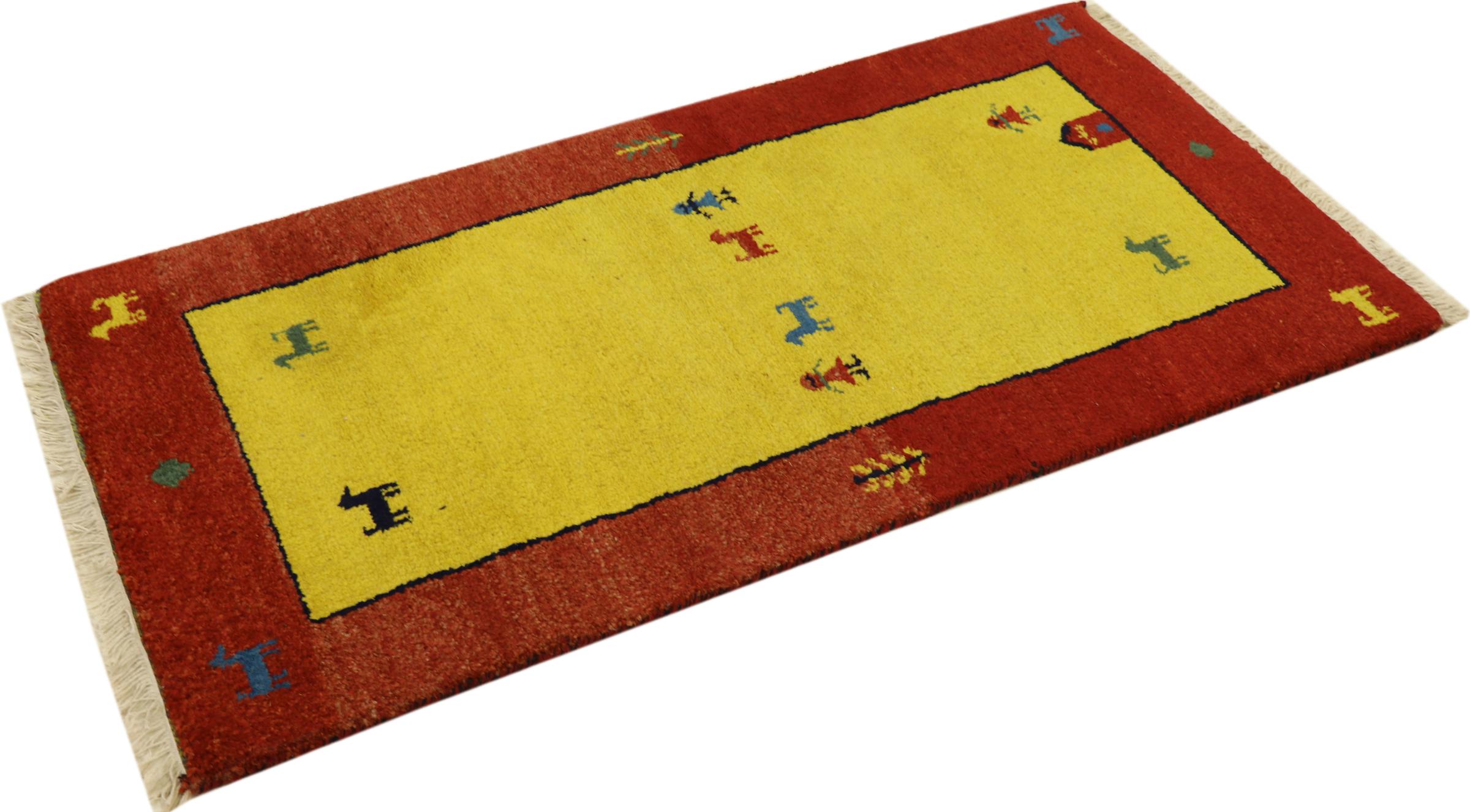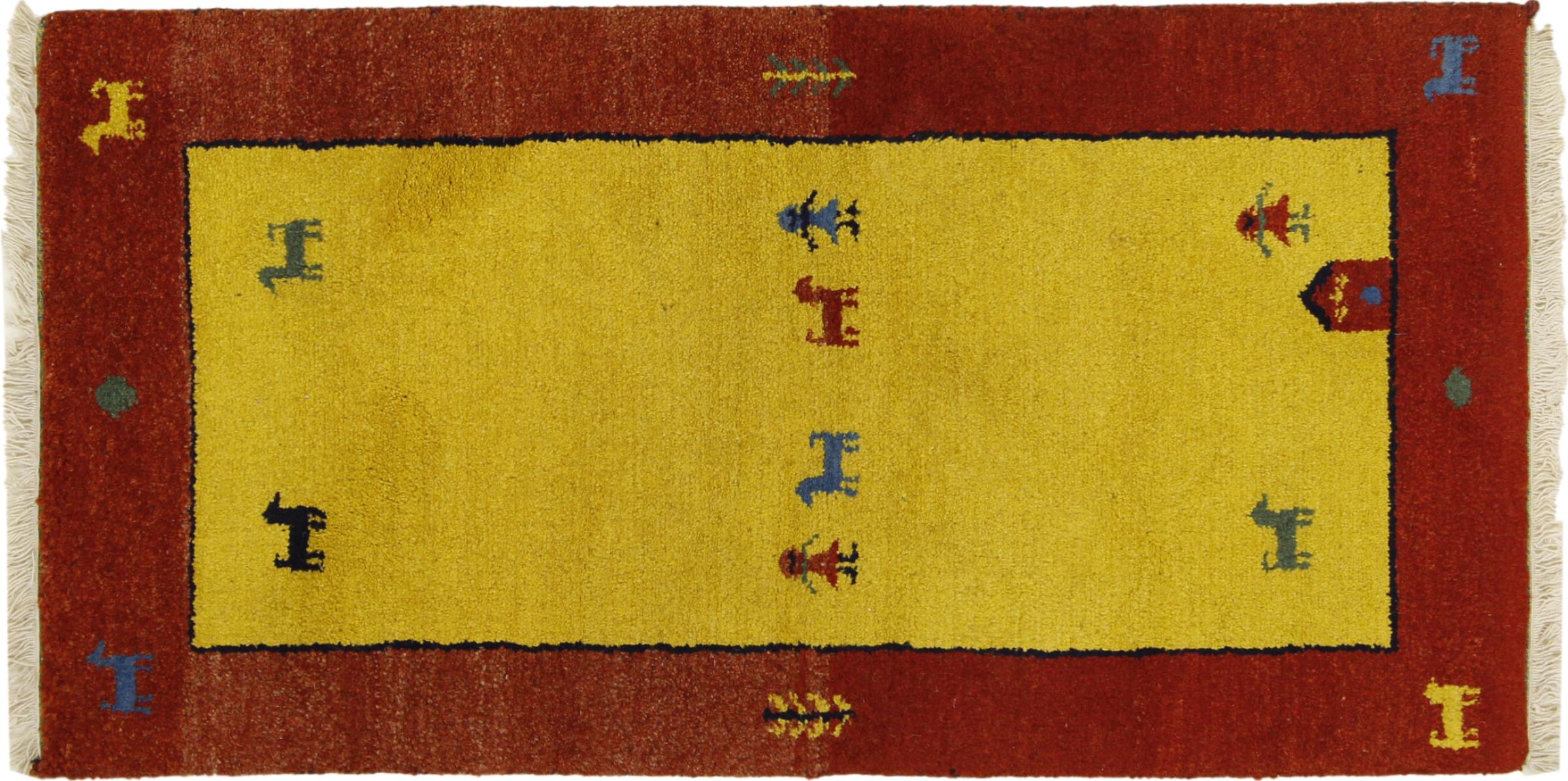 Esta hermosa alfombra de Gabbeh fue anudada a mano en la India. Las alfombras indias de Gabbeh están hechas de suave lana de oveja, son cómodas para los pies y tienen propiedades de aislamiento térmico. La mayoría de sus diseños son simples y modernos atemporales. Se inspiraron en los pueblos nómadas, que dejaban fluir en las alfombras motivos muy simples de su entorno. Las alfombras de Gabbeh de la India no se acercan mucho a la calidad de las de Gabbeh de Persia, pero tienen una muy buena relación precio-rendimiento. Por lo tanto, son perfectamente adecuadas como alfombras anudadas a mano para principiantes.