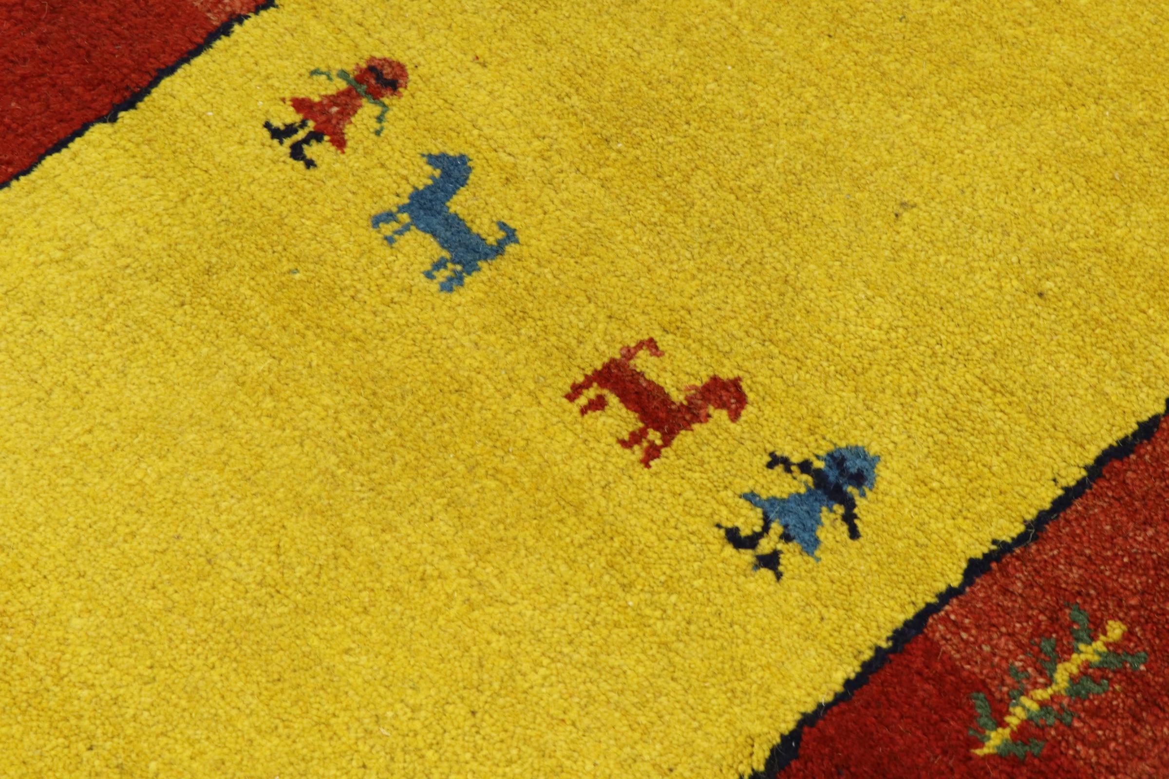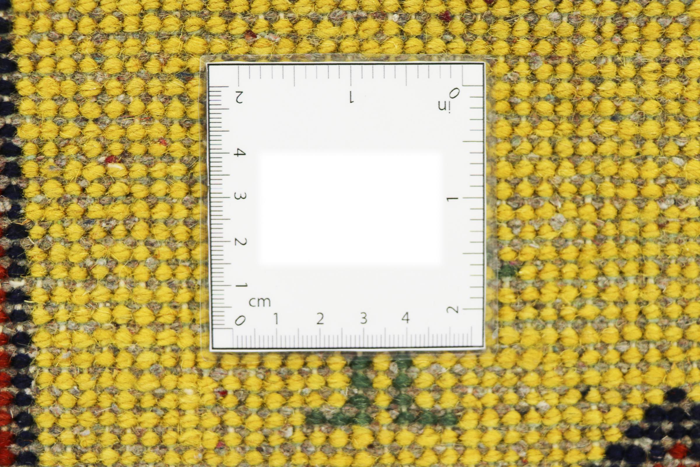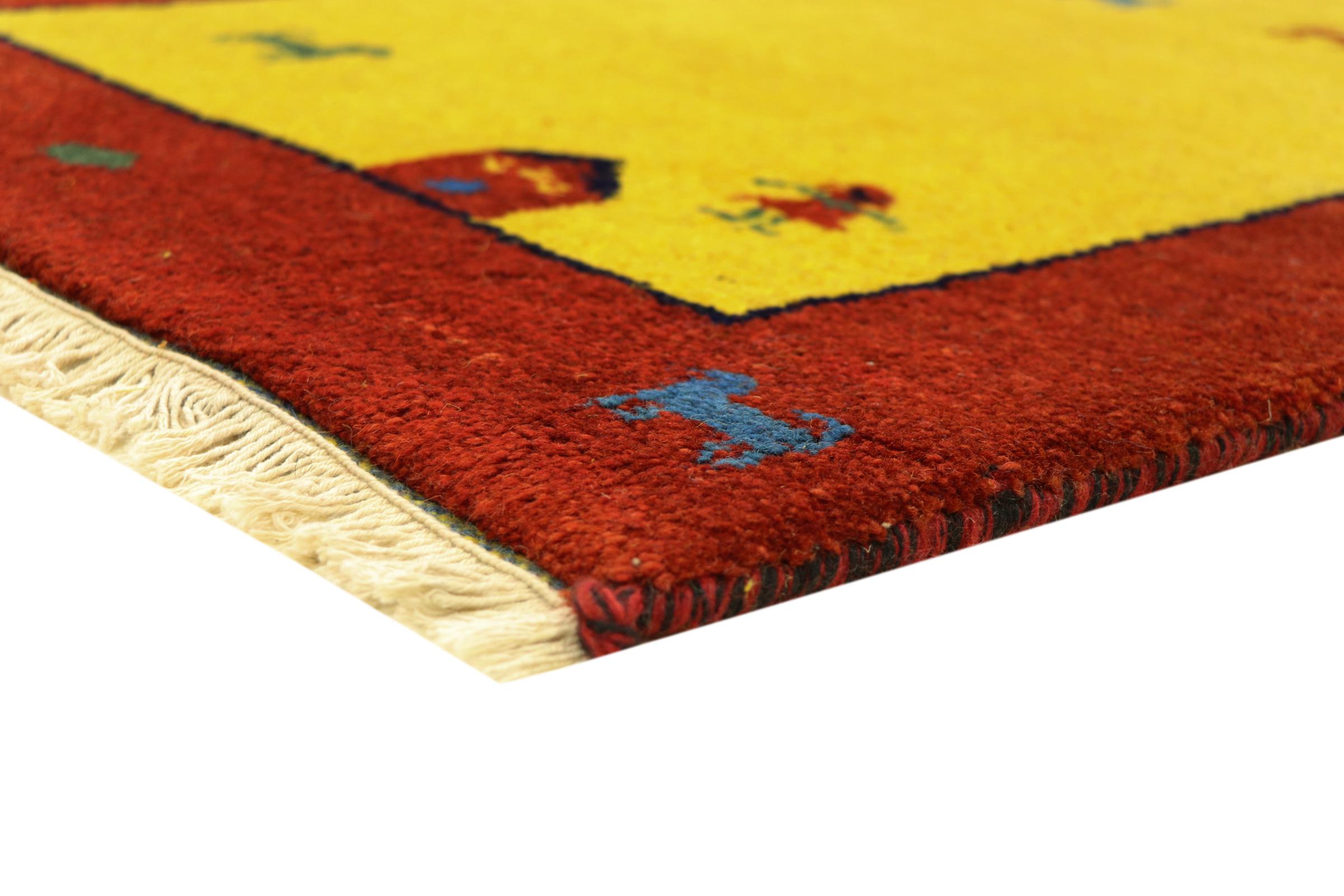 Esta hermosa alfombra de Gabbeh fue anudada a mano en la India. Las alfombras indias de Gabbeh están hechas de suave lana de oveja, son cómodas para los pies y tienen propiedades de aislamiento térmico. La mayoría de sus diseños son simples y modernos atemporales. Se inspiraron en los pueblos nómadas, que dejaban fluir en las alfombras motivos muy simples de su entorno. Las alfombras de Gabbeh de la India no se acercan mucho a la calidad de las de Gabbeh de Persia, pero tienen una muy buena relación precio-rendimiento. Por lo tanto, son perfectamente adecuadas como alfombras anudadas a mano para principiantes.