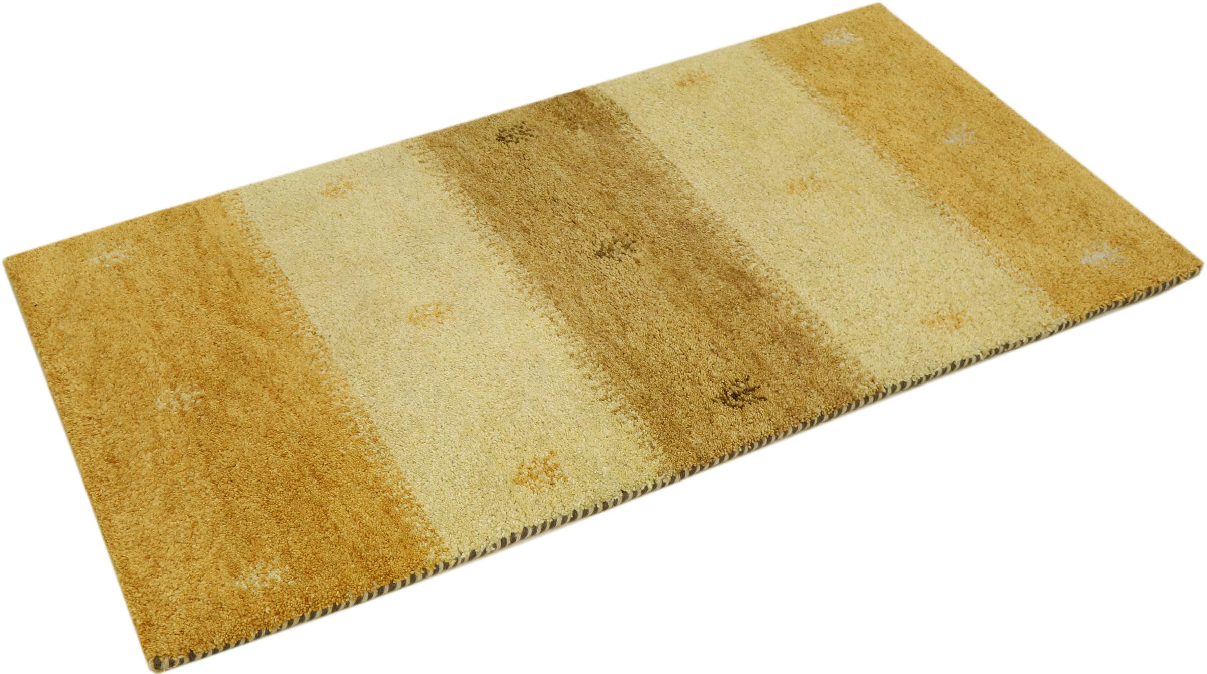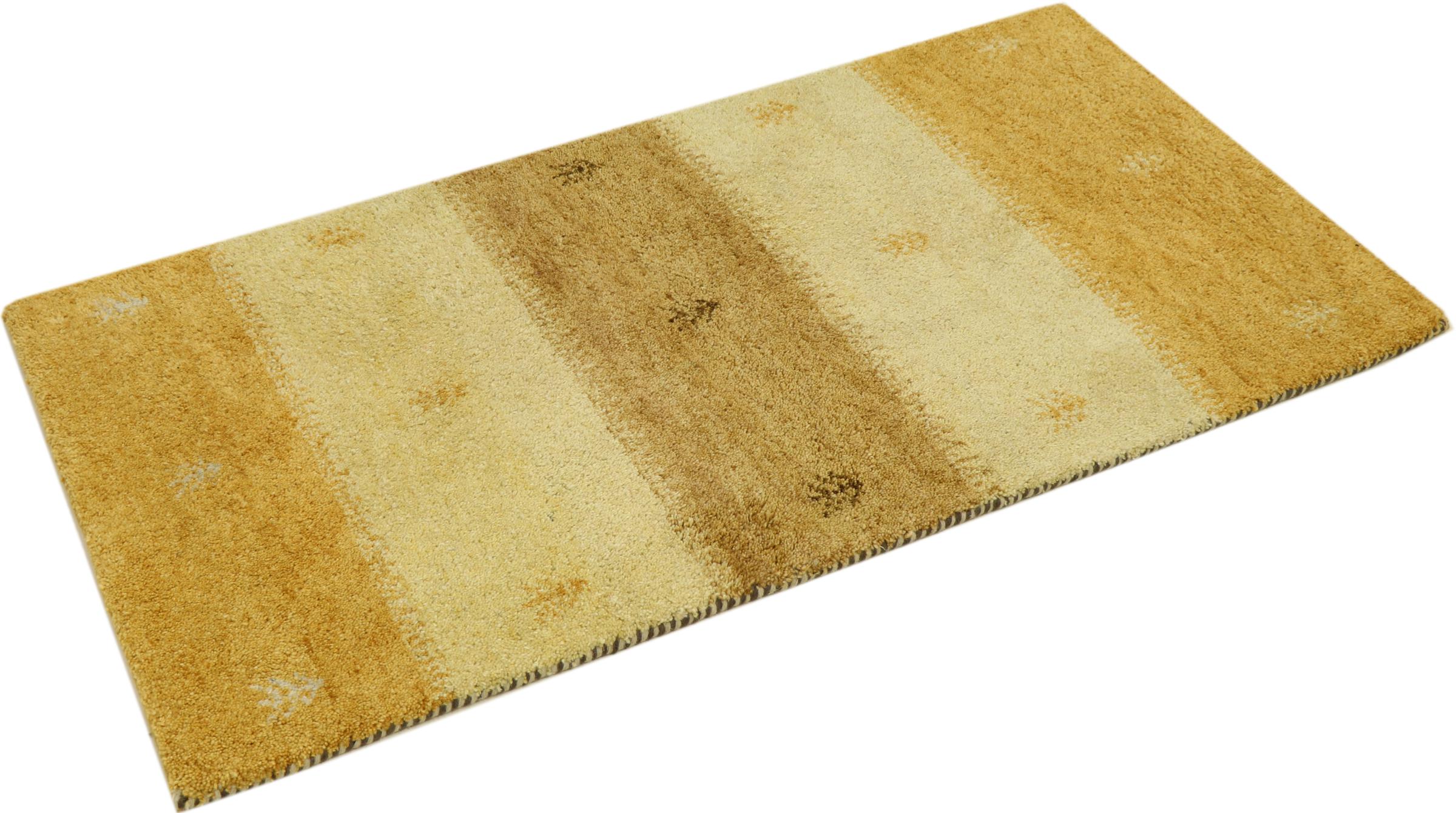 Esta hermosa alfombra de Gabbeh fue anudada a mano en la India. Las alfombras indias de Gabbeh están hechas de suave lana de oveja, son cómodas para los pies y tienen propiedades de aislamiento térmico. La mayoría de sus diseños son simples y modernos atemporales. Se inspiraron en los pueblos nómadas, que dejaban fluir en las alfombras motivos muy simples de su entorno. Las alfombras de Gabbeh de la India no se acercan mucho a la calidad de las de Gabbeh de Persia, pero tienen una muy buena relación precio-rendimiento. Por lo tanto, son perfectamente adecuadas como alfombras anudadas a mano para principiantes.