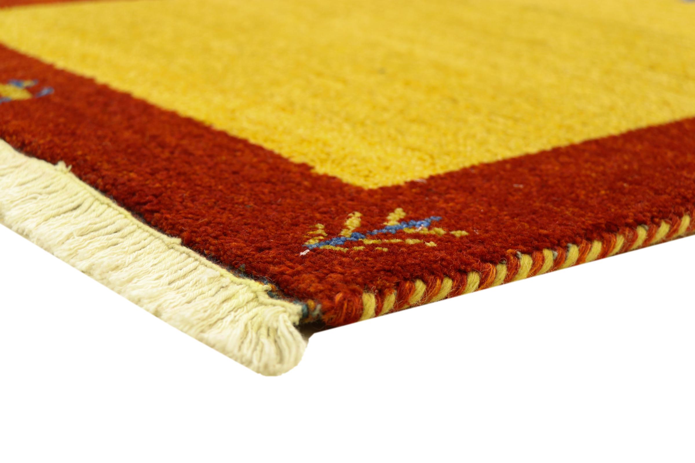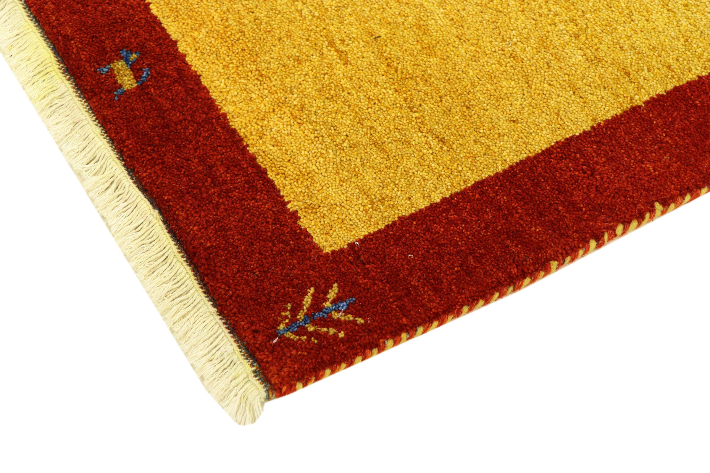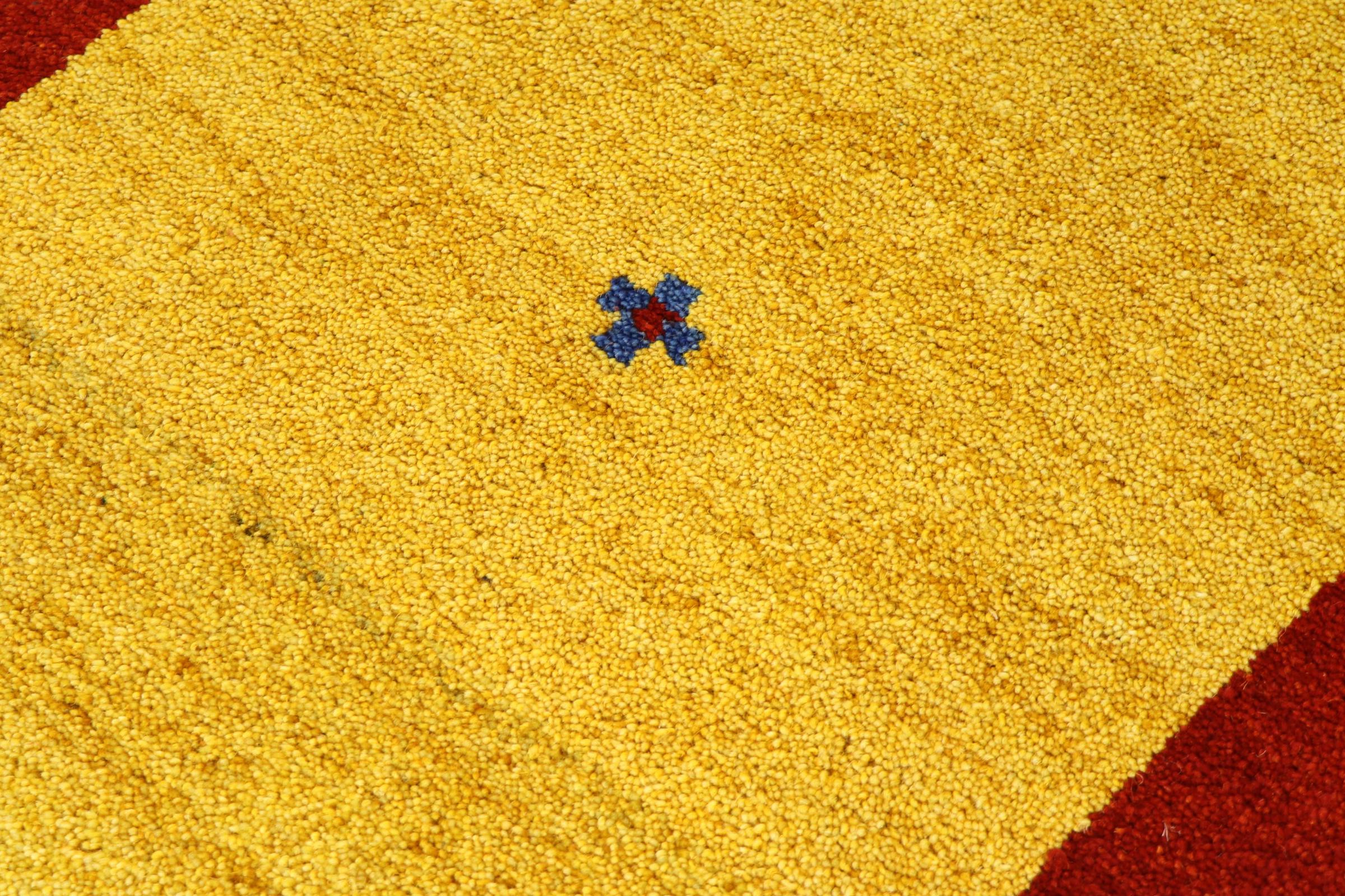 Esta hermosa alfombra de Gabbeh fue anudada a mano en la India. Las alfombras indias de Gabbeh están hechas de suave lana de oveja, son cómodas para los pies y tienen propiedades de aislamiento térmico. La mayoría de sus diseños son simples y modernos atemporales. Se inspiraron en los pueblos nómadas, que dejaban fluir en las alfombras motivos muy simples de su entorno. Las alfombras de Gabbeh de la India no se acercan mucho a la calidad de las de Gabbeh de Persia, pero tienen una muy buena relación precio-rendimiento. Por lo tanto, son perfectamente adecuadas como alfombras anudadas a mano para principiantes.