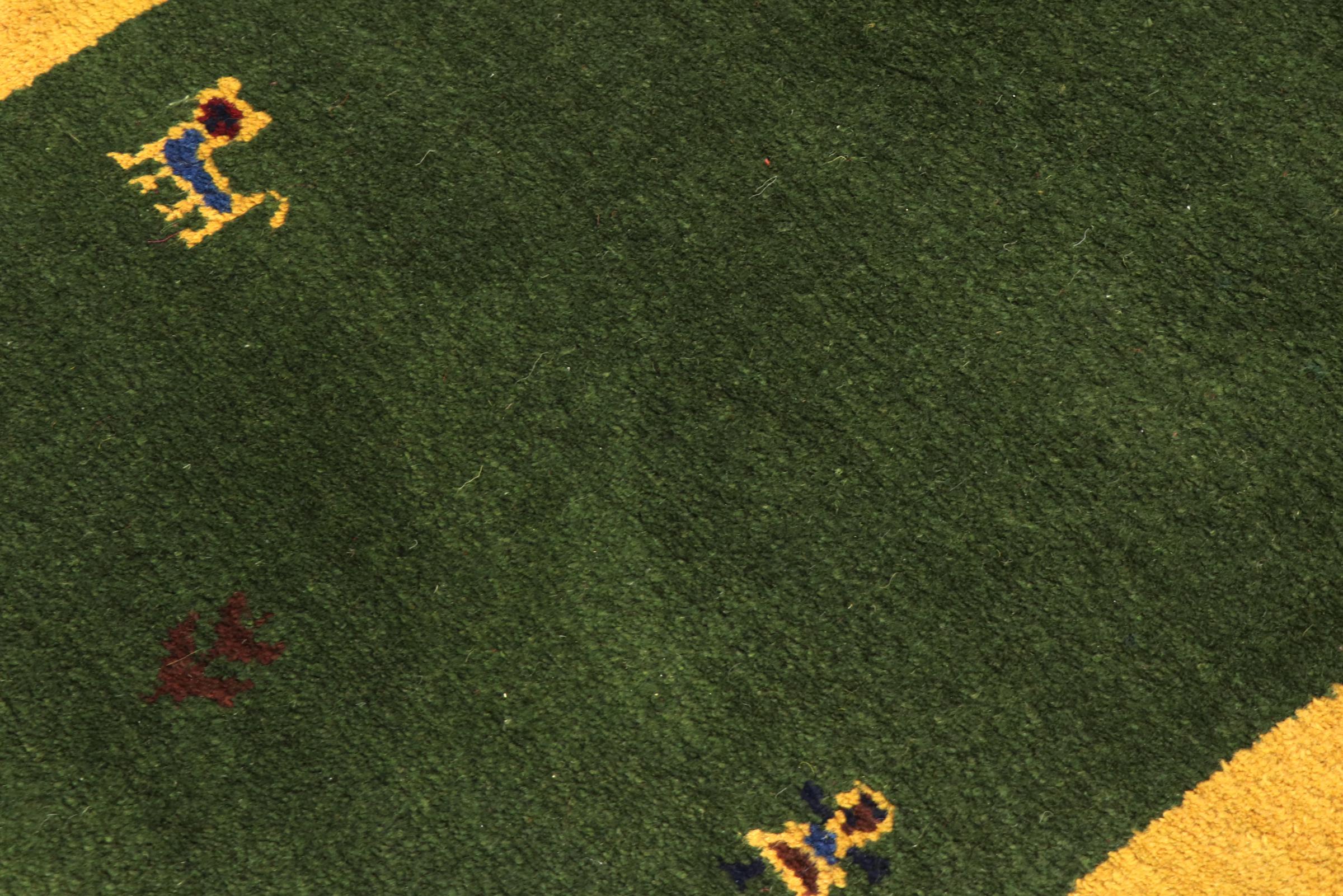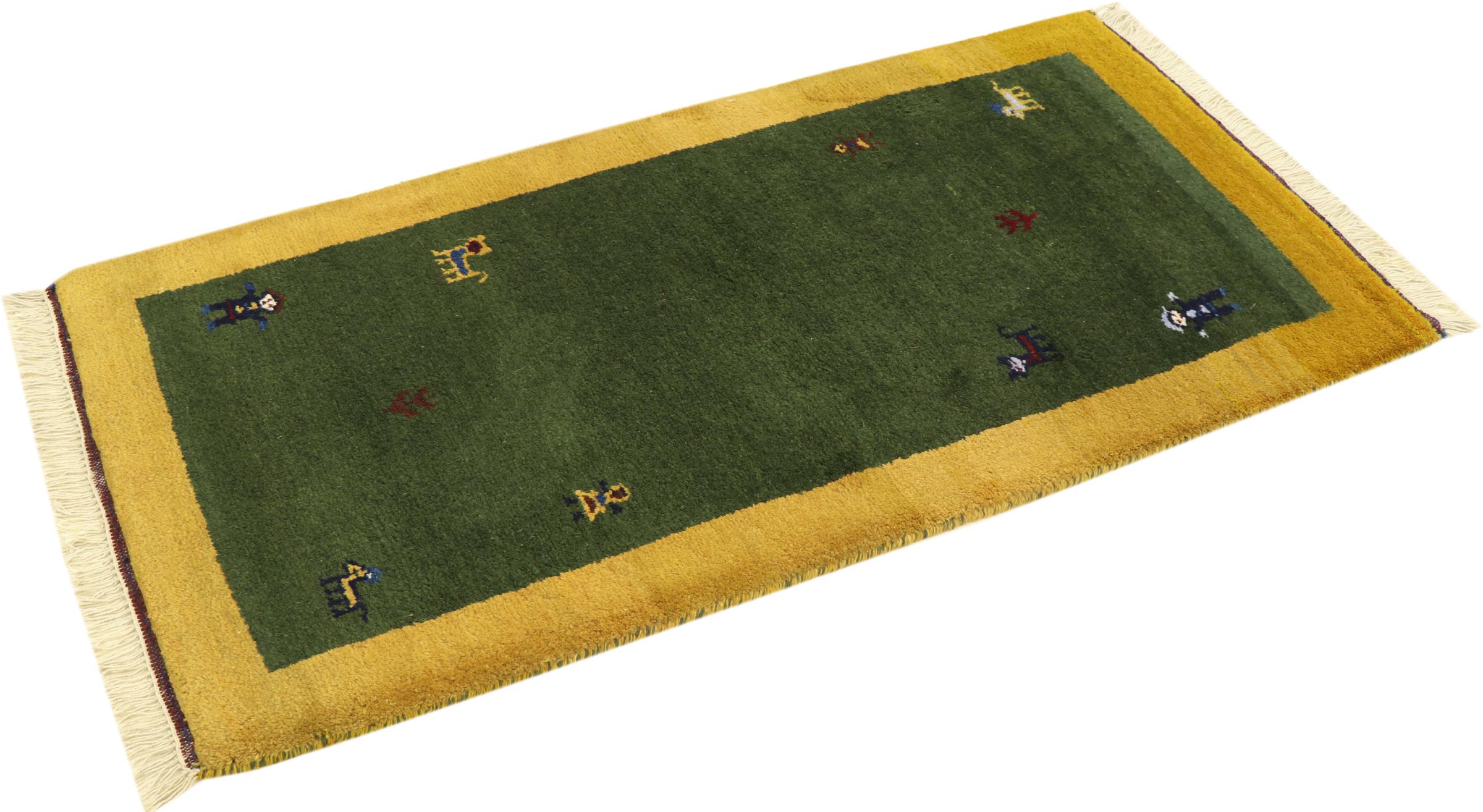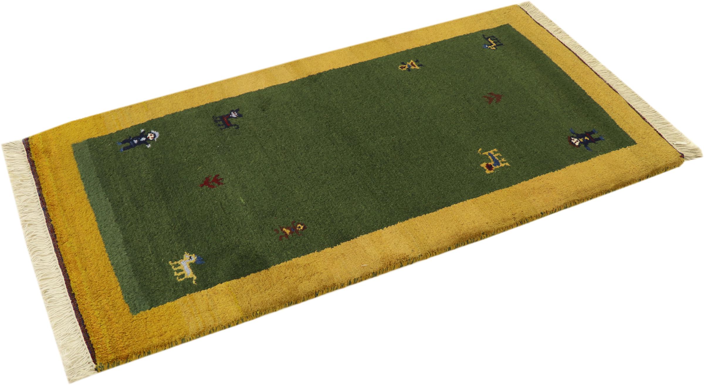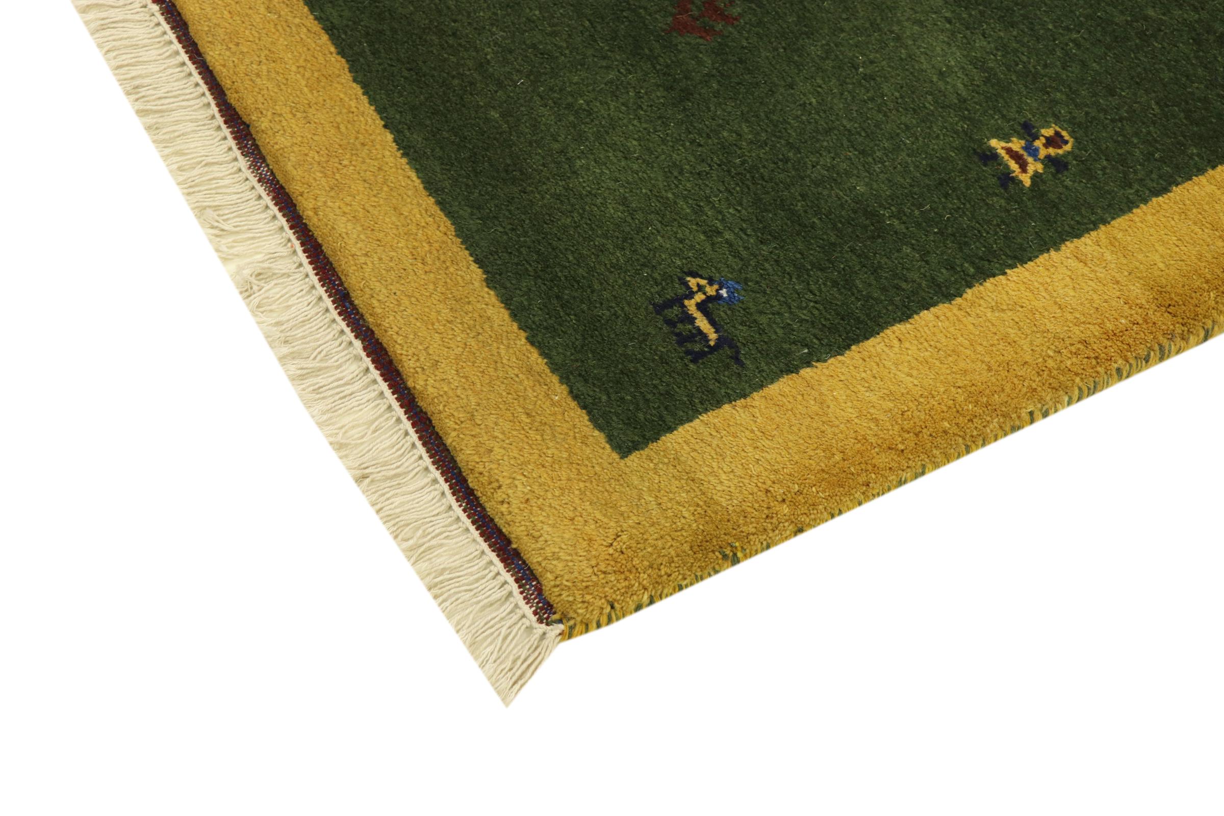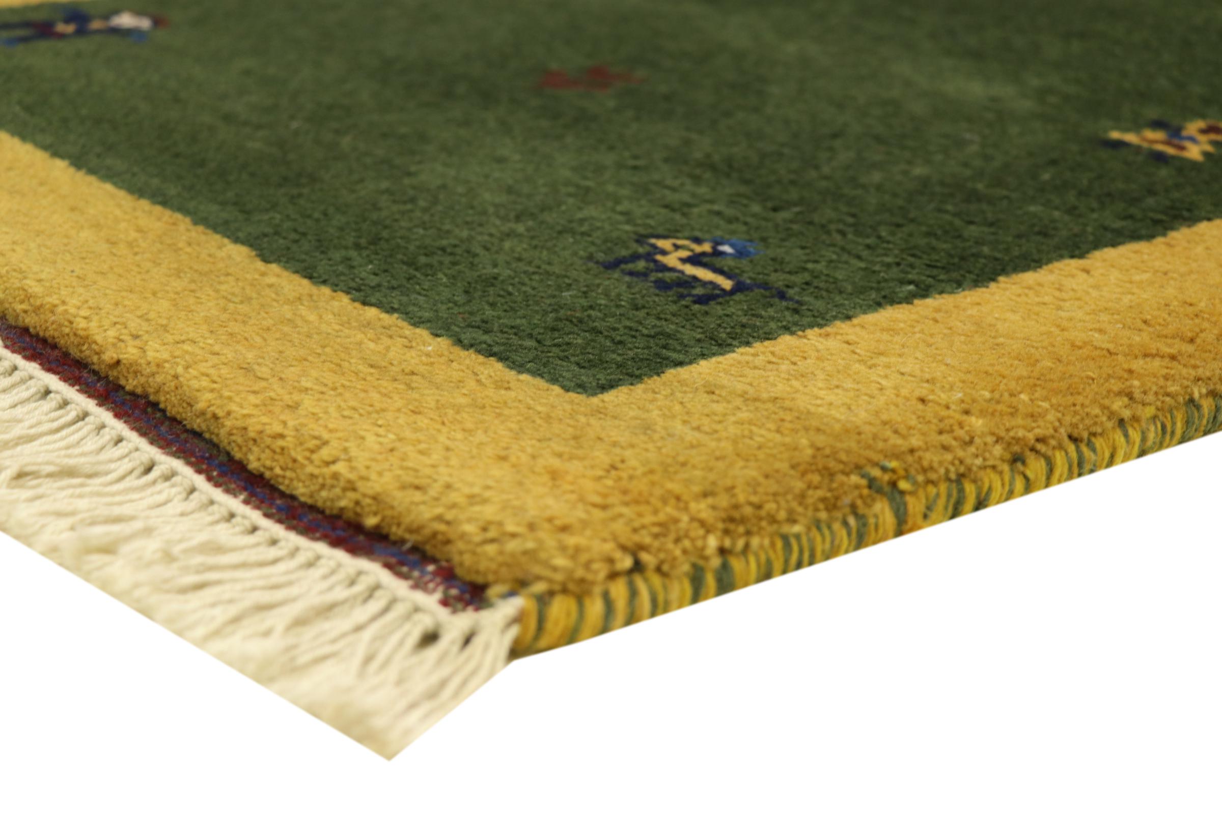 Esta hermosa alfombra de Gabbeh fue anudada a mano en la India. Las alfombras indias de Gabbeh están hechas de suave lana de oveja, son cómodas para los pies y tienen propiedades de aislamiento térmico. La mayoría de sus diseños son simples y modernos atemporales. Se inspiraron en los pueblos nómadas, que dejaban fluir en las alfombras motivos muy simples de su entorno. Las alfombras de Gabbeh de la India no se acercan mucho a la calidad de las de Gabbeh de Persia, pero tienen una muy buena relación precio-rendimiento. Por lo tanto, son perfectamente adecuadas como alfombras anudadas a mano para principiantes.