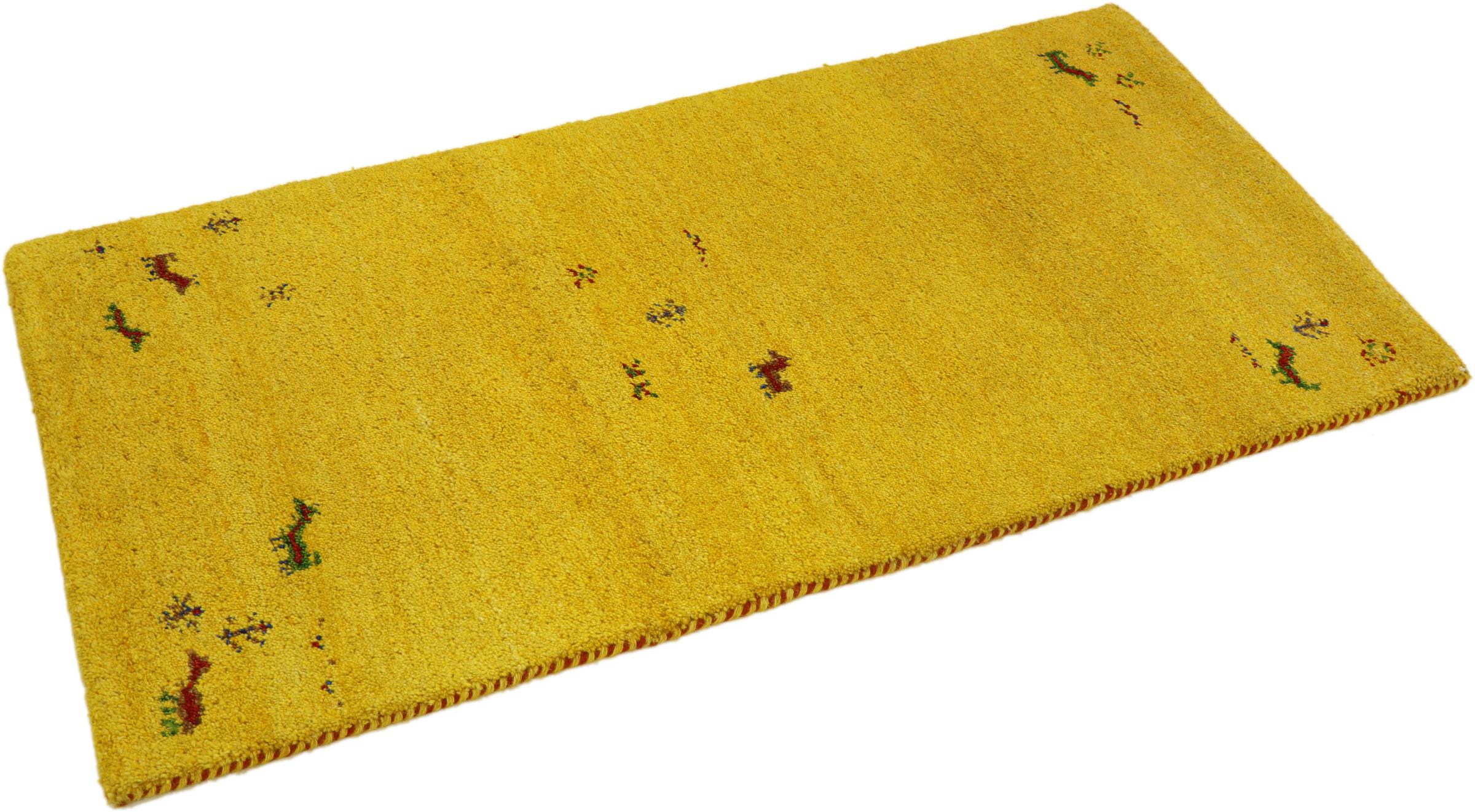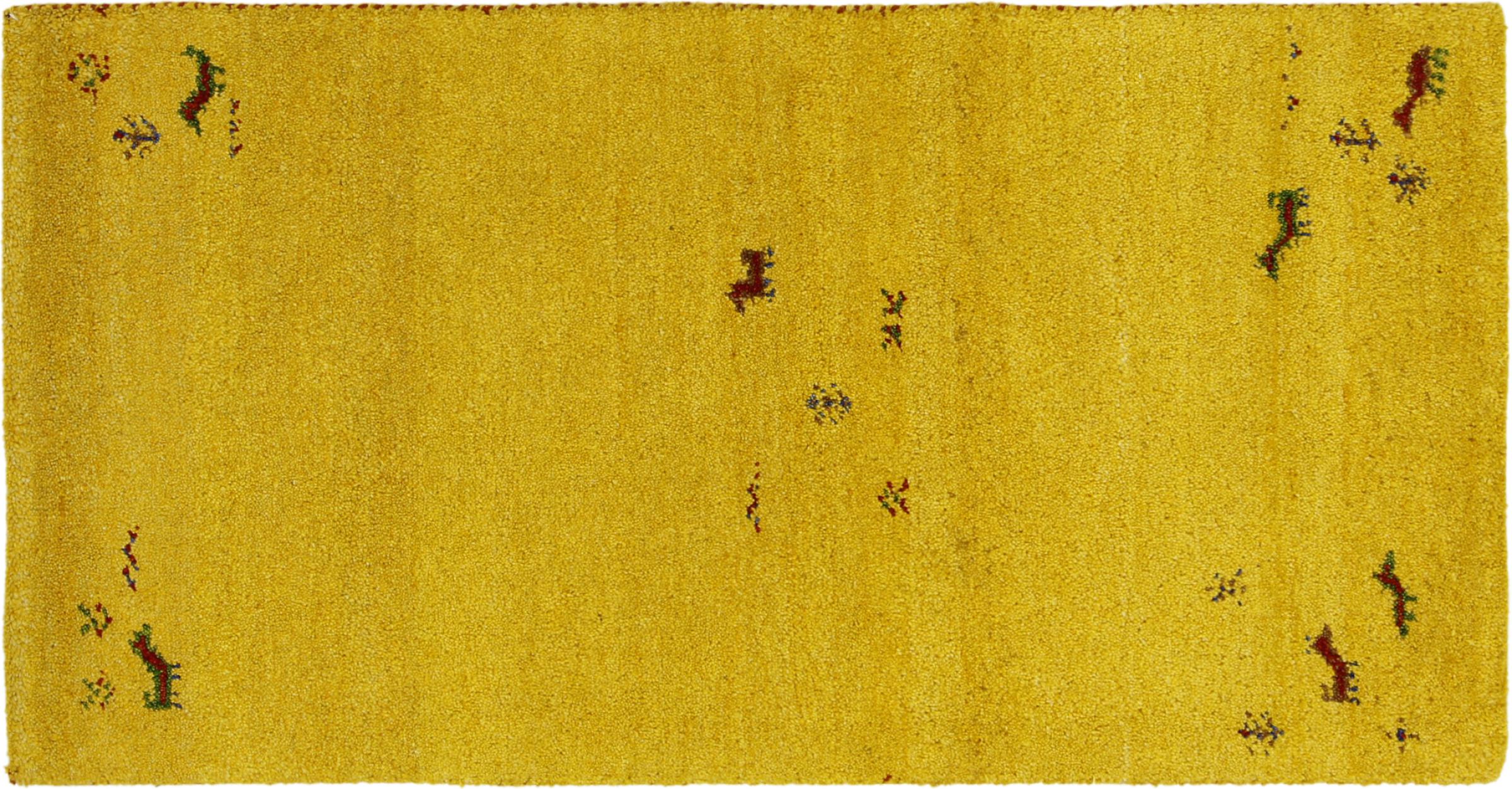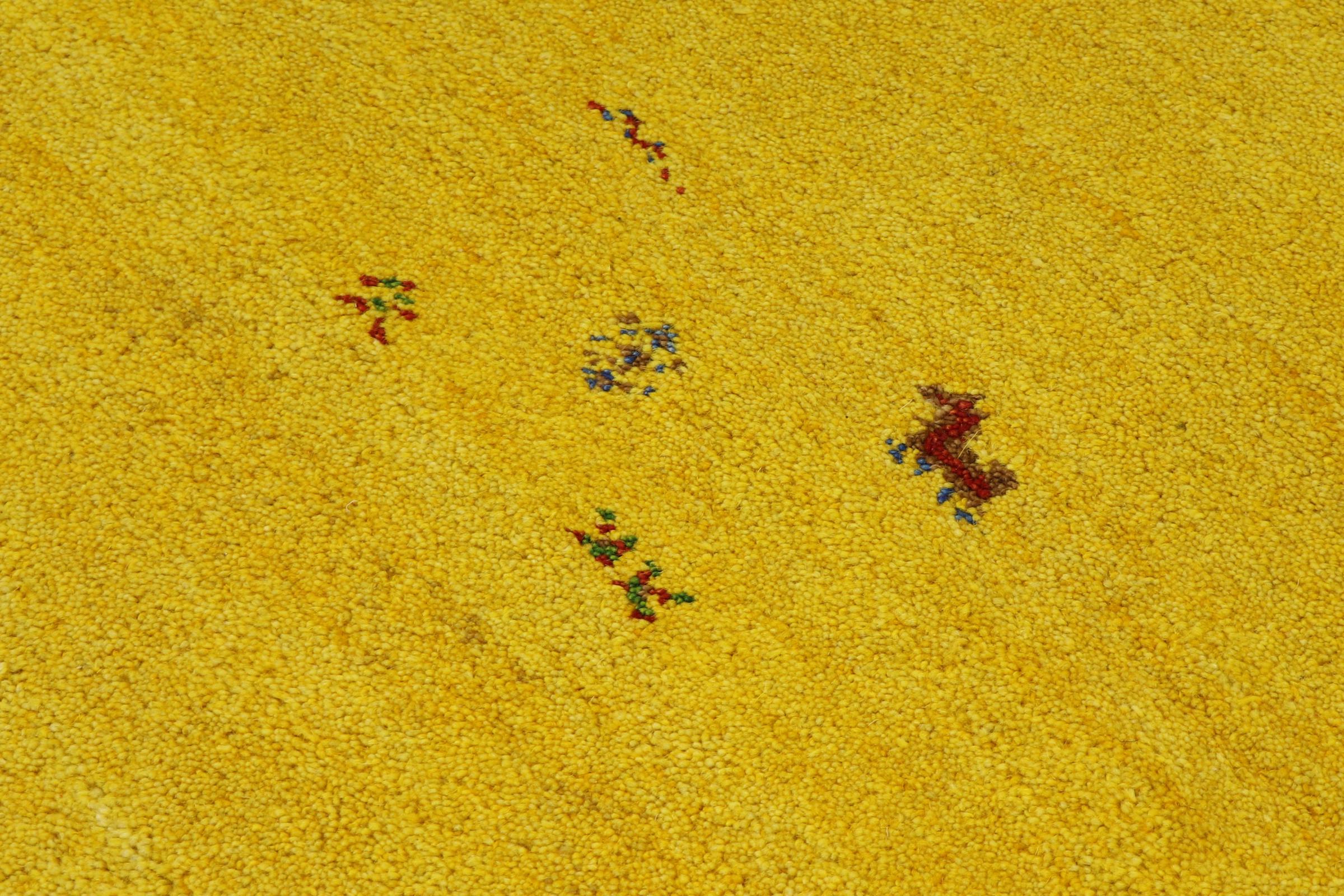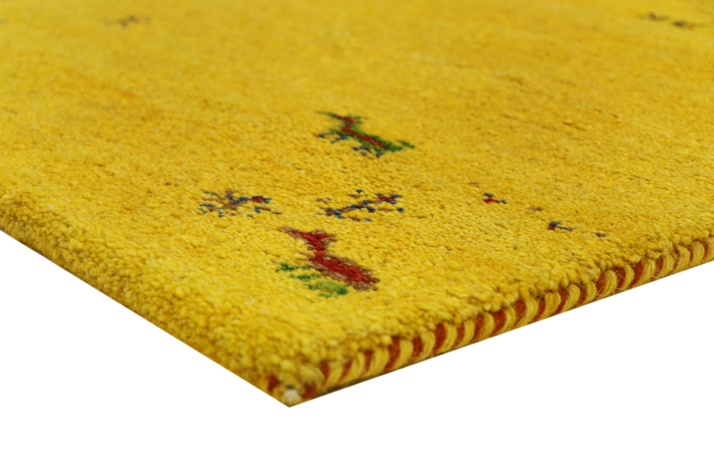 Esta hermosa alfombra de Gabbeh fue anudada a mano en la India. Las alfombras indias de Gabbeh están hechas de suave lana de oveja, son cómodas para los pies y tienen propiedades de aislamiento térmico. La mayoría de sus diseños son simples y modernos atemporales. Se inspiraron en los pueblos nómadas, que dejaban fluir en las alfombras motivos muy simples de su entorno. Las alfombras de Gabbeh de la India no se acercan mucho a la calidad de las de Gabbeh de Persia, pero tienen una muy buena relación precio-rendimiento. Por lo tanto, son perfectamente adecuadas como alfombras anudadas a mano para principiantes.