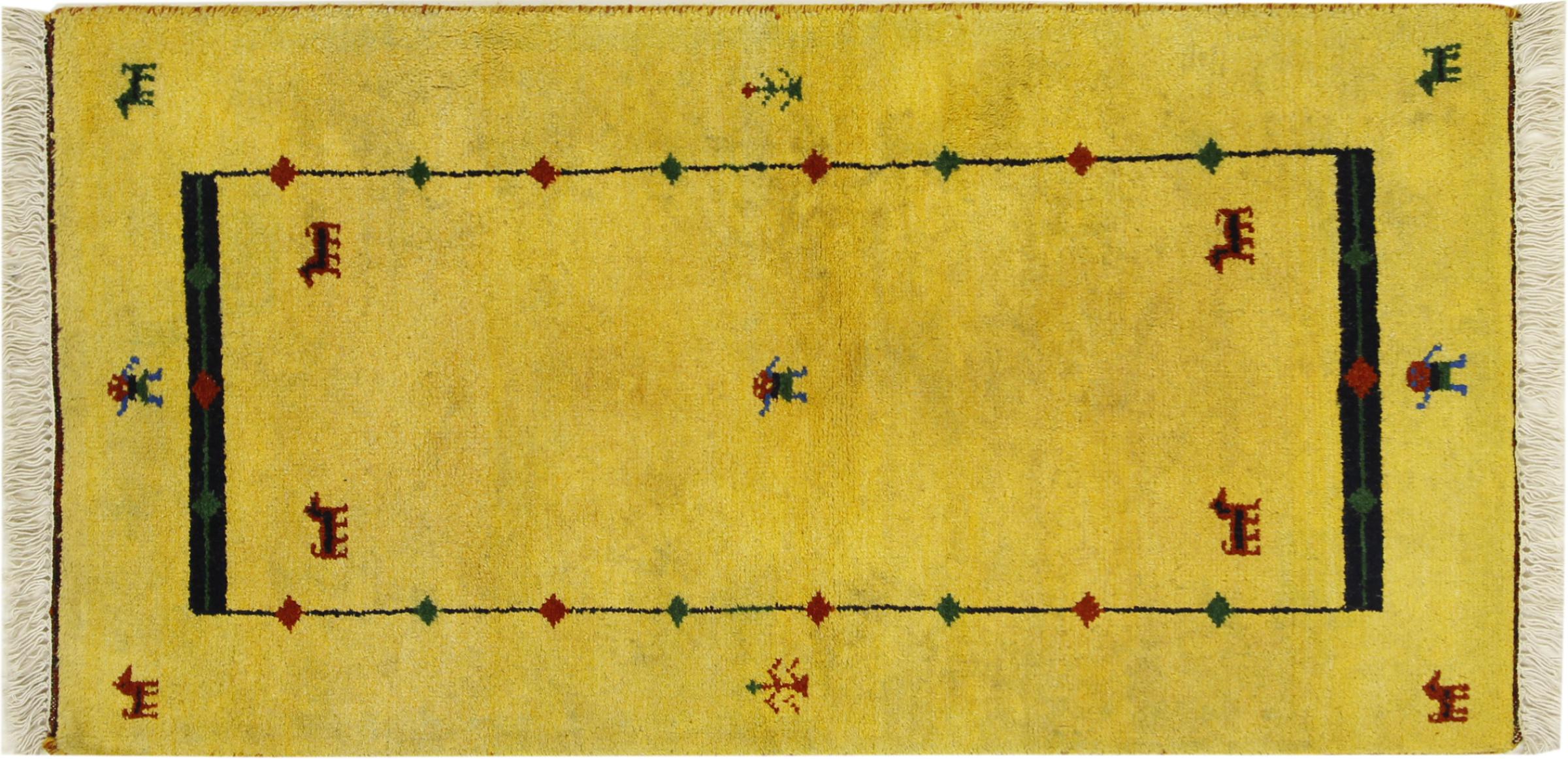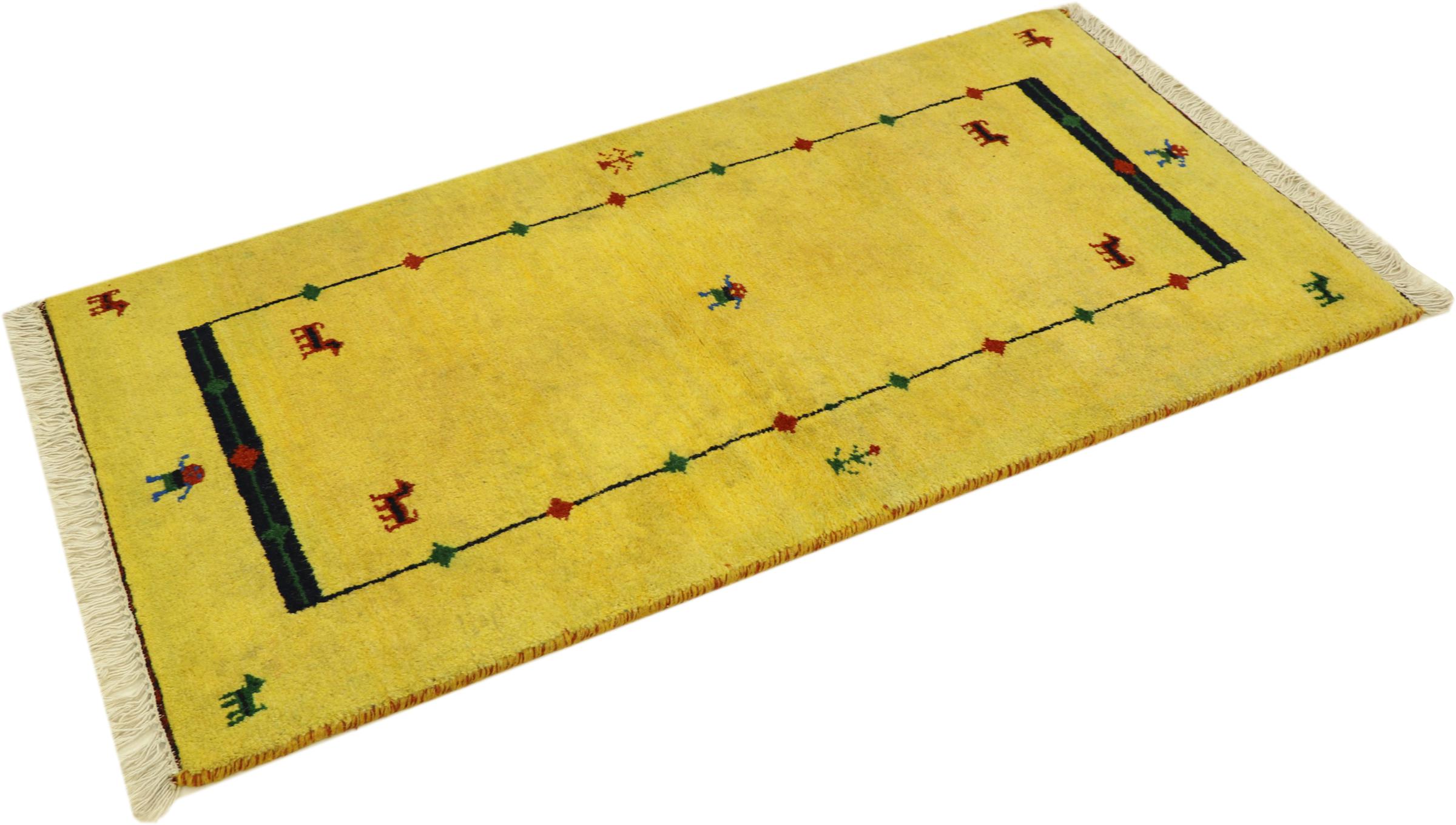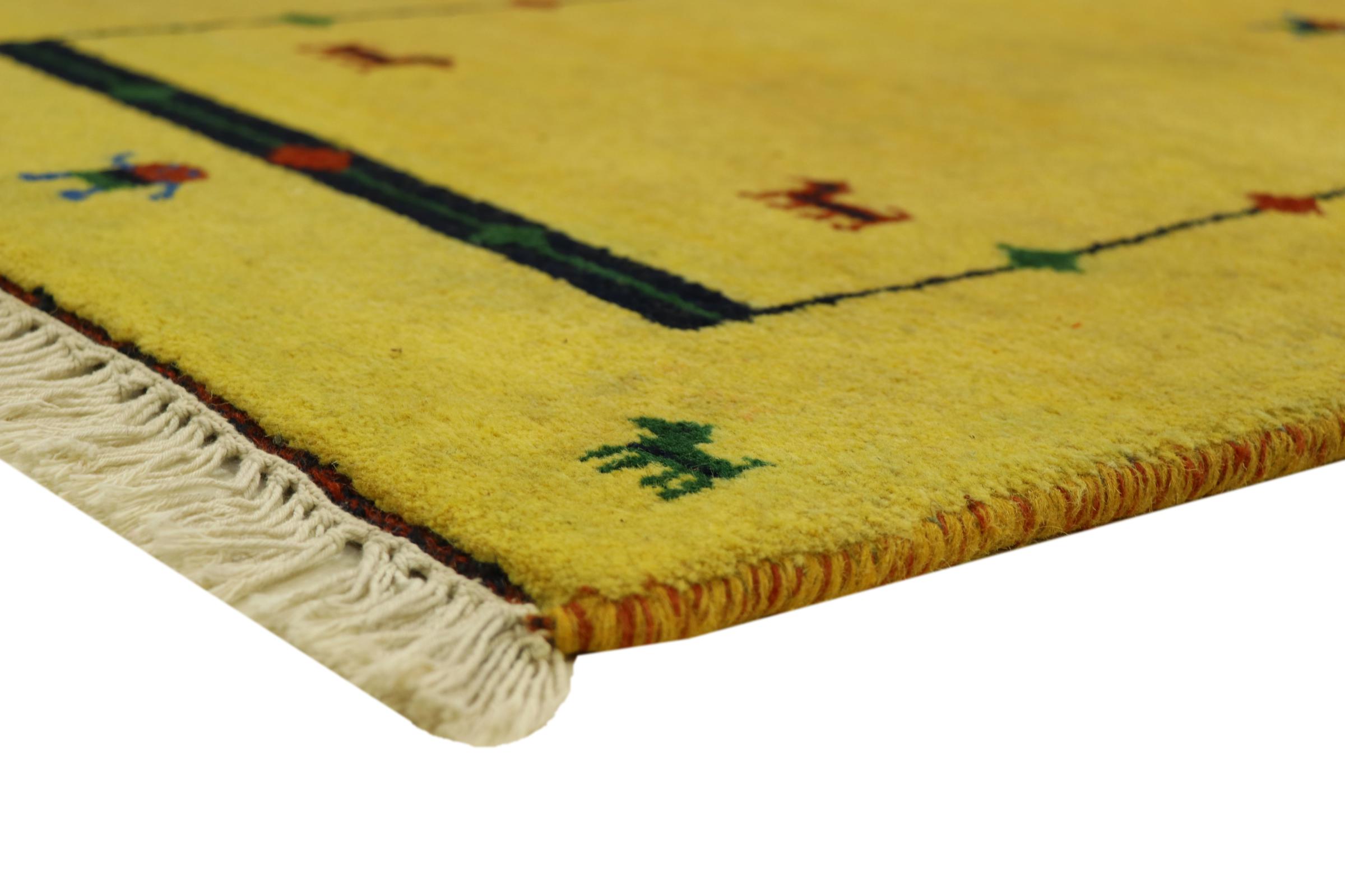 Esta hermosa alfombra de Gabbeh fue anudada a mano en la India. Las alfombras indias de Gabbeh están hechas de suave lana de oveja, son cómodas para los pies y tienen propiedades de aislamiento térmico. La mayoría de sus diseños son simples y modernos atemporales. Se inspiraron en los pueblos nómadas, que dejaban fluir en las alfombras motivos muy simples de su entorno. Las alfombras de Gabbeh de la India no se acercan mucho a la calidad de las de Gabbeh de Persia, pero tienen una muy buena relación precio-rendimiento. Por lo tanto, son perfectamente adecuadas como alfombras anudadas a mano para principiantes.