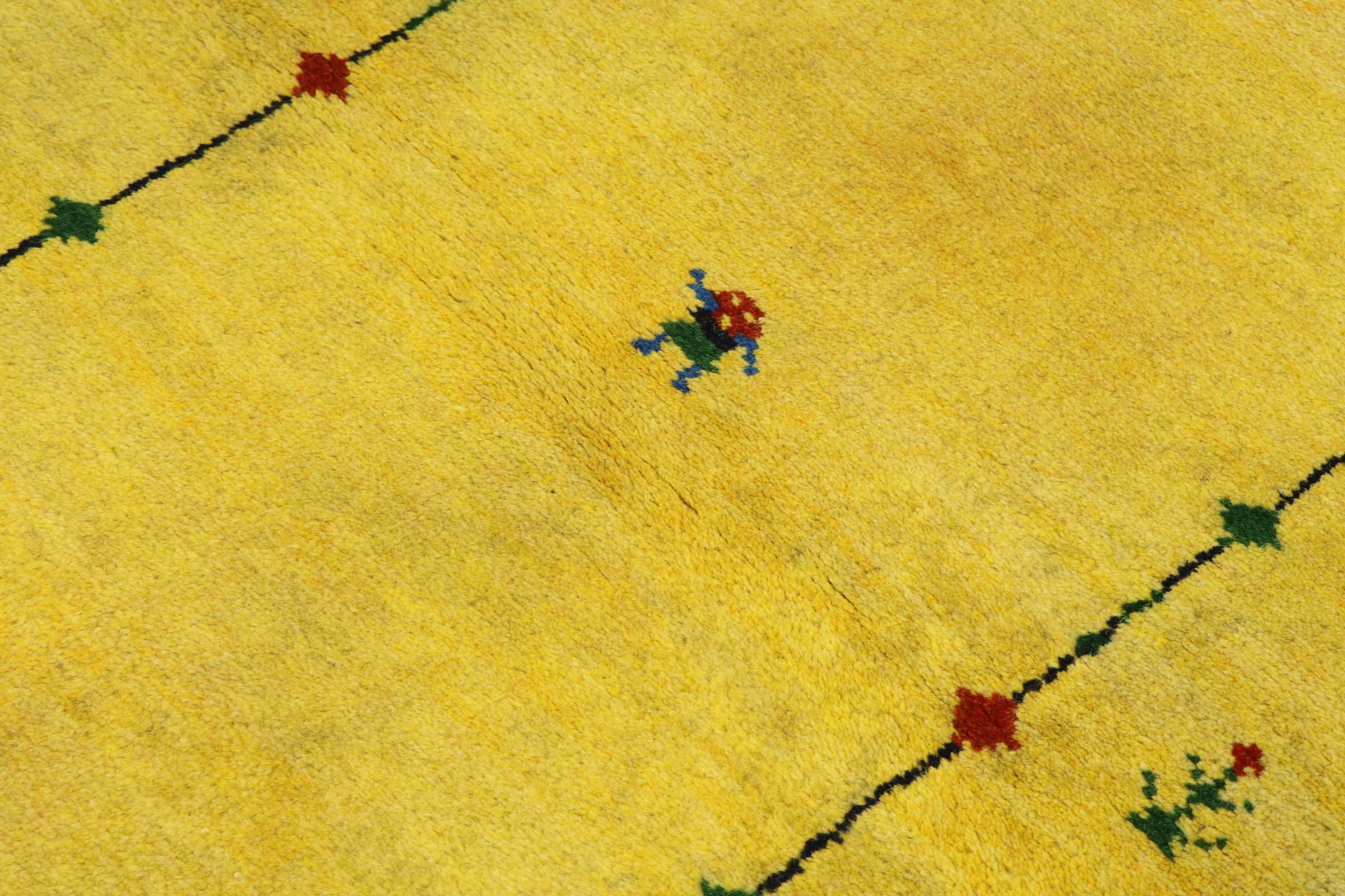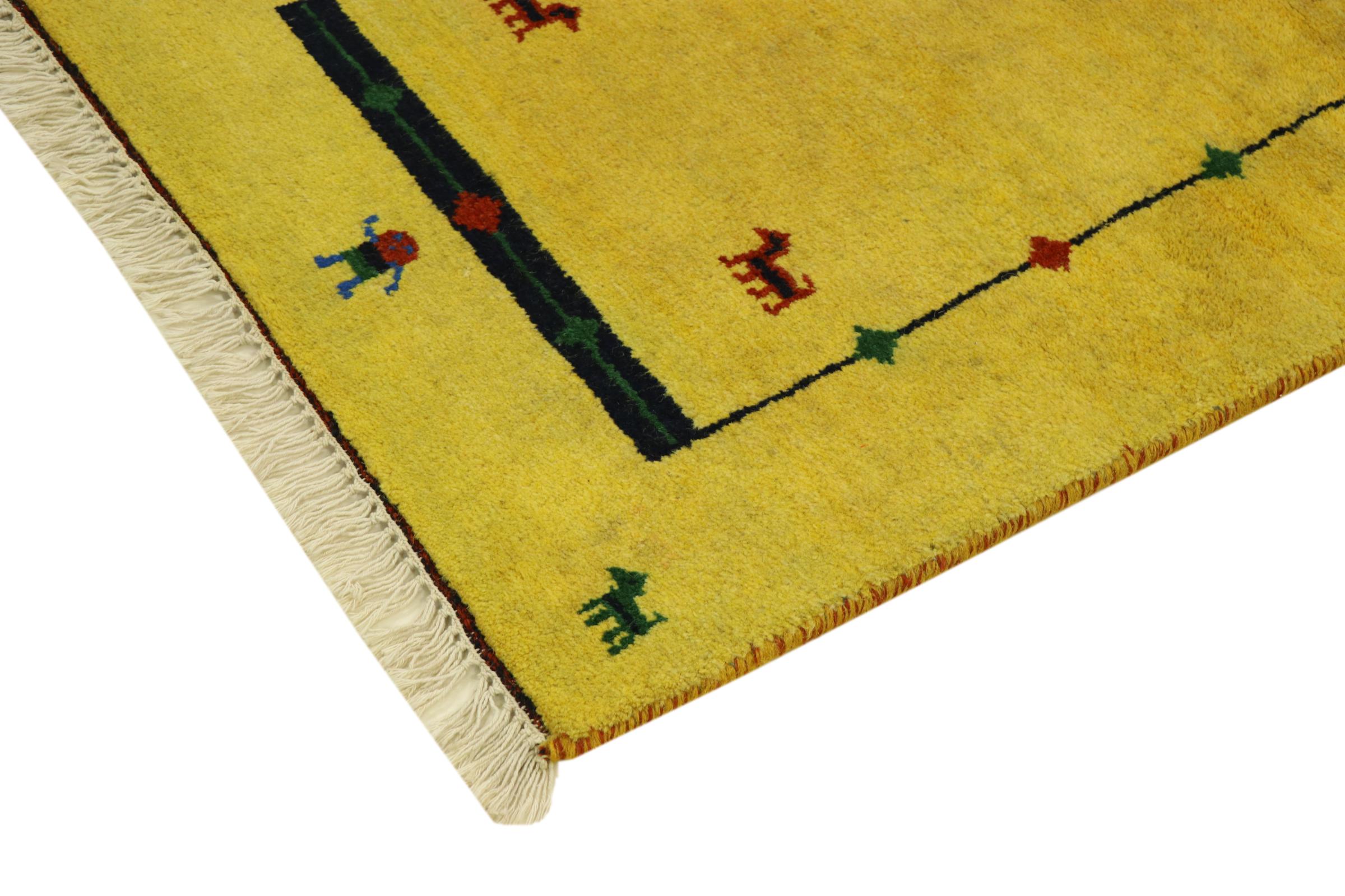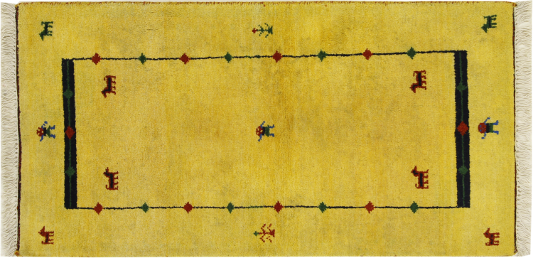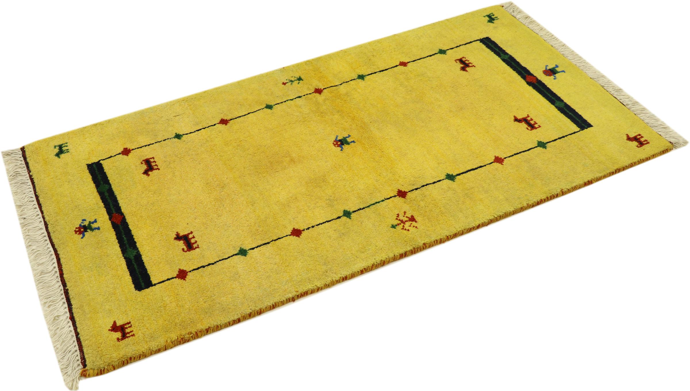 Esta hermosa alfombra de Gabbeh fue anudada a mano en la India. Las alfombras indias de Gabbeh están hechas de suave lana de oveja, son cómodas para los pies y tienen propiedades de aislamiento térmico. La mayoría de sus diseños son simples y modernos atemporales. Se inspiraron en los pueblos nómadas, que dejaban fluir en las alfombras motivos muy simples de su entorno. Las alfombras de Gabbeh de la India no se acercan mucho a la calidad de las de Gabbeh de Persia, pero tienen una muy buena relación precio-rendimiento. Por lo tanto, son perfectamente adecuadas como alfombras anudadas a mano para principiantes.