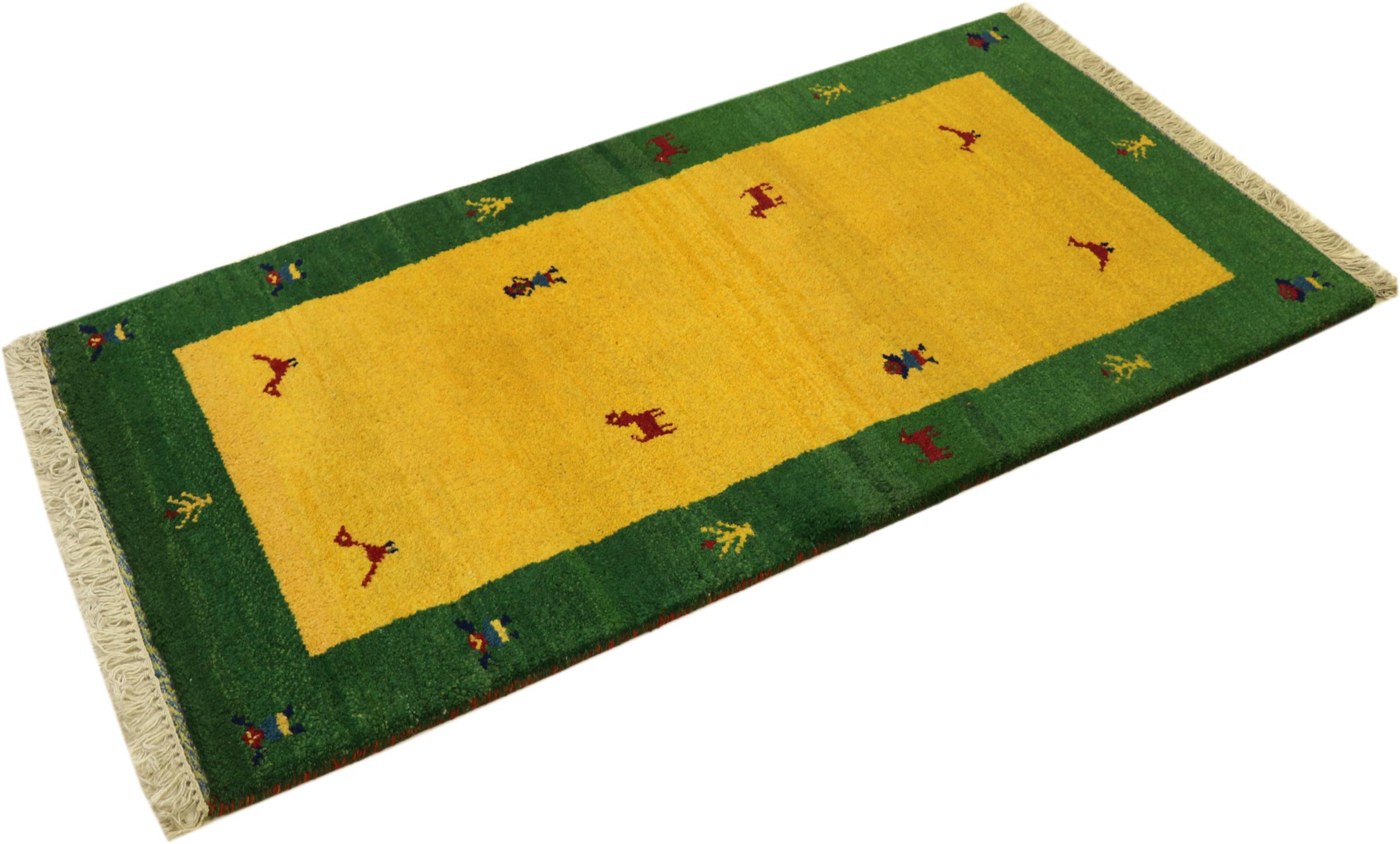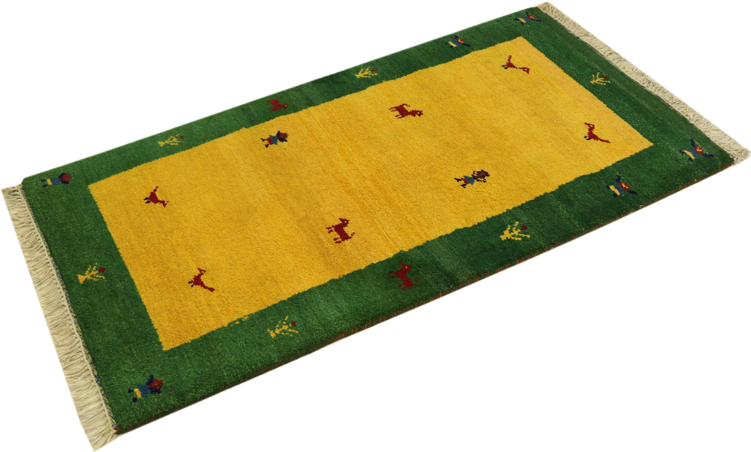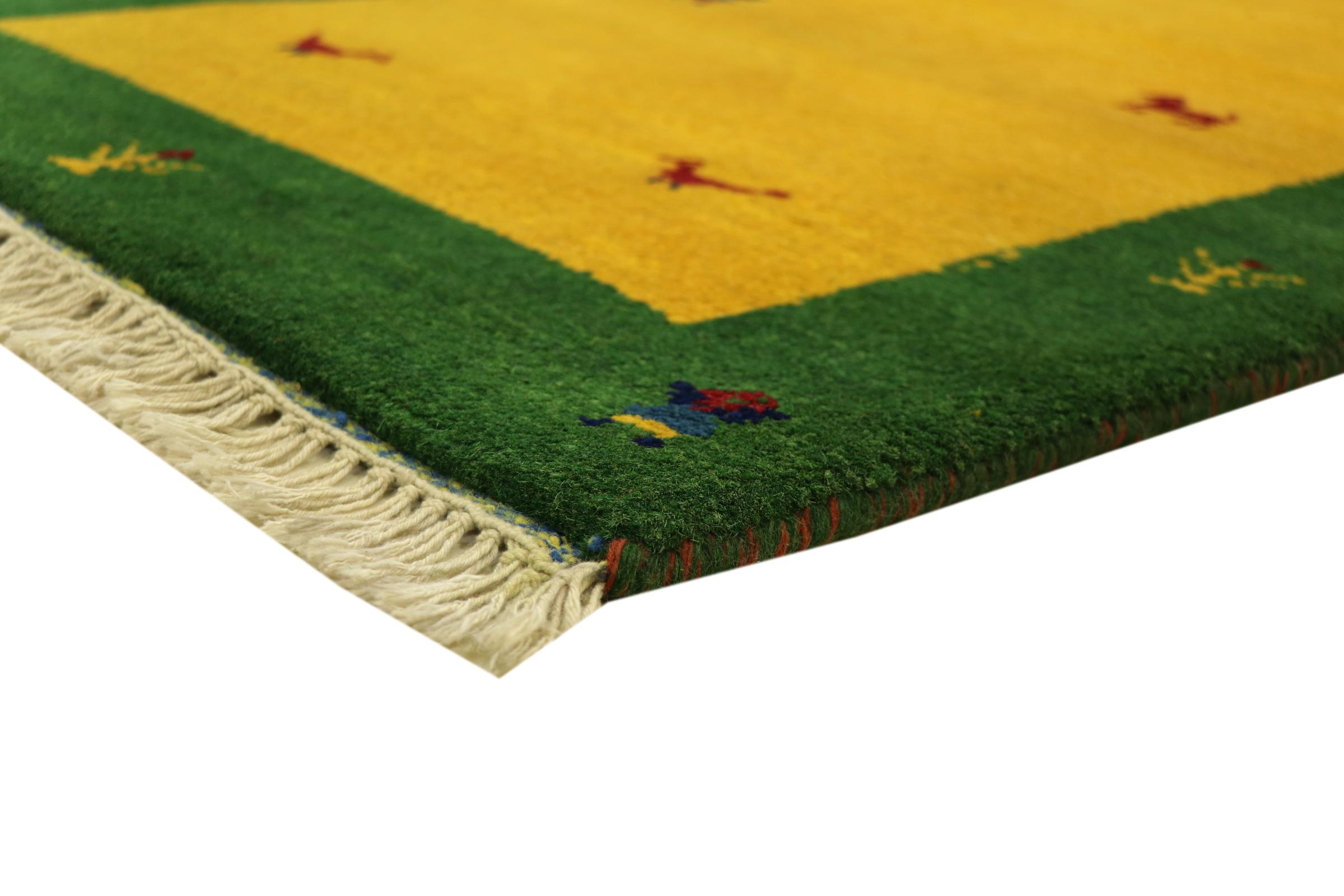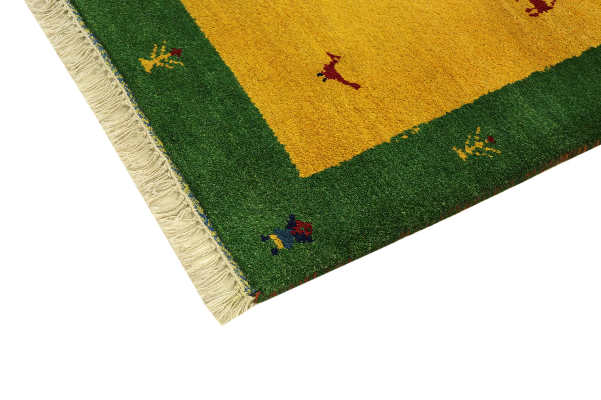 Esta hermosa alfombra de Gabbeh fue anudada a mano en la India. Las alfombras indias de Gabbeh están hechas de suave lana de oveja, son cómodas para los pies y tienen propiedades de aislamiento térmico. La mayoría de sus diseños son simples y modernos atemporales. Se inspiraron en los pueblos nómadas, que dejaban fluir en las alfombras motivos muy simples de su entorno. Las alfombras de Gabbeh de la India no se acercan mucho a la calidad de las de Gabbeh de Persia, pero tienen una muy buena relación precio-rendimiento. Por lo tanto, son perfectamente adecuadas como alfombras anudadas a mano para principiantes.