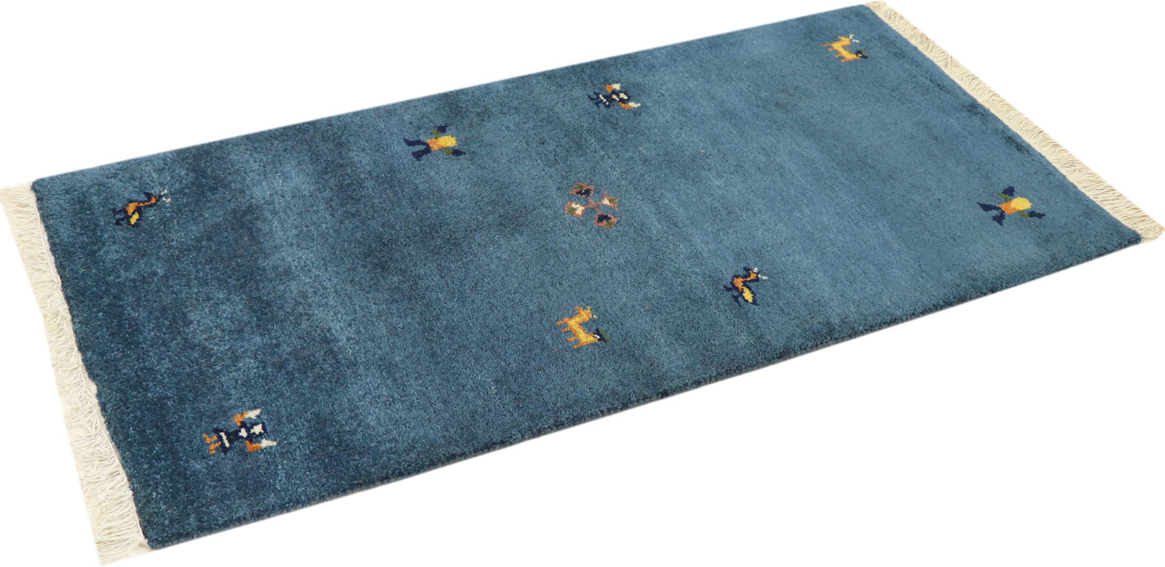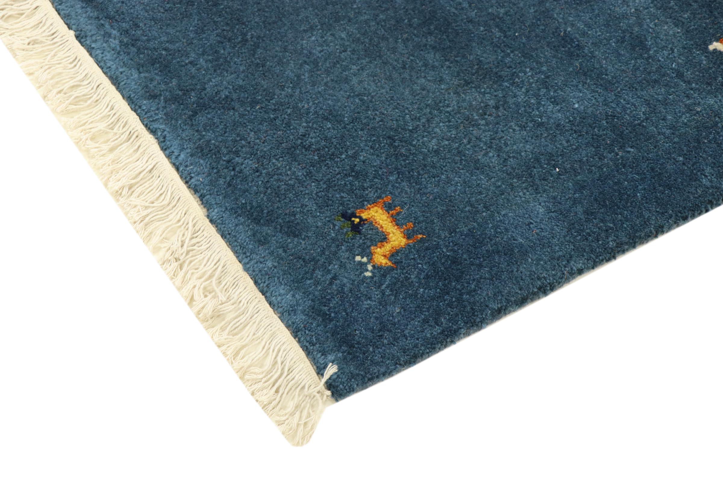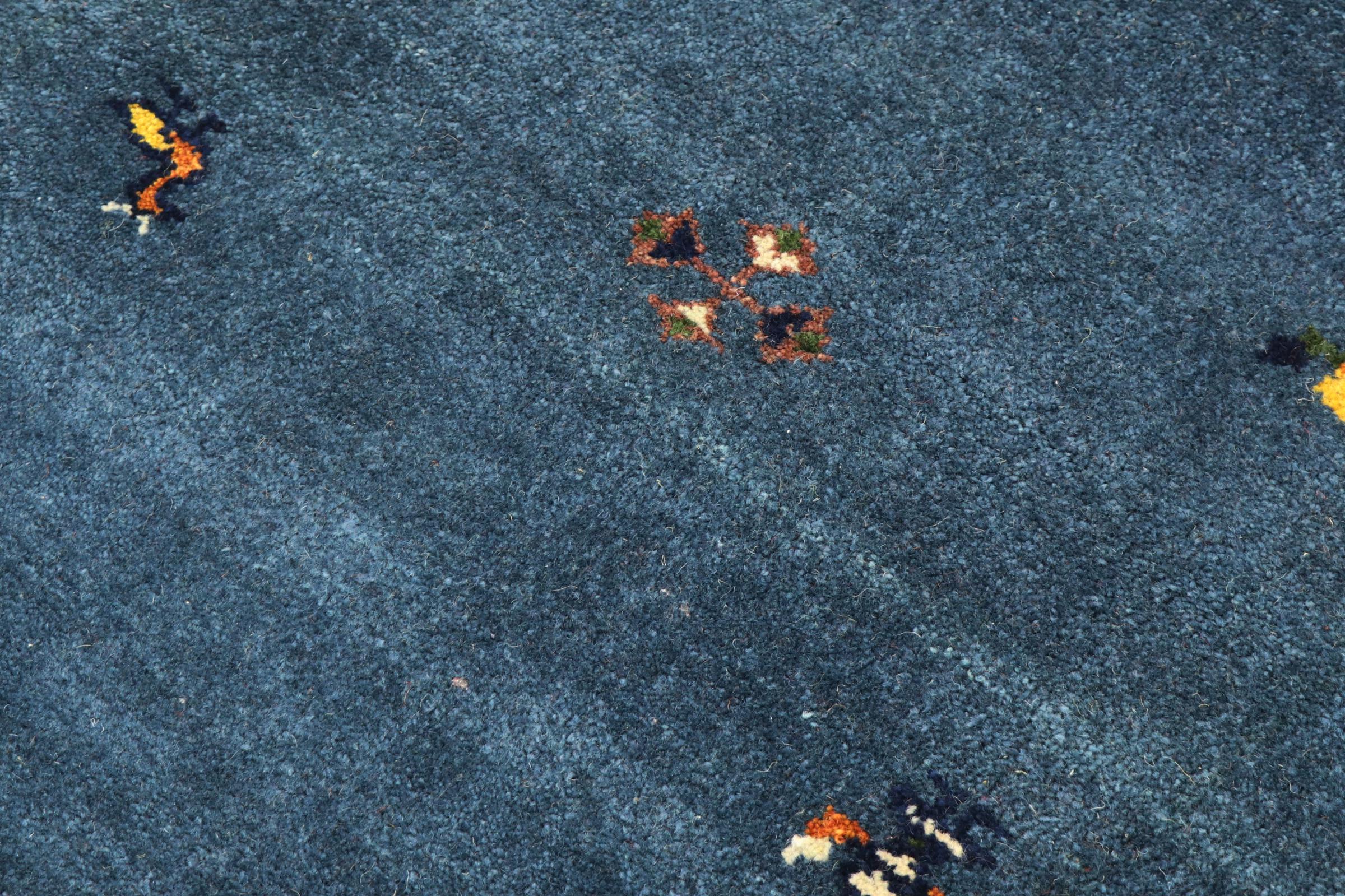 Esta hermosa alfombra de Gabbeh fue anudada a mano en la India. Las alfombras indias de Gabbeh están hechas de suave lana de oveja, son cómodas para los pies y tienen propiedades de aislamiento térmico. La mayoría de sus diseños son simples y modernos atemporales. Se inspiraron en los pueblos nómadas, que dejaban fluir en las alfombras motivos muy simples de su entorno. Las alfombras de Gabbeh de la India no se acercan mucho a la calidad de las de Gabbeh de Persia, pero tienen una muy buena relación precio-rendimiento. Por lo tanto, son perfectamente adecuadas como alfombras anudadas a mano para principiantes.