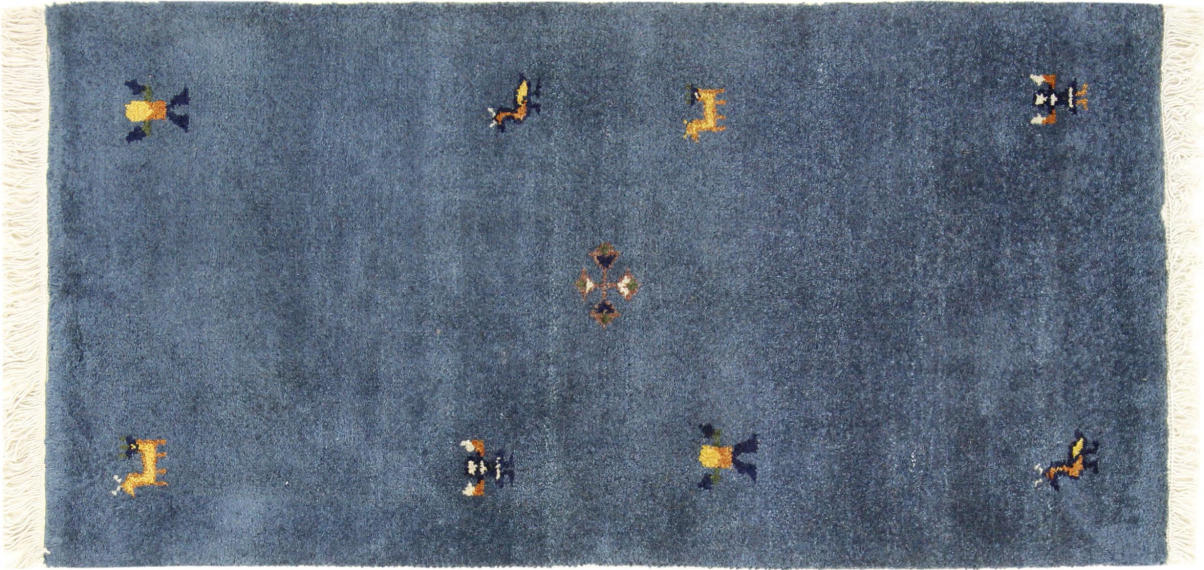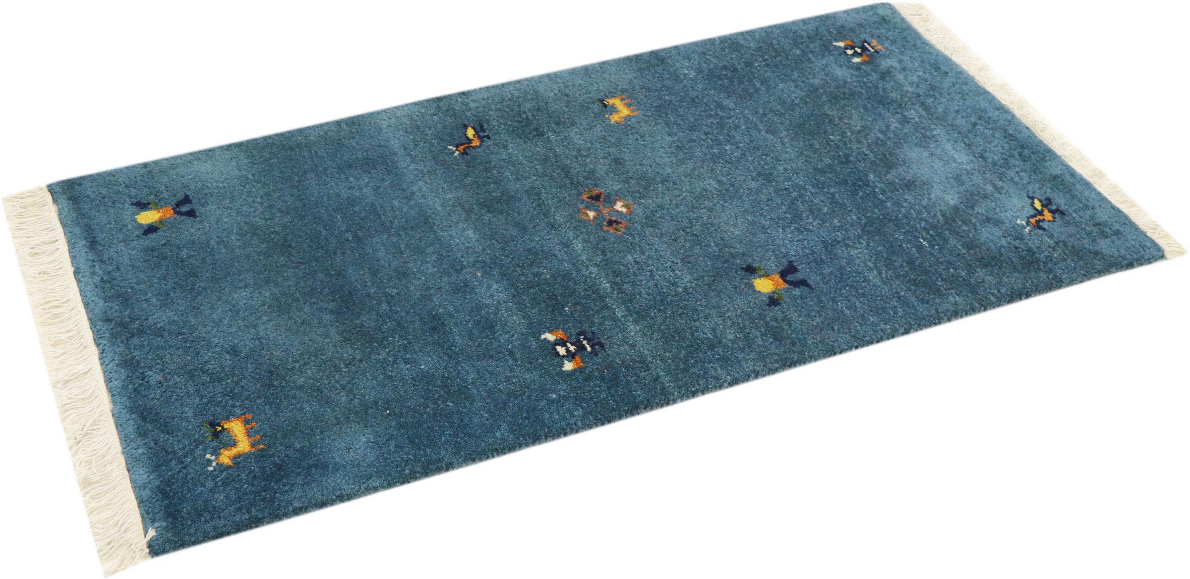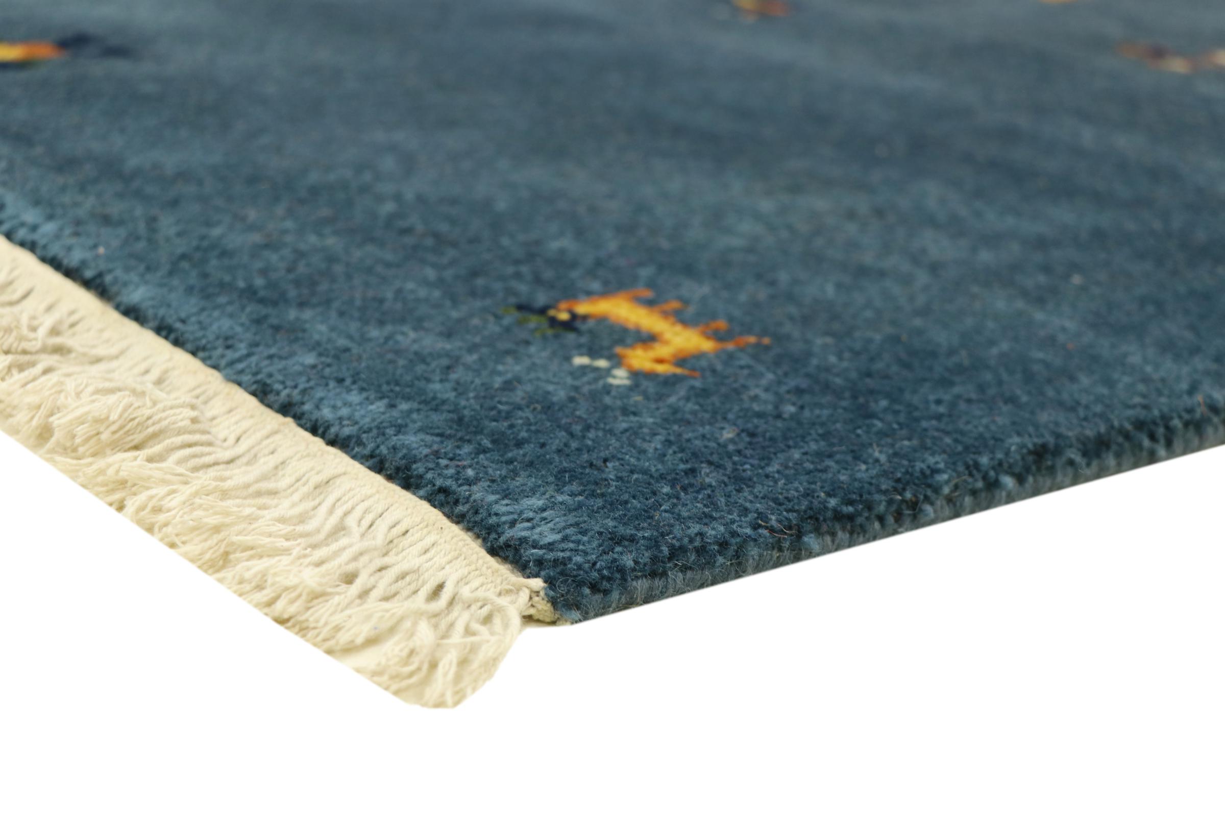Esta hermosa alfombra de Gabbeh fue anudada a mano en la India. Las alfombras indias de Gabbeh están hechas de suave lana de oveja, son cómodas para los pies y tienen propiedades de aislamiento térmico. La mayoría de sus diseños son simples y modernos atemporales. Se inspiraron en los pueblos nómadas, que dejaban fluir en las alfombras motivos muy simples de su entorno. Las alfombras de Gabbeh de la India no se acercan mucho a la calidad de las de Gabbeh de Persia, pero tienen una muy buena relación precio-rendimiento. Por lo tanto, son perfectamente adecuadas como alfombras anudadas a mano para principiantes.