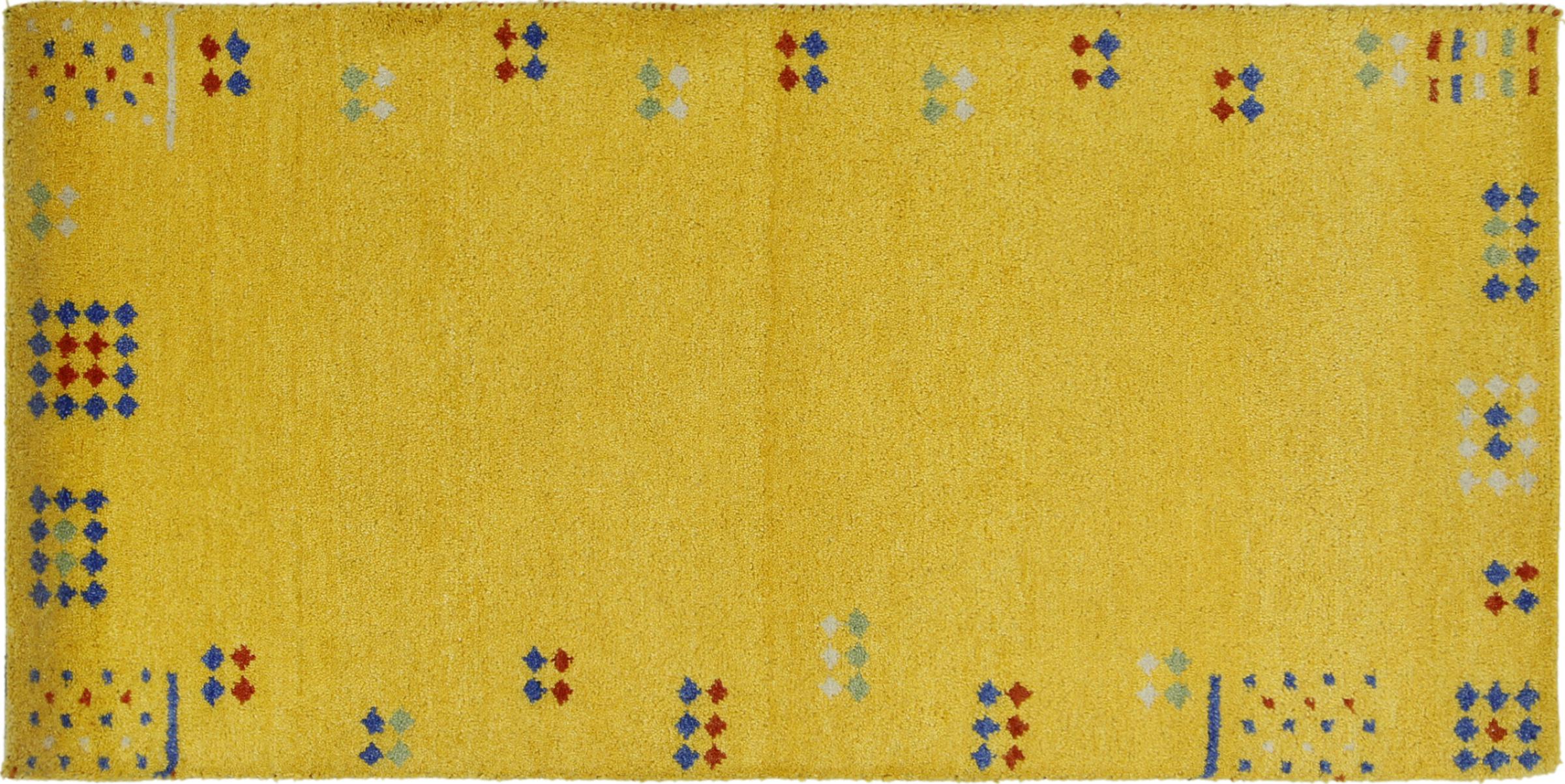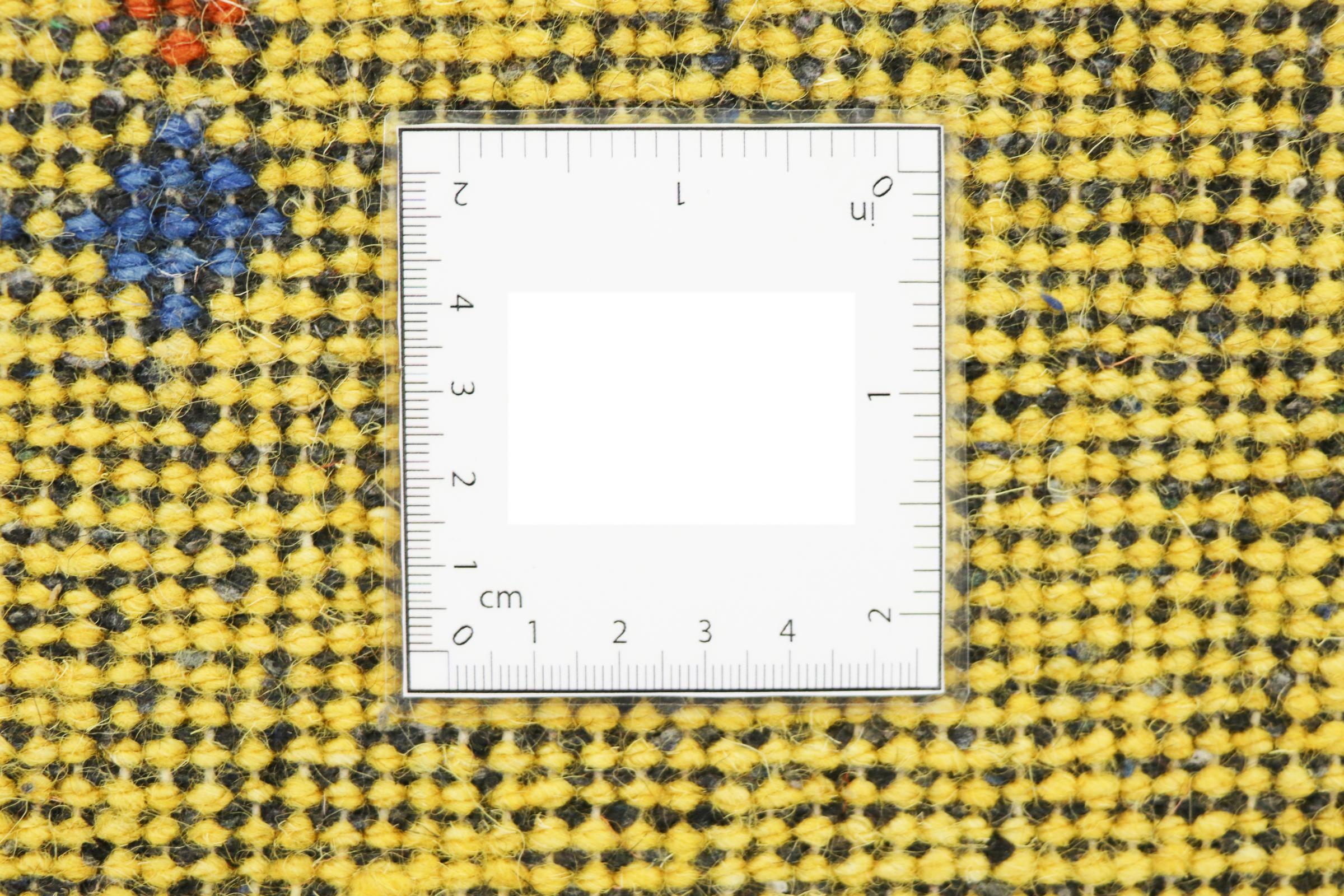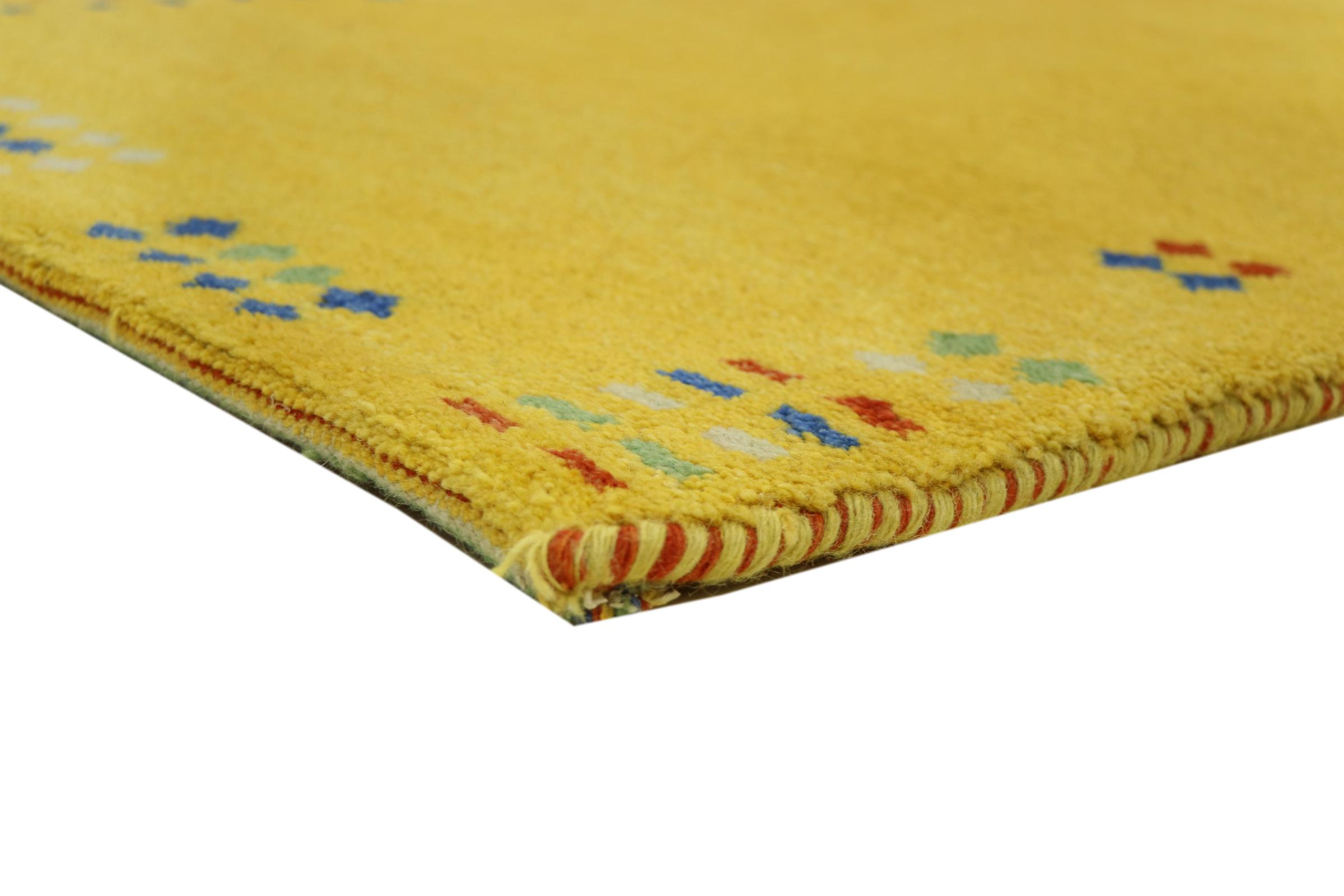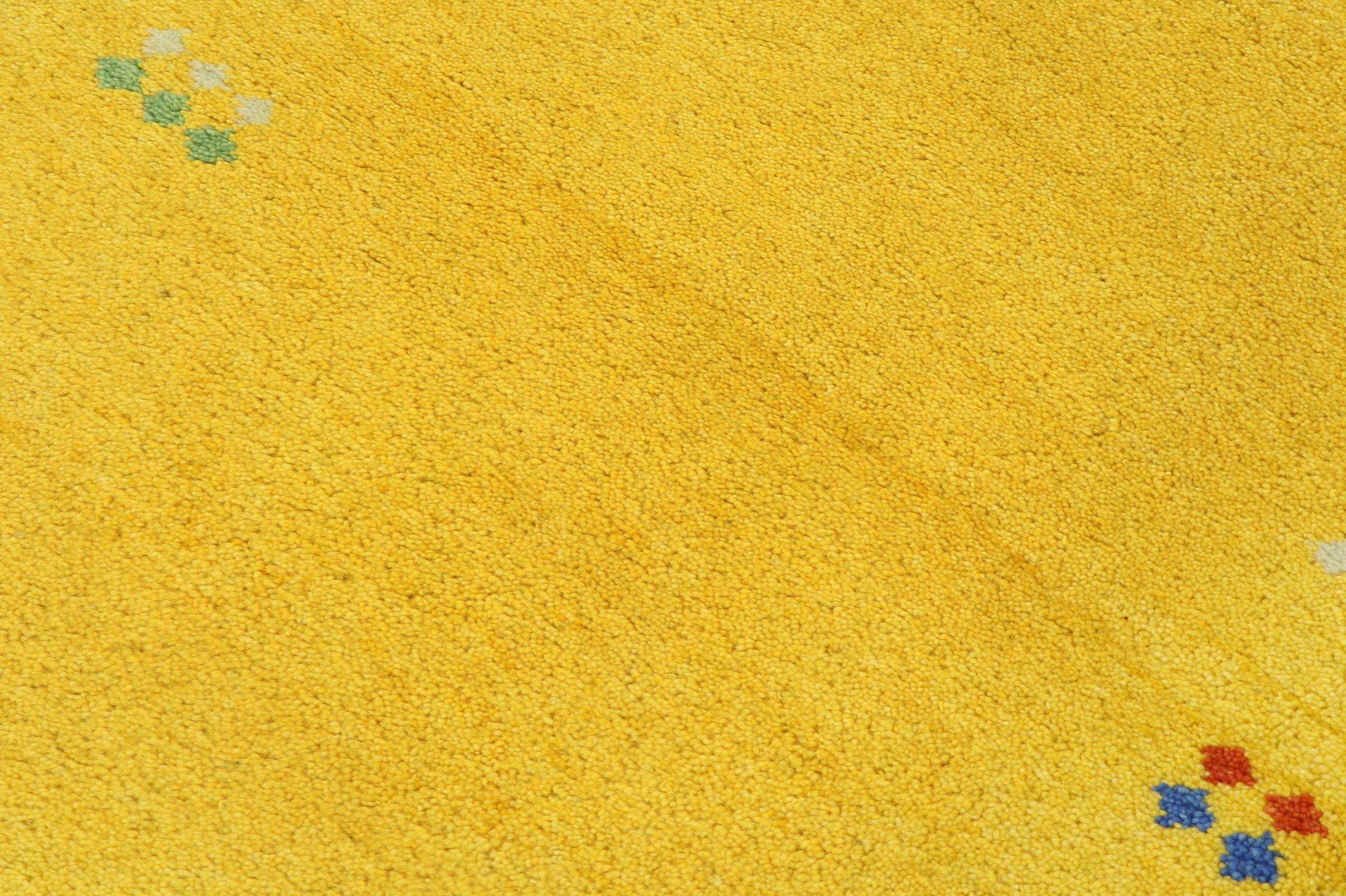 Esta hermosa alfombra de Gabbeh fue anudada a mano en la India. Las alfombras indias de Gabbeh están hechas de suave lana de oveja, son cómodas para los pies y tienen propiedades de aislamiento térmico. La mayoría de sus diseños son simples y modernos atemporales. Se inspiraron en los pueblos nómadas, que dejaban fluir en las alfombras motivos muy simples de su entorno. Las alfombras de Gabbeh de la India no se acercan mucho a la calidad de las de Gabbeh de Persia, pero tienen una muy buena relación precio-rendimiento. Por lo tanto, son perfectamente adecuadas como alfombras anudadas a mano para principiantes.