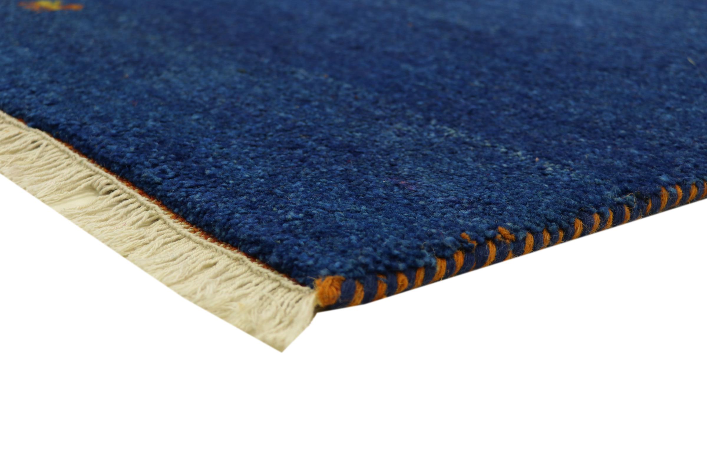 Esta hermosa alfombra de Gabbeh fue anudada a mano en la India. Las alfombras indias de Gabbeh están hechas de suave lana de oveja, son cómodas para los pies y tienen propiedades de aislamiento térmico. La mayoría de sus diseños son simples y modernos atemporales. Se inspiraron en los pueblos nómadas, que dejaban fluir en las alfombras motivos muy simples de su entorno. Las alfombras de Gabbeh de la India no se acercan mucho a la calidad de las de Gabbeh de Persia, pero tienen una muy buena relación precio-rendimiento. Por lo tanto, son perfectamente adecuadas como alfombras anudadas a mano para principiantes.