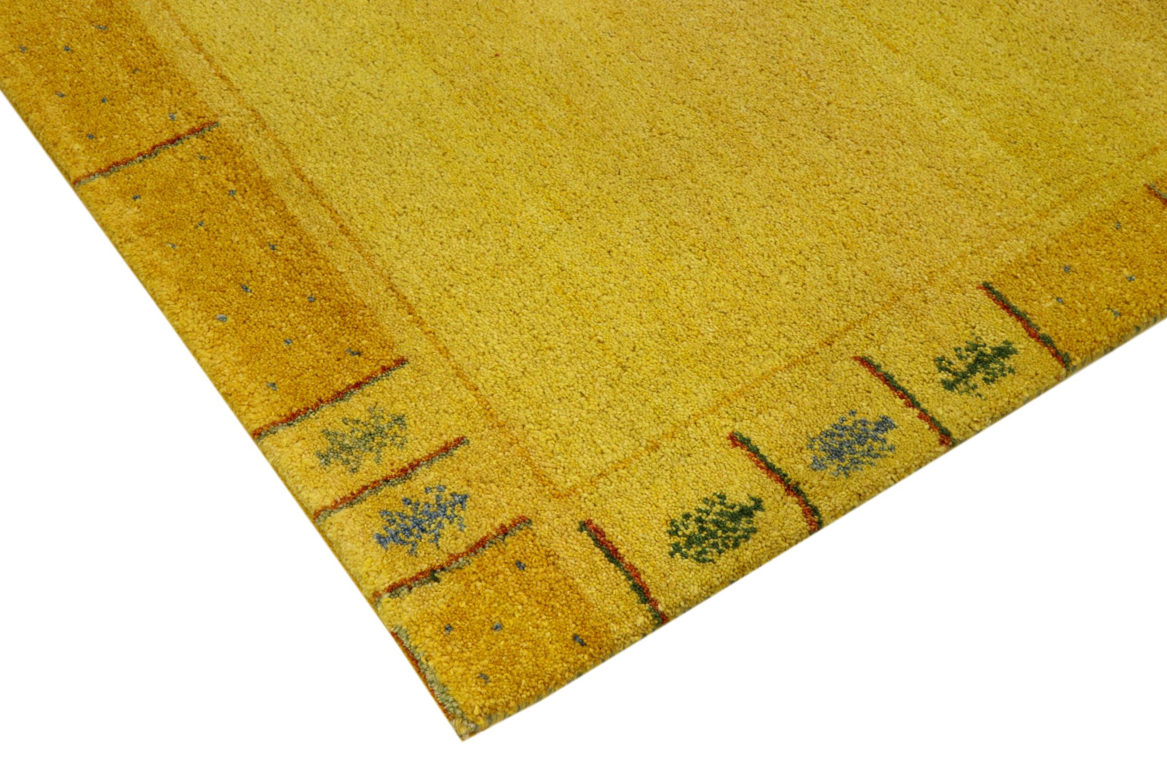 Esta hermosa alfombra de Gabbeh fue anudada a mano en la India. Las alfombras indias de Gabbeh están hechas de suave lana de oveja, son cómodas para los pies y tienen propiedades de aislamiento térmico. La mayoría de sus diseños son simples y modernos atemporales. Se inspiraron en los pueblos nómadas, que dejaban fluir en las alfombras motivos muy simples de su entorno. Las alfombras de Gabbeh de la India no se acercan mucho a la calidad de las de Gabbeh de Persia, pero tienen una muy buena relación precio-rendimiento. Por lo tanto, son perfectamente adecuadas como alfombras anudadas a mano para principiantes.