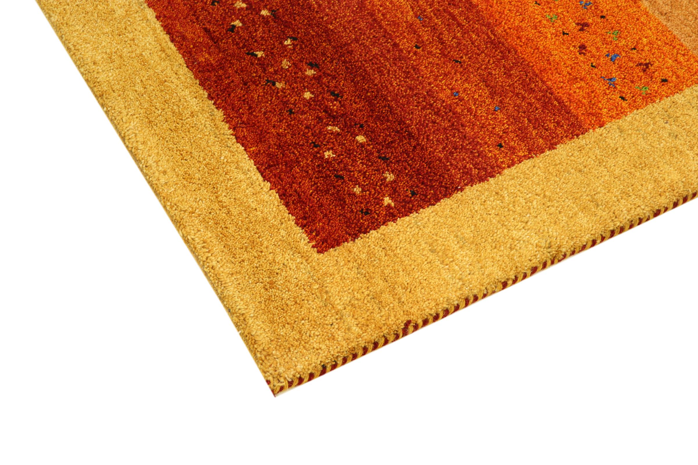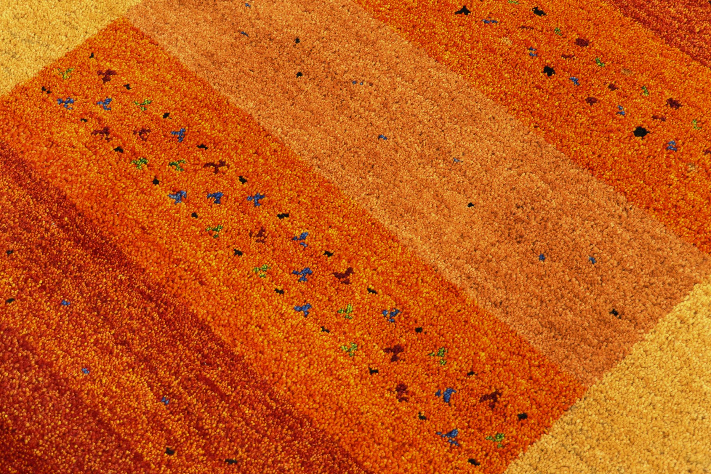 Esta hermosa alfombra de Gabbeh fue anudada a mano en la India. Las alfombras indias de Gabbeh están hechas de suave lana de oveja, son cómodas para los pies y tienen propiedades de aislamiento térmico. La mayoría de sus diseños son simples y modernos atemporales. Se inspiraron en los pueblos nómadas, que dejaban fluir en las alfombras motivos muy simples de su entorno. Las alfombras de Gabbeh de la India no se acercan mucho a la calidad de las de Gabbeh de Persia, pero tienen una muy buena relación precio-rendimiento. Por lo tanto, son perfectamente adecuadas como alfombras anudadas a mano para principiantes.
