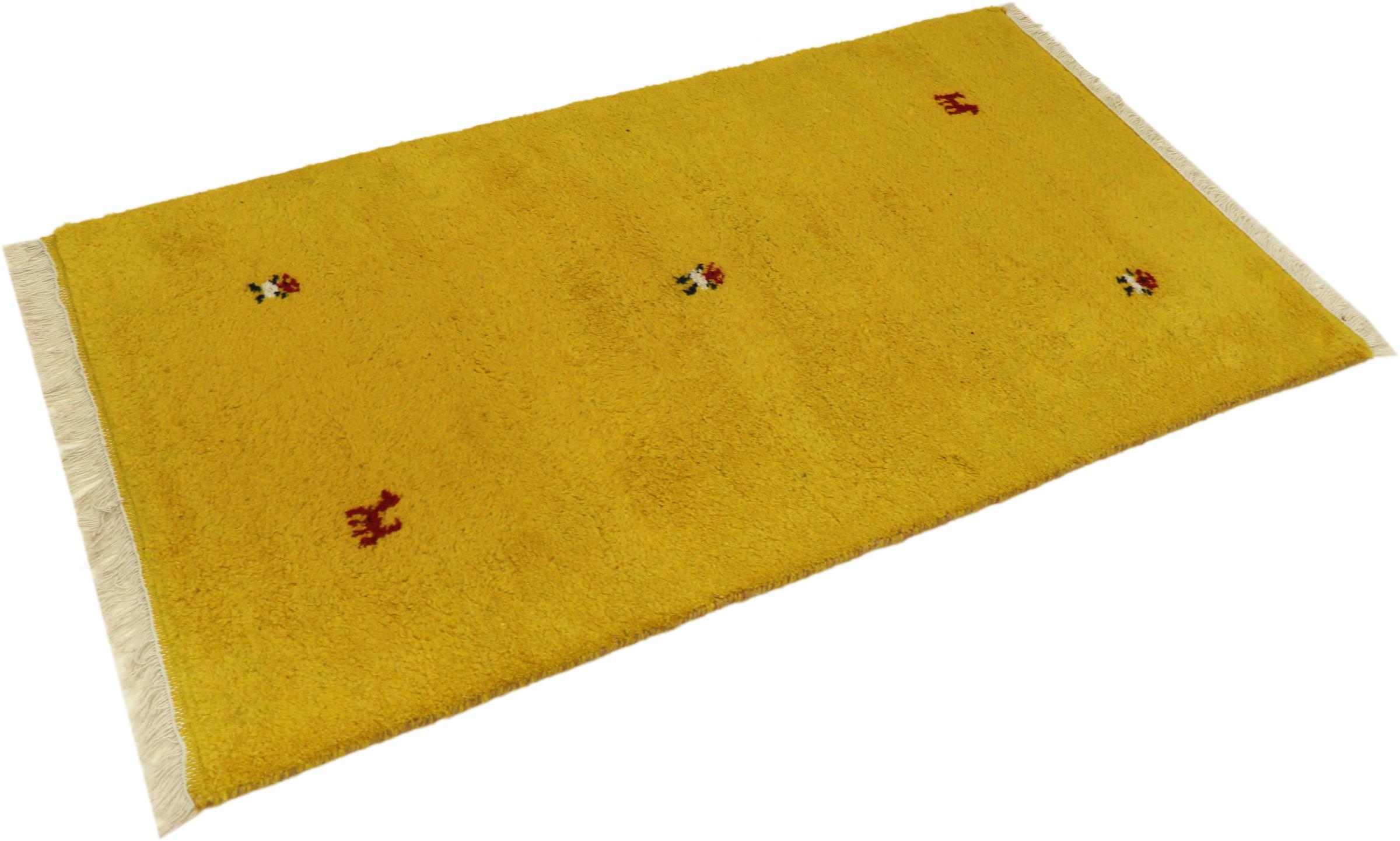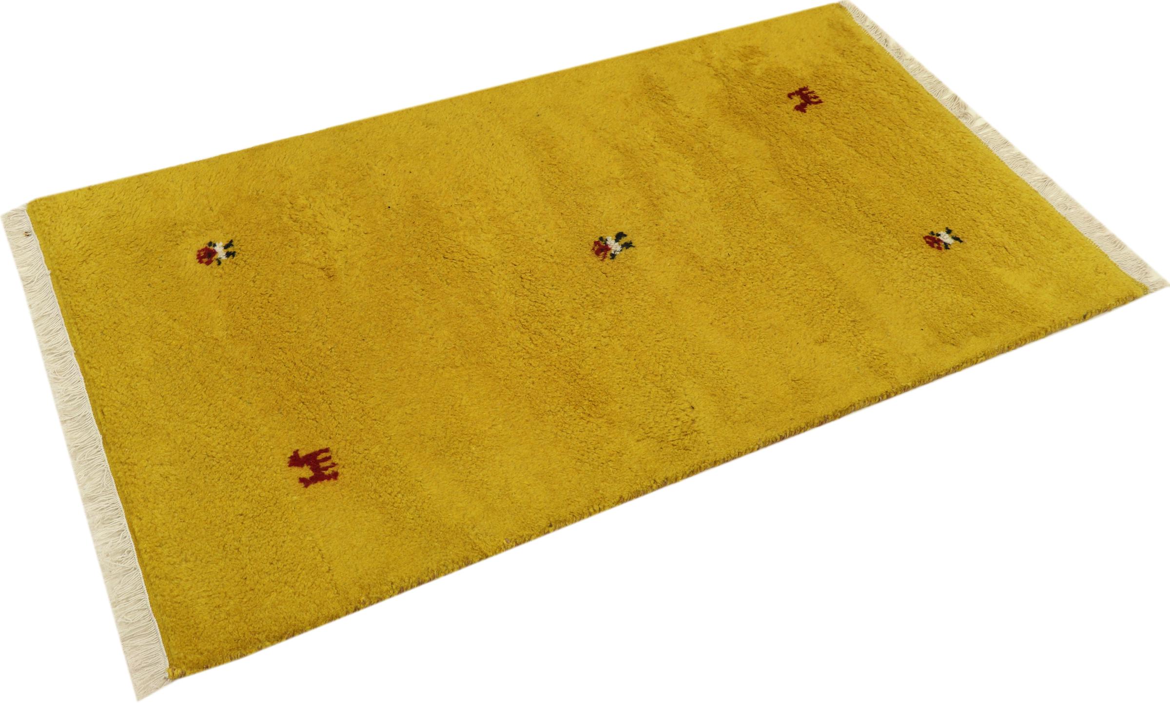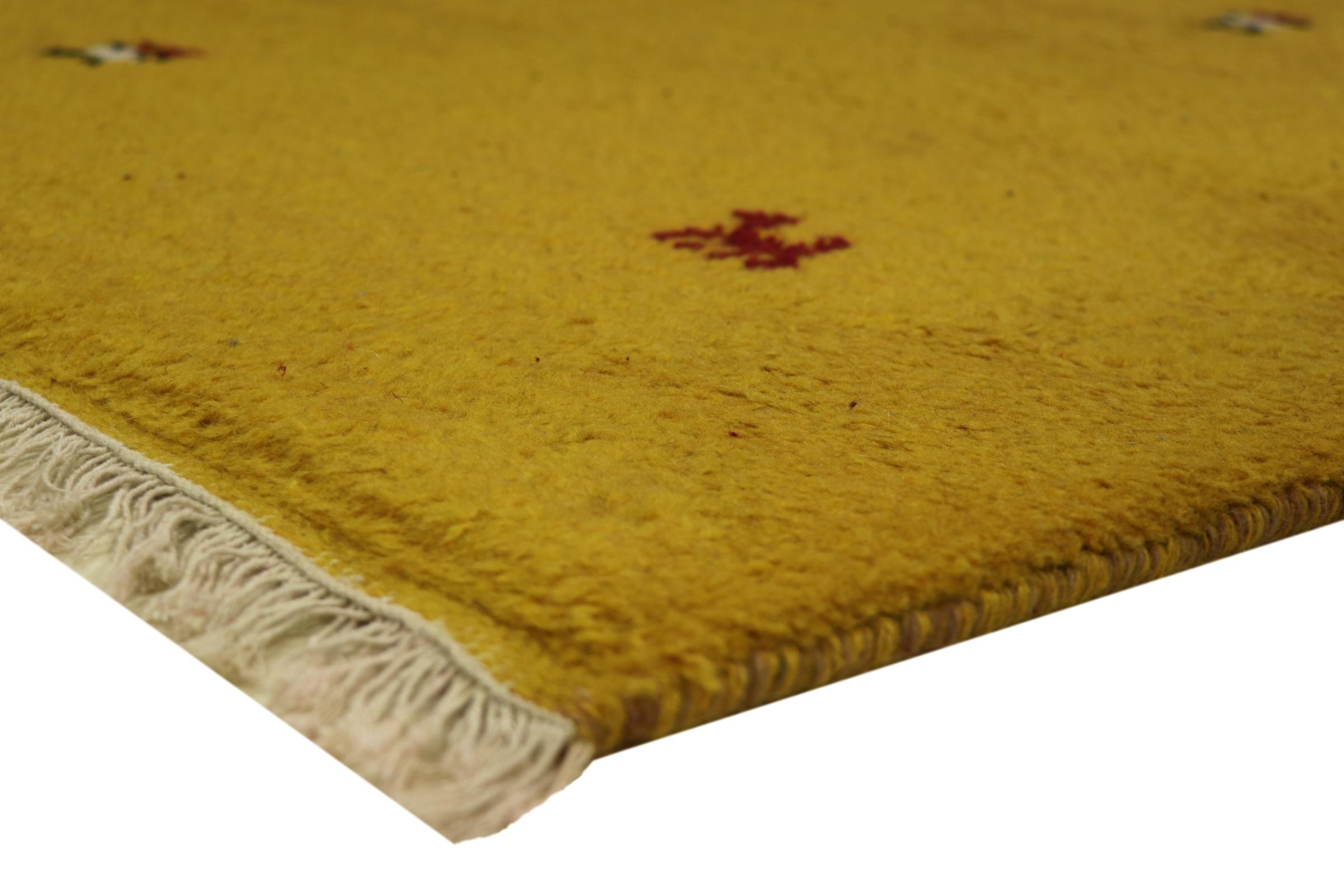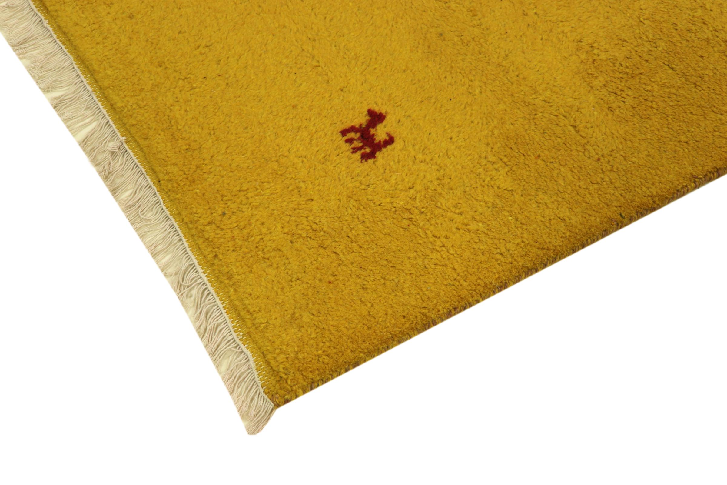 Esta hermosa alfombra de Gabbeh fue anudada a mano en la India. Las alfombras indias de Gabbeh están hechas de suave lana de oveja, son cómodas para los pies y tienen propiedades de aislamiento térmico. La mayoría de sus diseños son simples y modernos atemporales. Se inspiraron en los pueblos nómadas, que dejaban fluir en las alfombras motivos muy simples de su entorno. Las alfombras de Gabbeh de la India no se acercan mucho a la calidad de las de Gabbeh de Persia, pero tienen una muy buena relación precio-rendimiento. Por lo tanto, son perfectamente adecuadas como alfombras anudadas a mano para principiantes.
