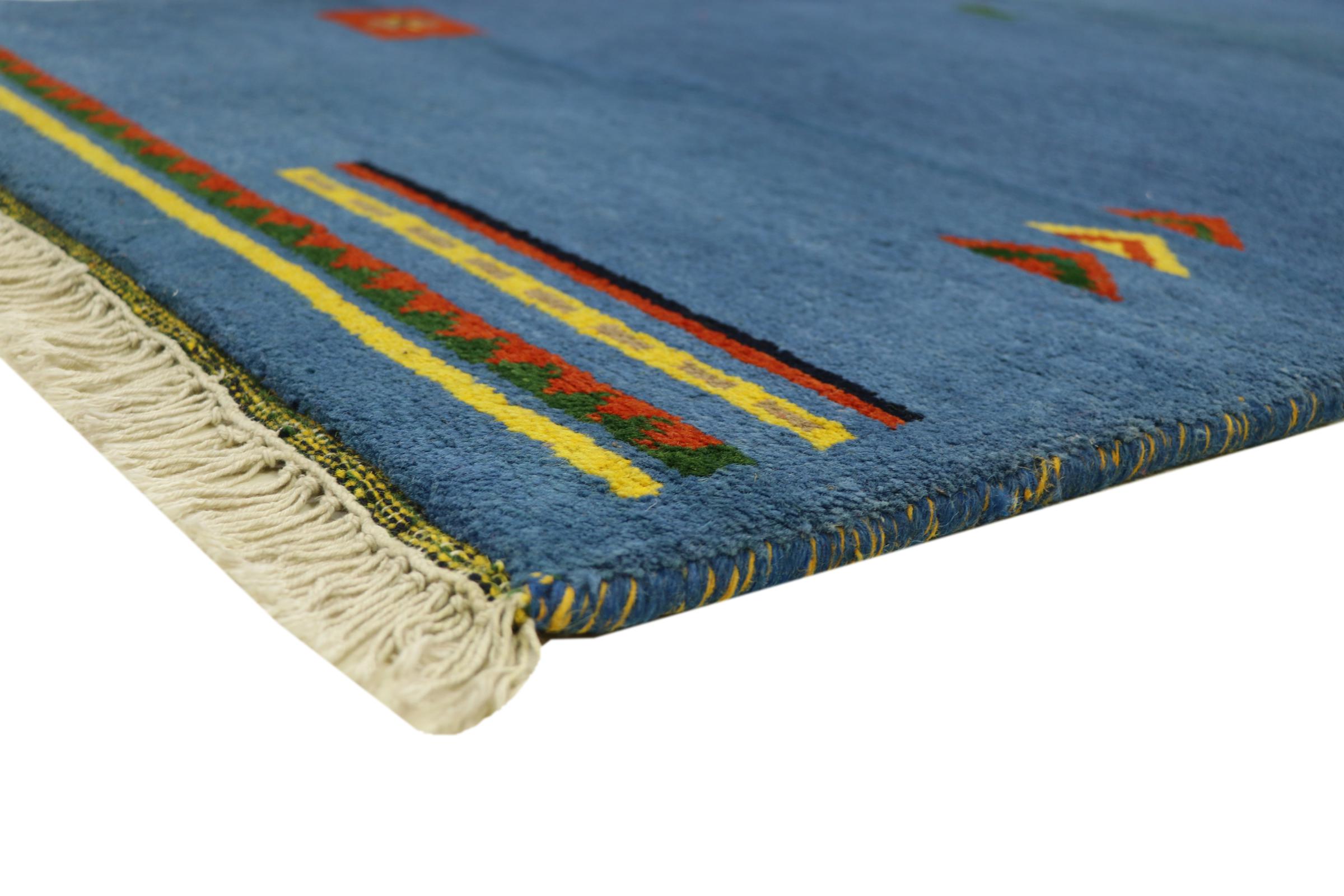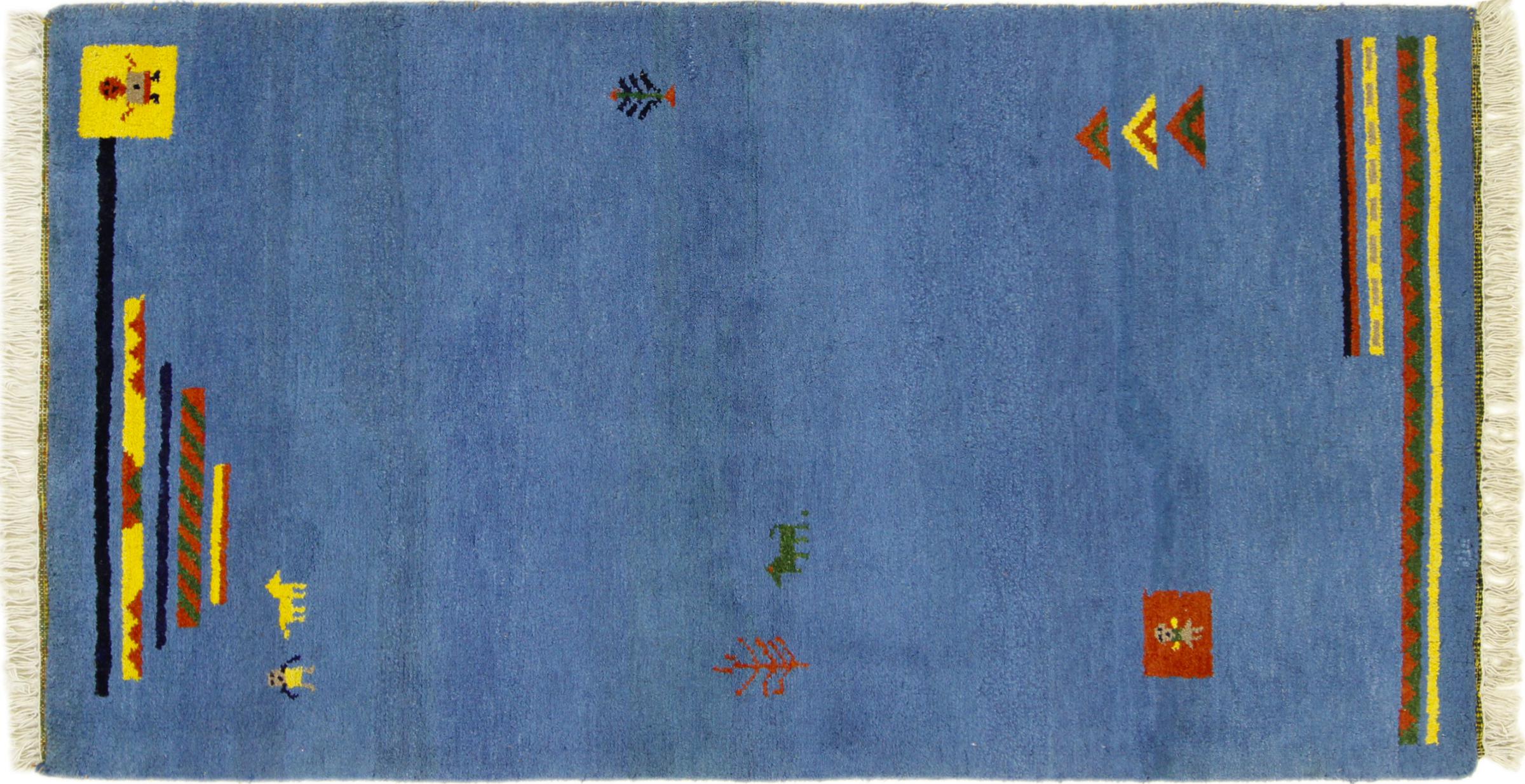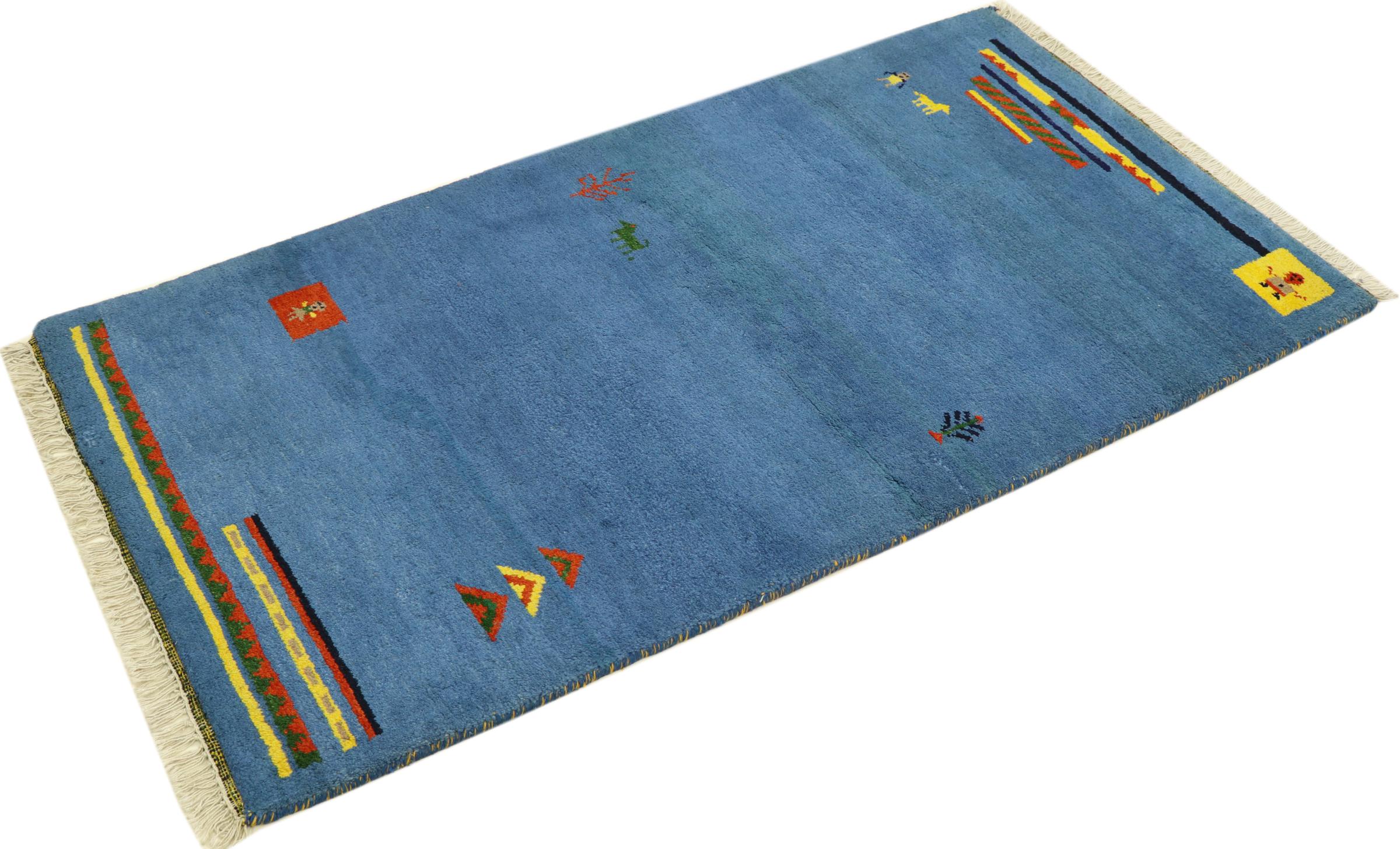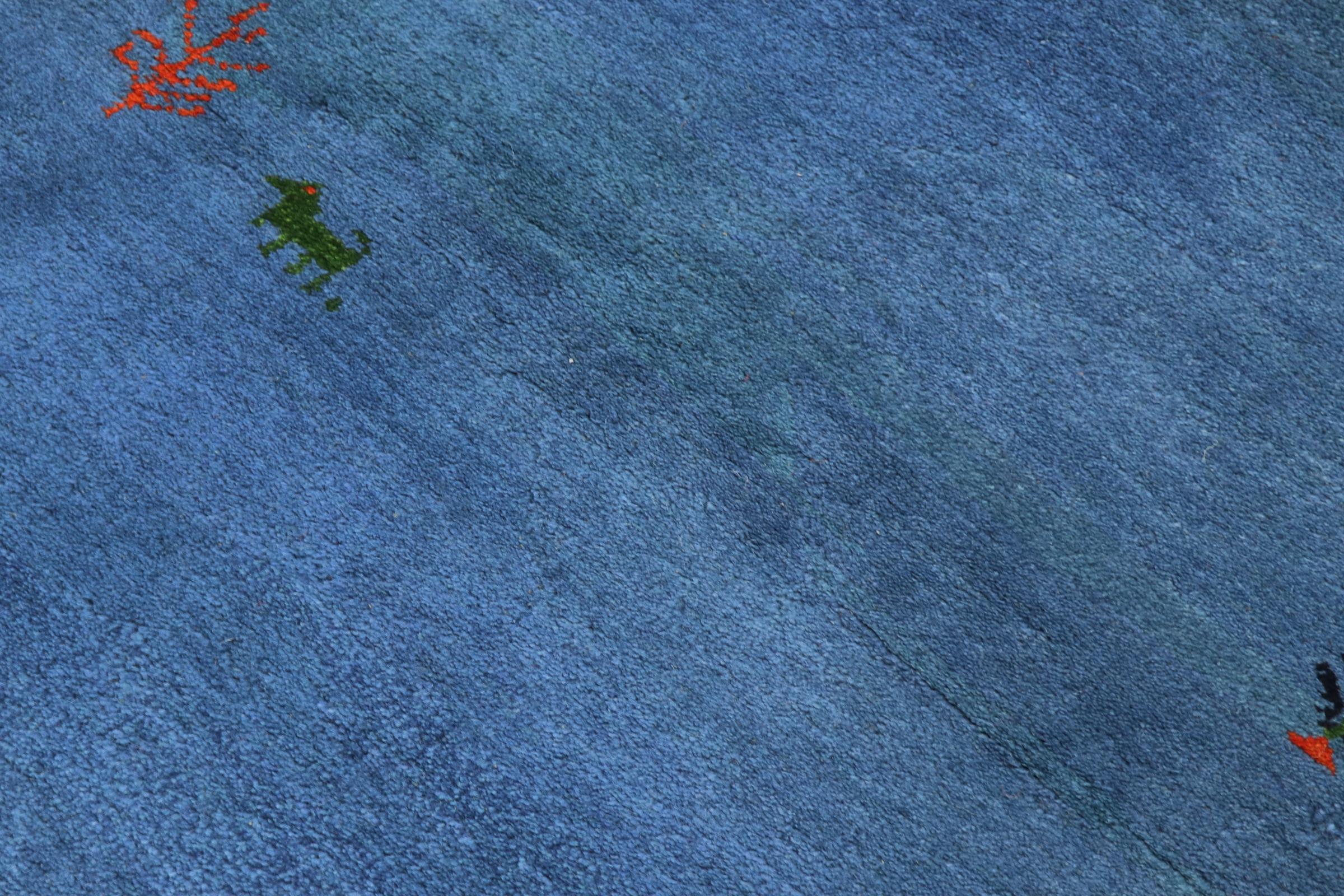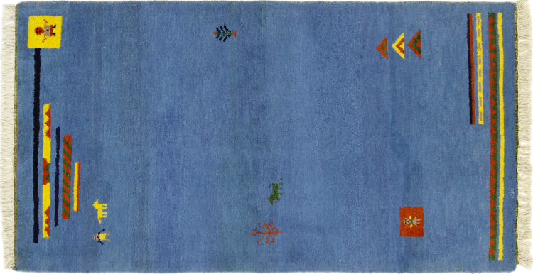 Esta hermosa alfombra de Gabbeh fue anudada a mano en la India. Las alfombras indias de Gabbeh están hechas de suave lana de oveja, son cómodas para los pies y tienen propiedades de aislamiento térmico. La mayoría de sus diseños son simples y modernos atemporales. Se inspiraron en los pueblos nómadas, que dejaban fluir en las alfombras motivos muy simples de su entorno. Las alfombras de Gabbeh de la India no se acercan mucho a la calidad de las de Gabbeh de Persia, pero tienen una muy buena relación precio-rendimiento. Por lo tanto, son perfectamente adecuadas como alfombras anudadas a mano para principiantes.