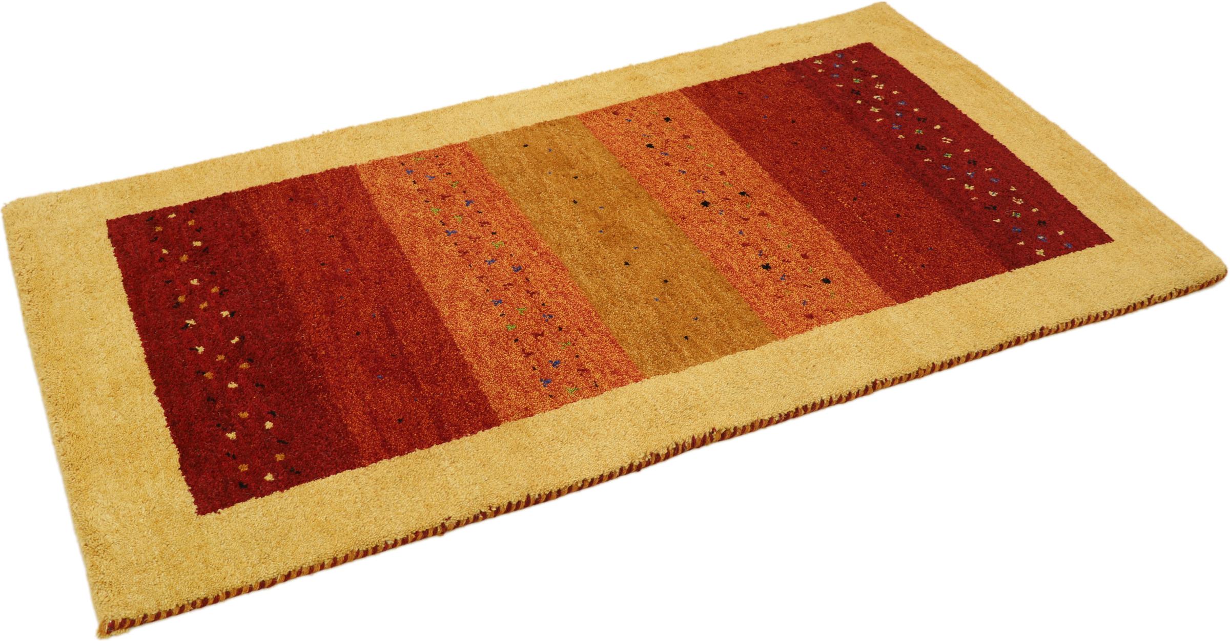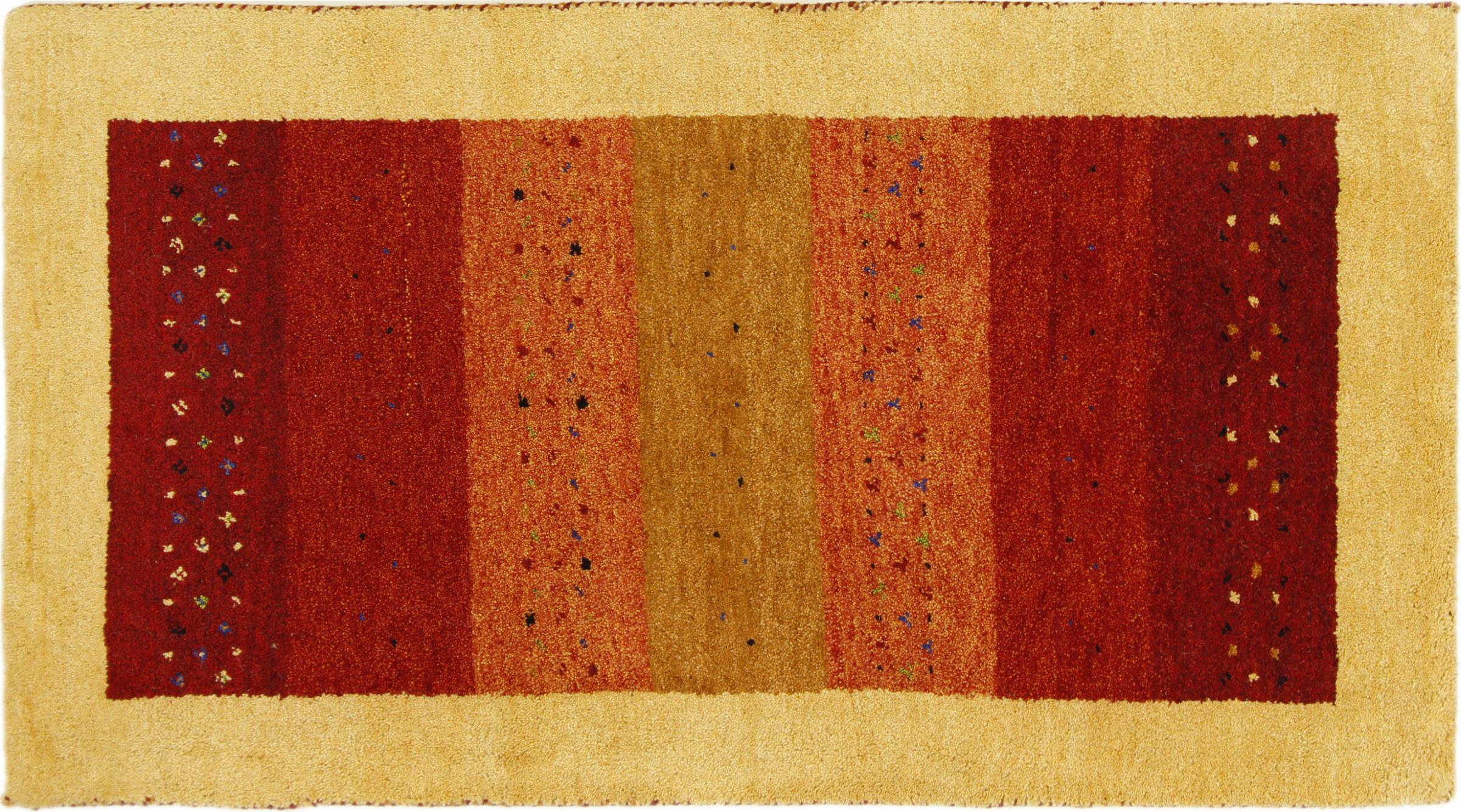 Esta hermosa alfombra de Gabbeh fue anudada a mano en la India. Las alfombras indias de Gabbeh están hechas de suave lana de oveja, son cómodas para los pies y tienen propiedades de aislamiento térmico. La mayoría de sus diseños son simples y modernos atemporales. Se inspiraron en los pueblos nómadas, que dejaban fluir en las alfombras motivos muy simples de su entorno. Las alfombras de Gabbeh de la India no se acercan mucho a la calidad de las de Gabbeh de Persia, pero tienen una muy buena relación precio-rendimiento. Por lo tanto, son perfectamente adecuadas como alfombras anudadas a mano para principiantes.