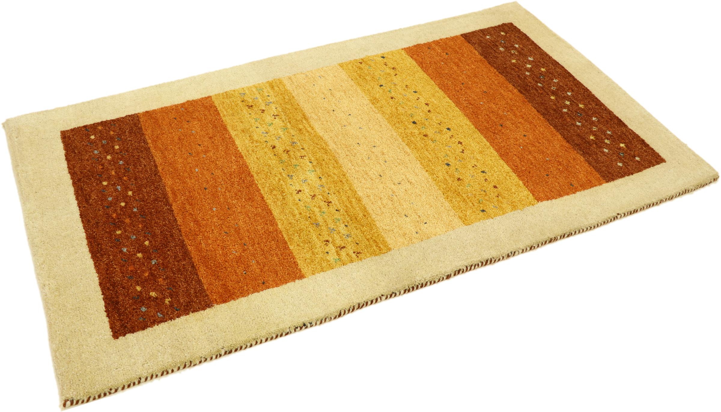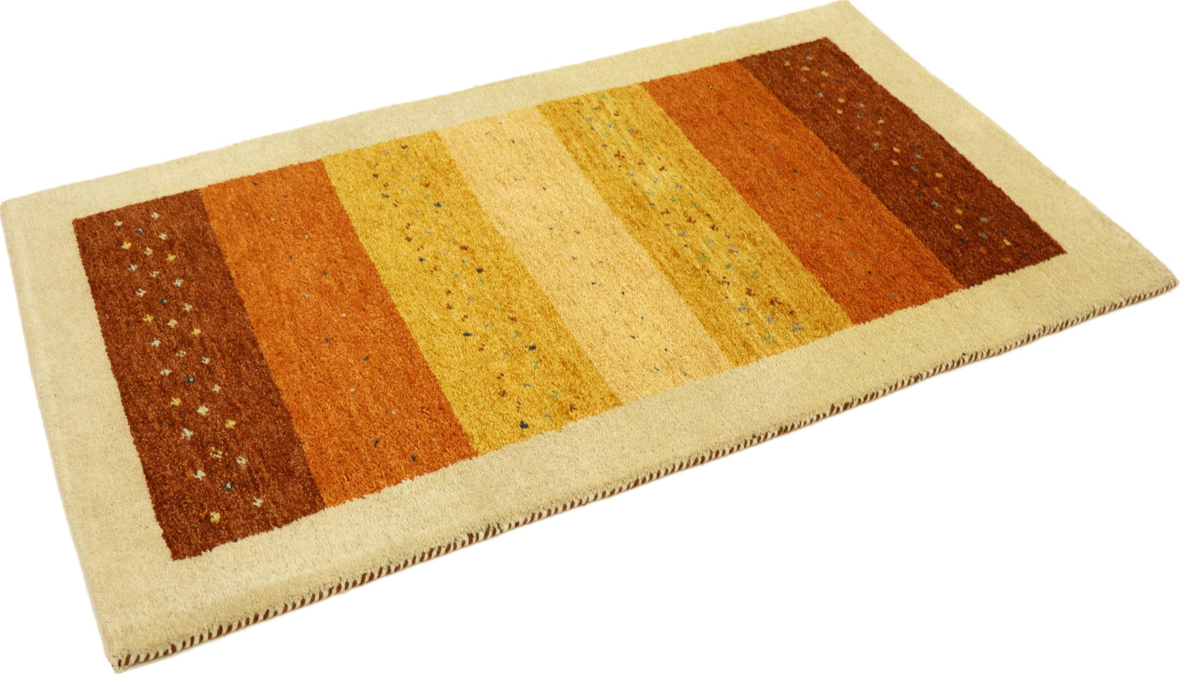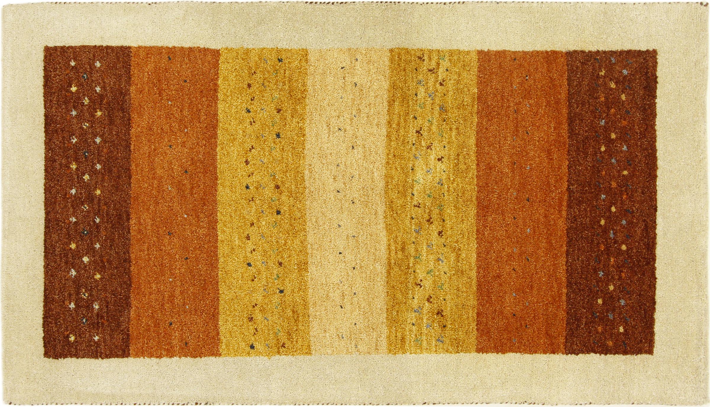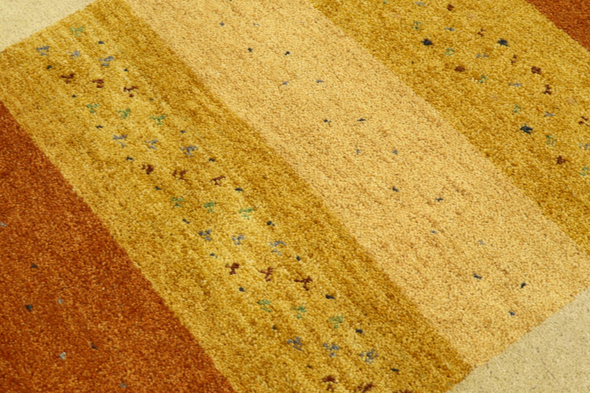 Esta hermosa alfombra de Gabbeh fue anudada a mano en la India. Las alfombras indias de Gabbeh están hechas de suave lana de oveja, son cómodas para los pies y tienen propiedades de aislamiento térmico. La mayoría de sus diseños son simples y modernos atemporales. Se inspiraron en los pueblos nómadas, que dejaban fluir en las alfombras motivos muy simples de su entorno. Las alfombras de Gabbeh de la India no se acercan mucho a la calidad de las de Gabbeh de Persia, pero tienen una muy buena relación precio-rendimiento. Por lo tanto, son perfectamente adecuadas como alfombras anudadas a mano para principiantes.