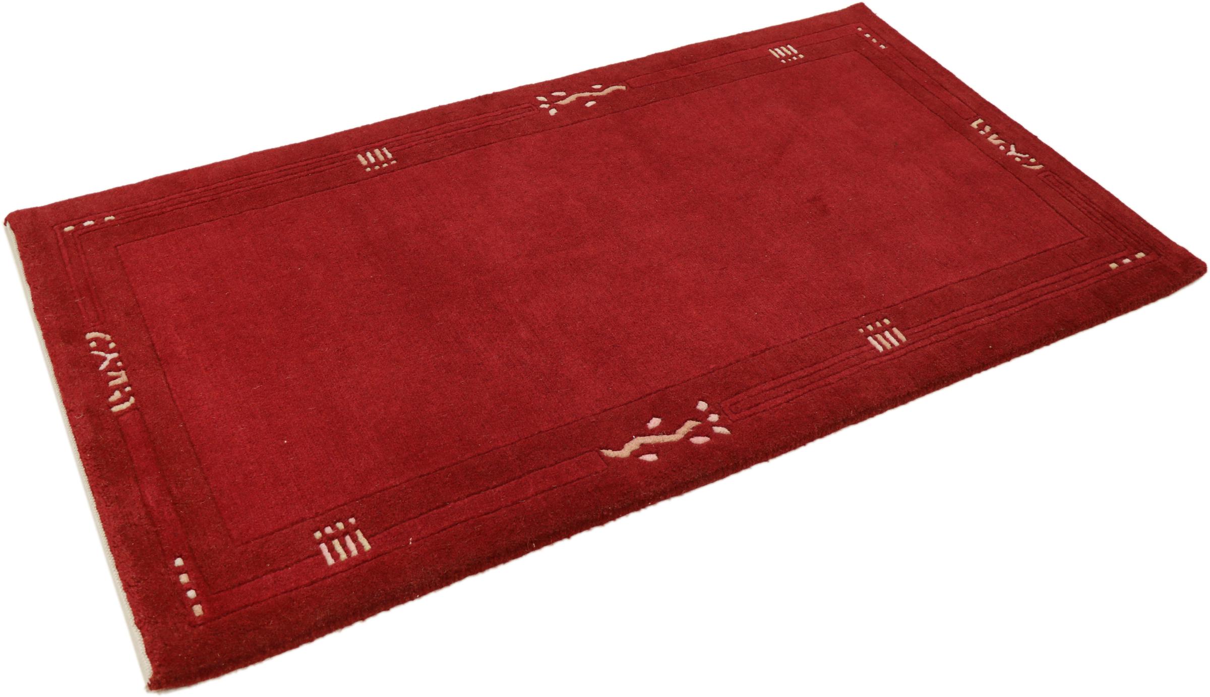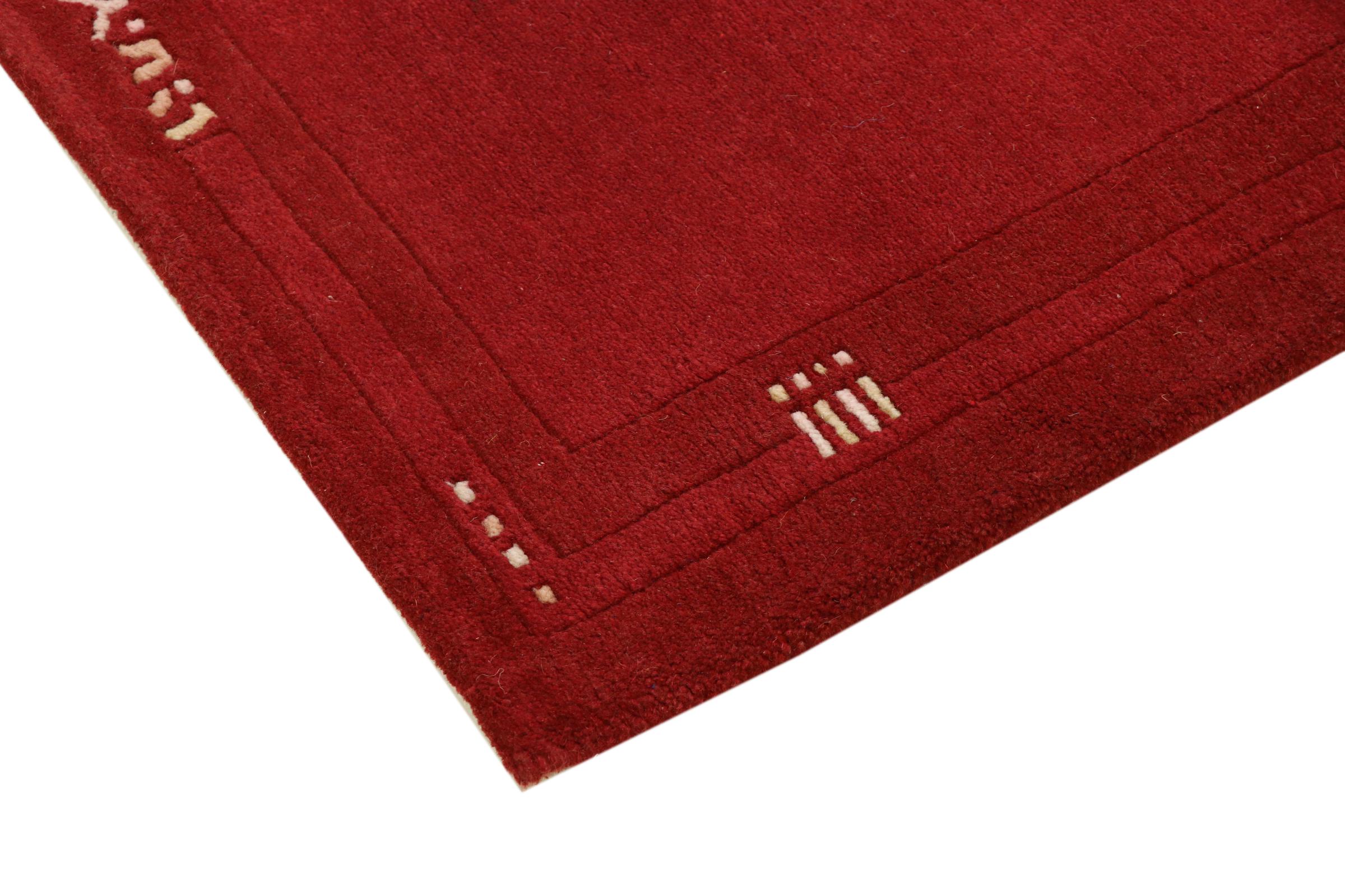 Esta hermosa alfombra de Gabbeh fue anudada a mano en la India. Las alfombras indias de Gabbeh están hechas de suave lana de oveja, son cómodas para los pies y tienen propiedades de aislamiento térmico. La mayoría de sus diseños son simples y modernos atemporales. Se inspiraron en los pueblos nómadas, que dejaban fluir en las alfombras motivos muy simples de su entorno. Las alfombras de Gabbeh de la India no se acercan mucho a la calidad de las de Gabbeh de Persia, pero tienen una muy buena relación precio-rendimiento. Por lo tanto, son perfectamente adecuadas como alfombras anudadas a mano para principiantes.
