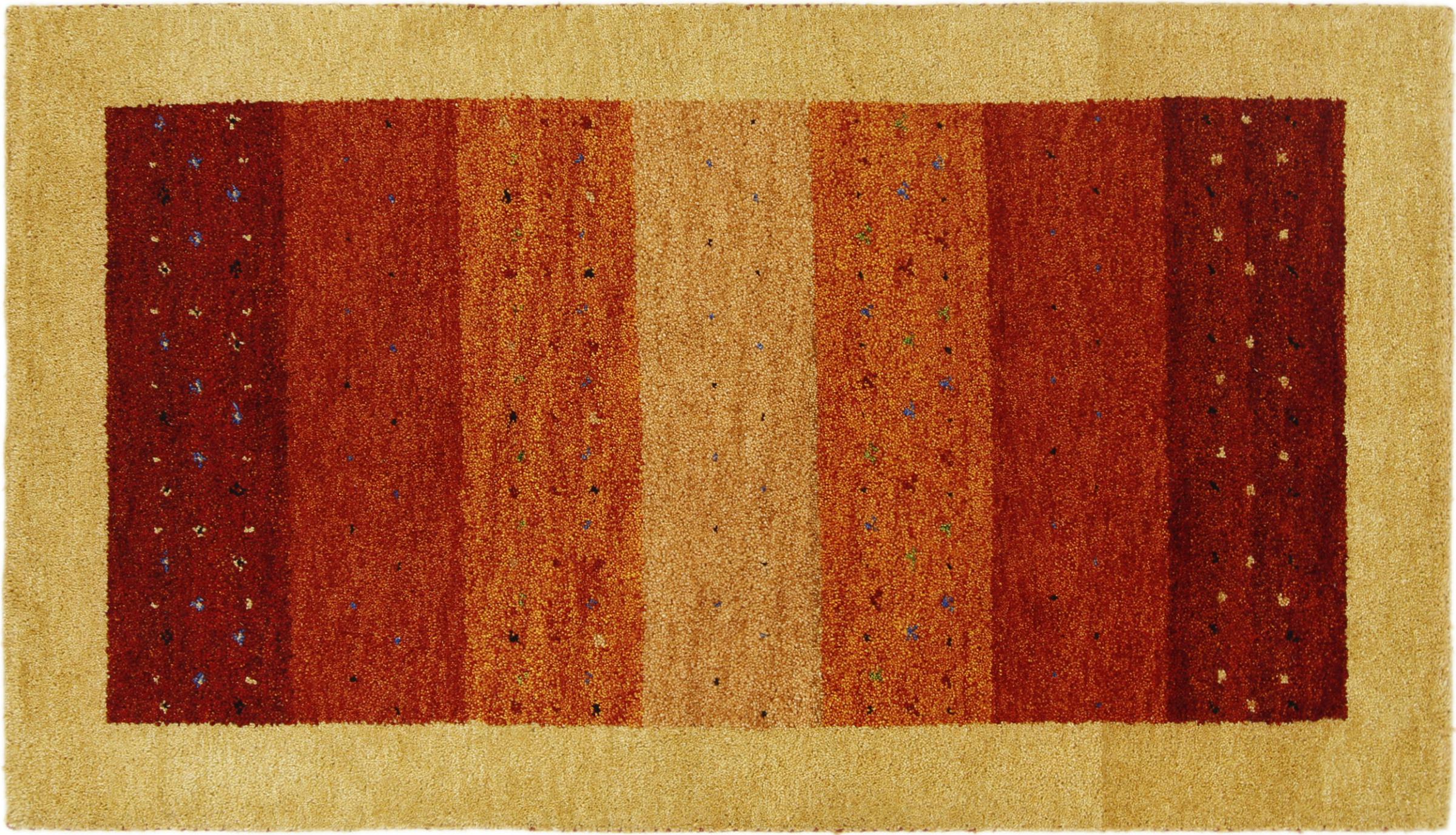 Esta hermosa alfombra de Gabbeh fue anudada a mano en la India. Las alfombras indias de Gabbeh están hechas de suave lana de oveja, son cómodas para los pies y tienen propiedades de aislamiento térmico. La mayoría de sus diseños son simples y modernos atemporales. Se inspiraron en los pueblos nómadas, que dejaban fluir en las alfombras motivos muy simples de su entorno. Las alfombras de Gabbeh de la India no se acercan mucho a la calidad de las de Gabbeh de Persia, pero tienen una muy buena relación precio-rendimiento. Por lo tanto, son perfectamente adecuadas como alfombras anudadas a mano para principiantes.