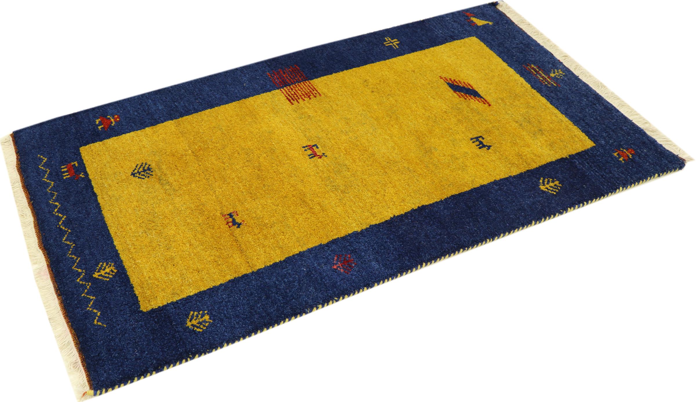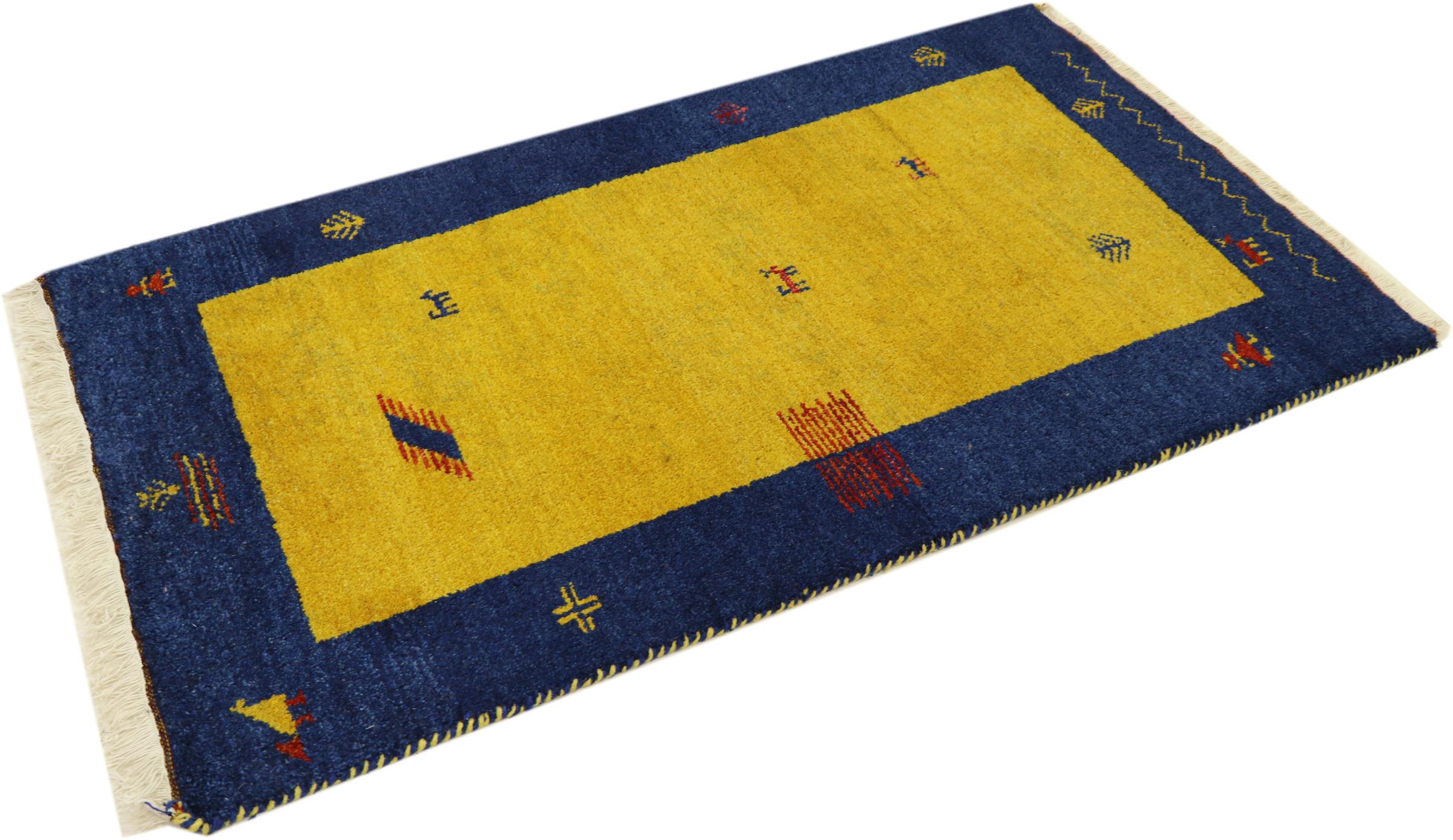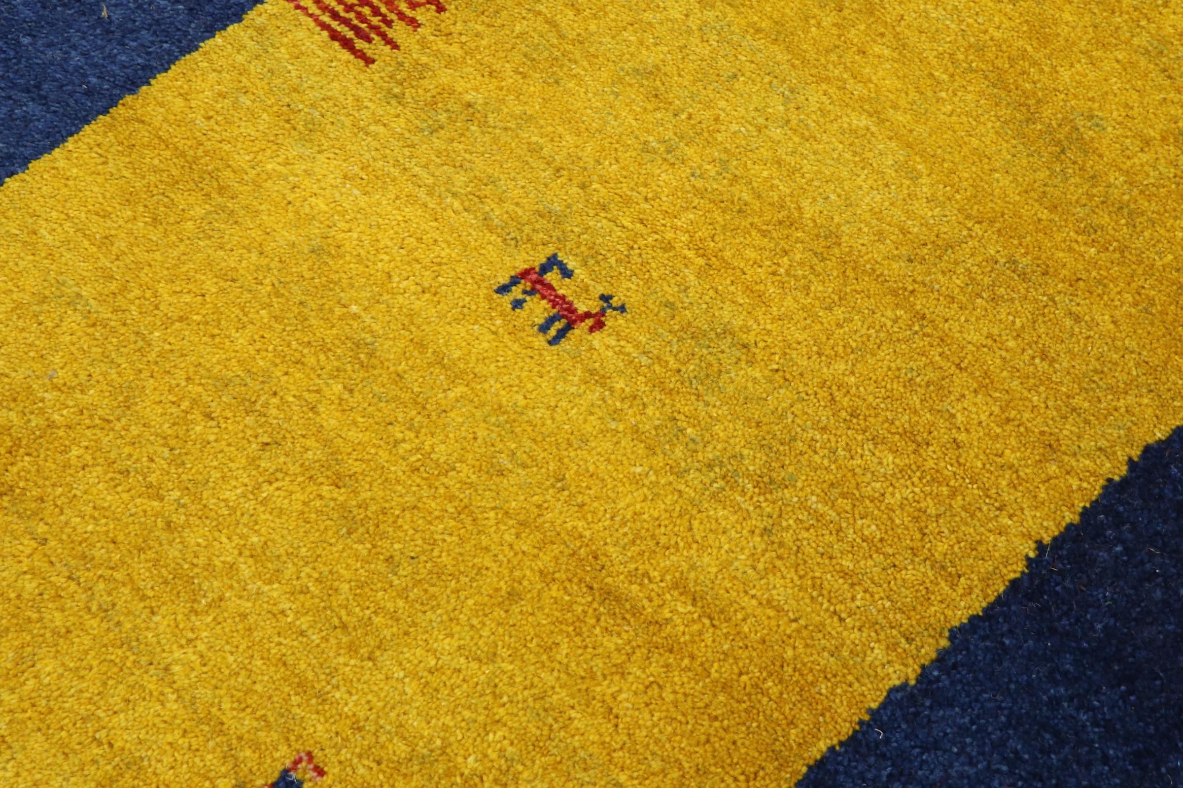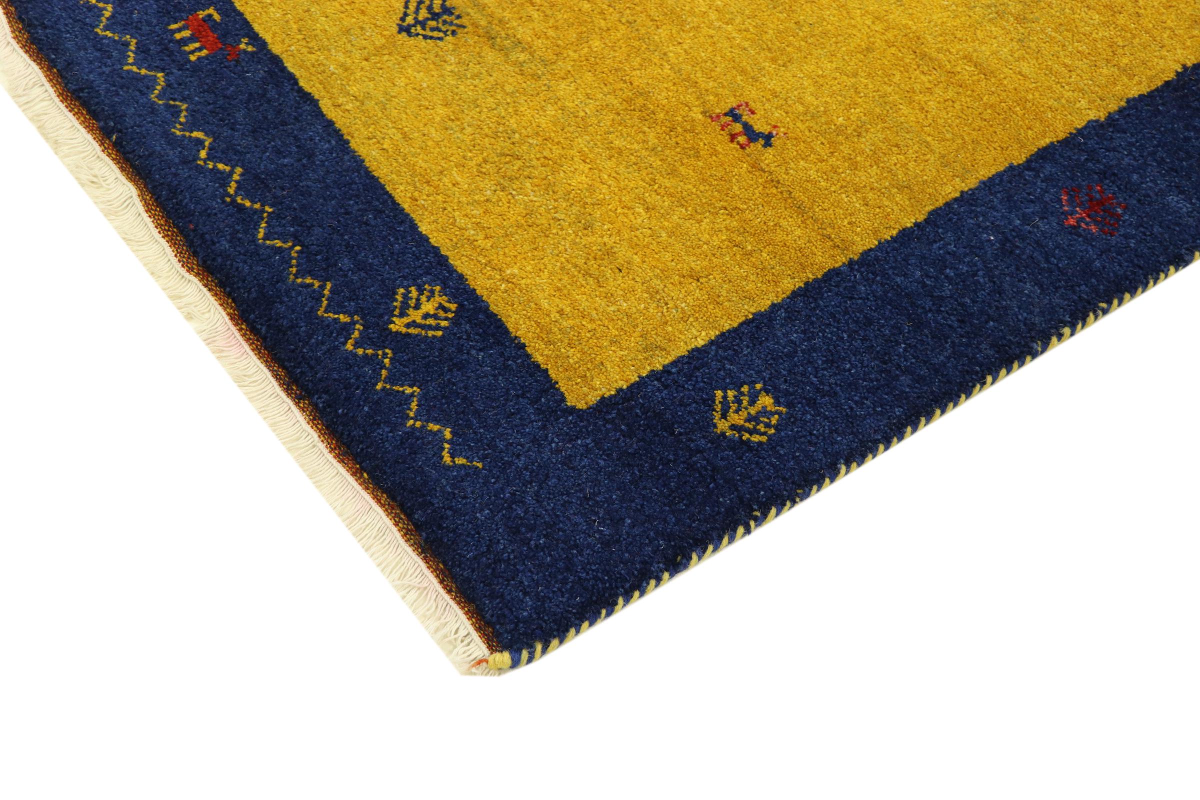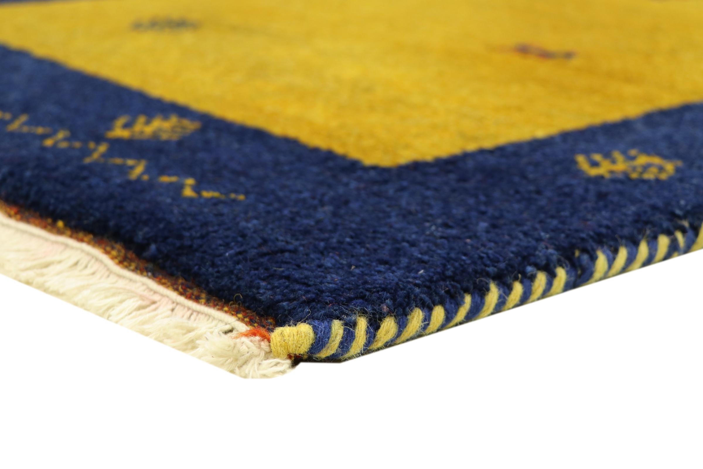 Esta hermosa alfombra de Gabbeh fue anudada a mano en la India. Las alfombras indias de Gabbeh están hechas de suave lana de oveja, son cómodas para los pies y tienen propiedades de aislamiento térmico. La mayoría de sus diseños son simples y modernos atemporales. Se inspiraron en los pueblos nómadas, que dejaban fluir en las alfombras motivos muy simples de su entorno. Las alfombras de Gabbeh de la India no se acercan mucho a la calidad de las de Gabbeh de Persia, pero tienen una muy buena relación precio-rendimiento. Por lo tanto, son perfectamente adecuadas como alfombras anudadas a mano para principiantes.