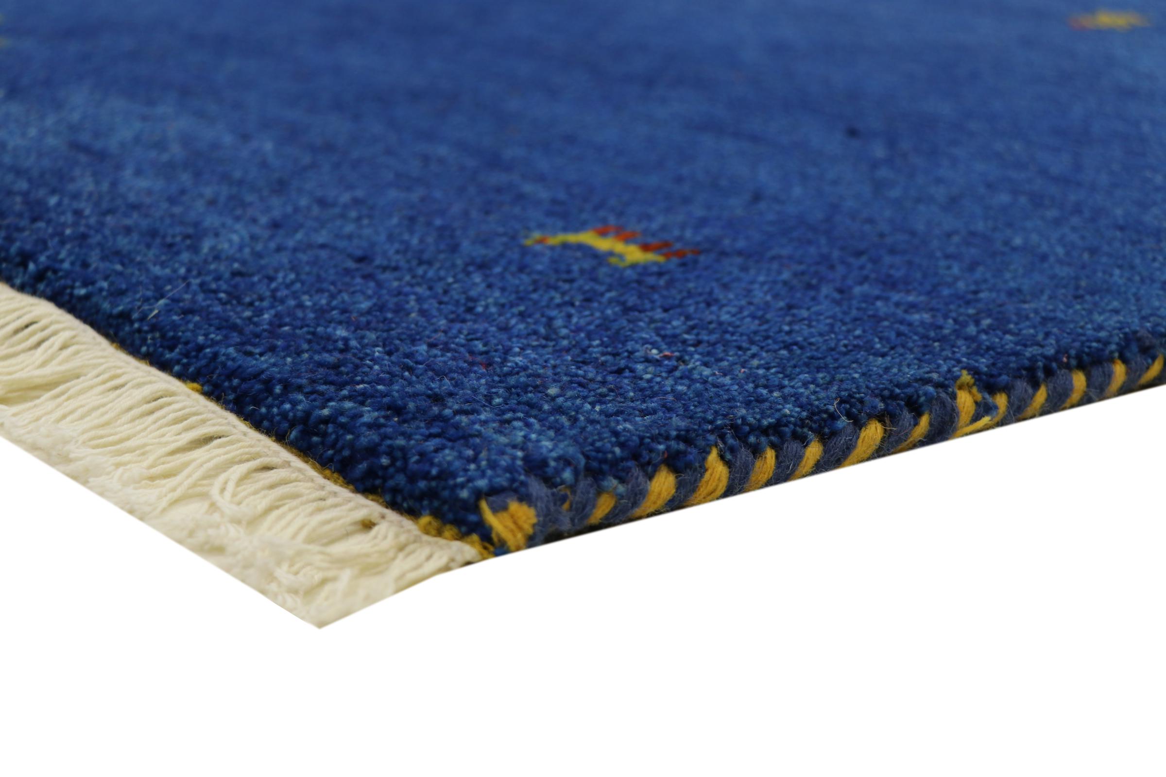 Esta hermosa alfombra de Gabbeh fue anudada a mano en la India. Las alfombras indias de Gabbeh están hechas de suave lana de oveja, son cómodas para los pies y tienen propiedades de aislamiento térmico. La mayoría de sus diseños son simples y modernos atemporales. Se inspiraron en los pueblos nómadas, que dejaban fluir en las alfombras motivos muy simples de su entorno. Las alfombras de Gabbeh de la India no se acercan mucho a la calidad de las de Gabbeh de Persia, pero tienen una muy buena relación precio-rendimiento. Por lo tanto, son perfectamente adecuadas como alfombras anudadas a mano para principiantes.