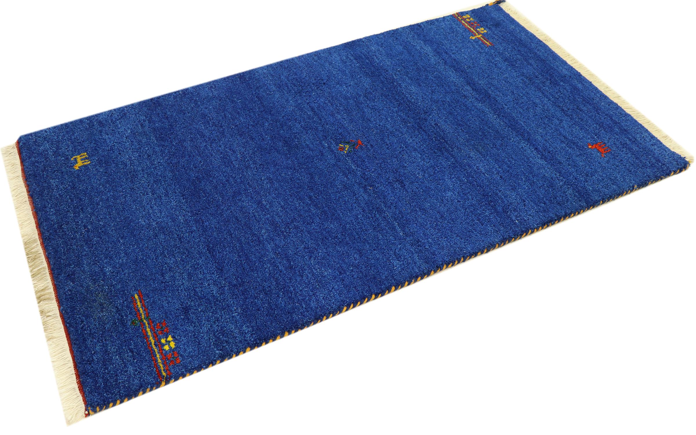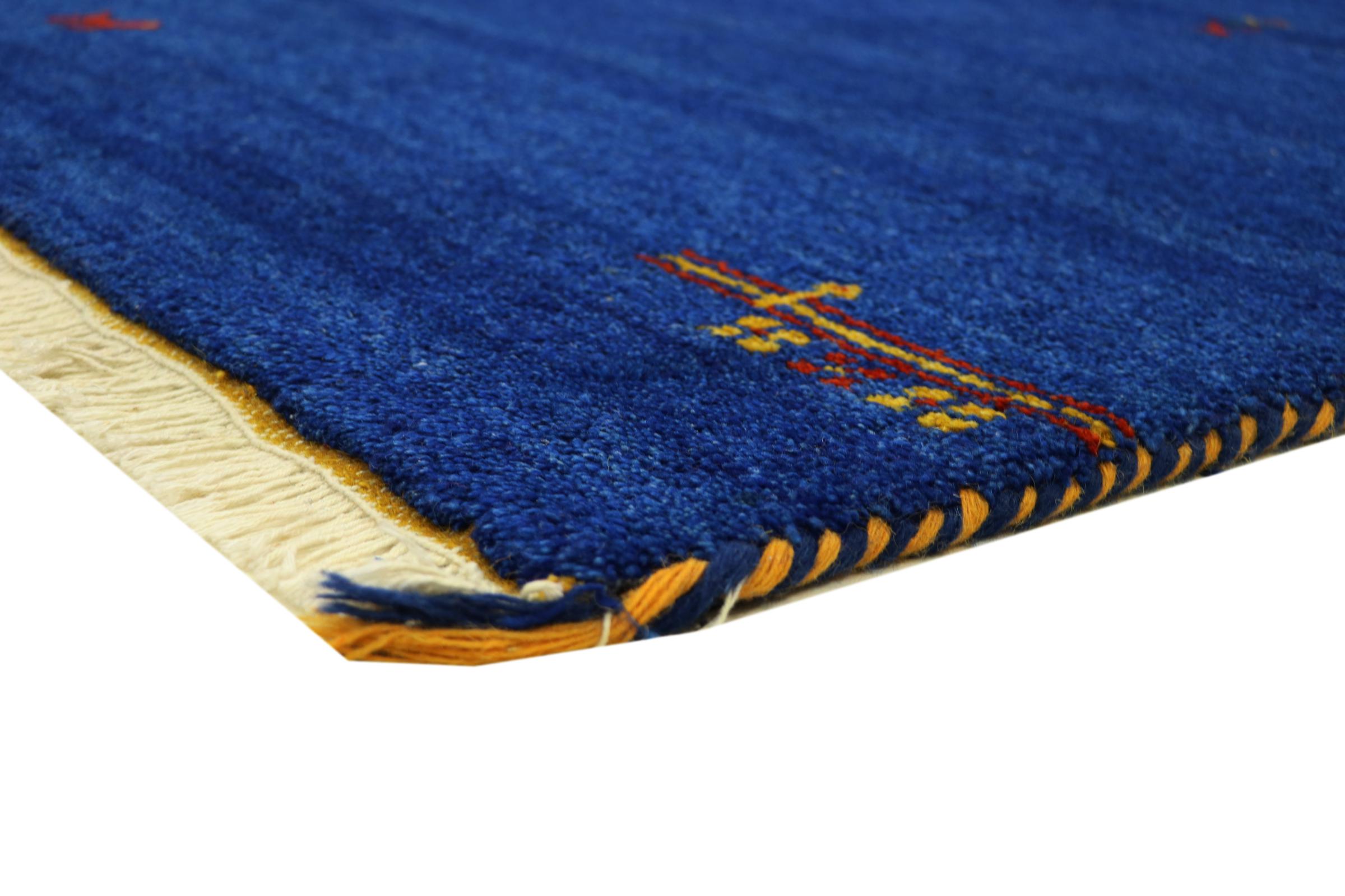 Esta hermosa alfombra de Gabbeh fue anudada a mano en la India. Las alfombras indias de Gabbeh están hechas de suave lana de oveja, son cómodas para los pies y tienen propiedades de aislamiento térmico. La mayoría de sus diseños son simples y modernos atemporales. Se inspiraron en los pueblos nómadas, que dejaban fluir en las alfombras motivos muy simples de su entorno. Las alfombras de Gabbeh de la India no se acercan mucho a la calidad de las de Gabbeh de Persia, pero tienen una muy buena relación precio-rendimiento. Por lo tanto, son perfectamente adecuadas como alfombras anudadas a mano para principiantes.