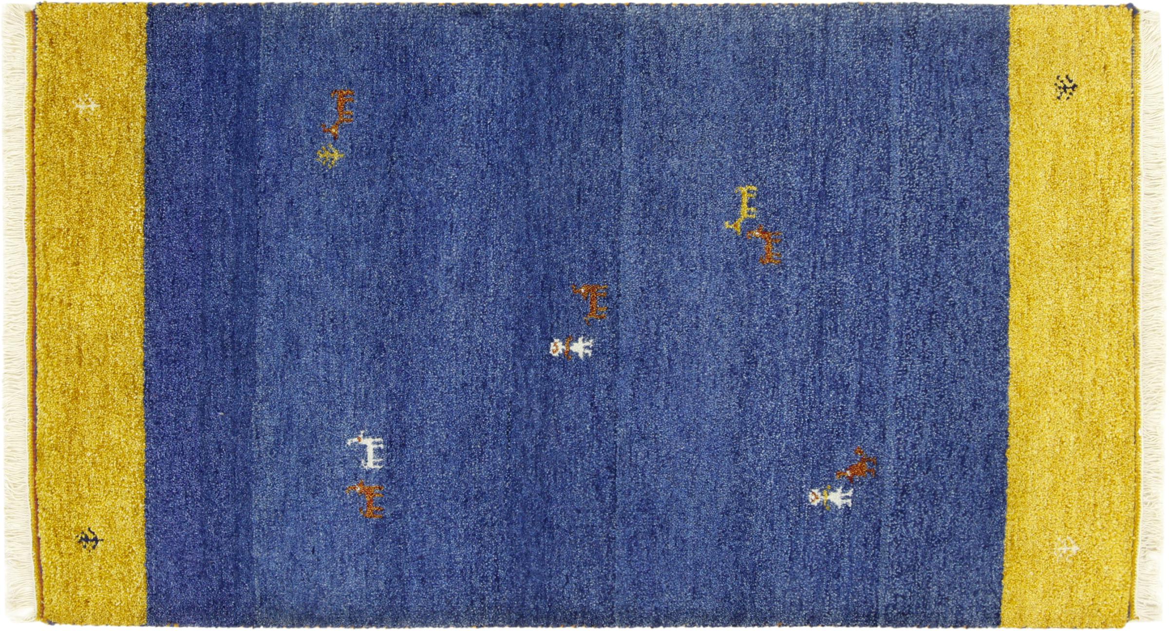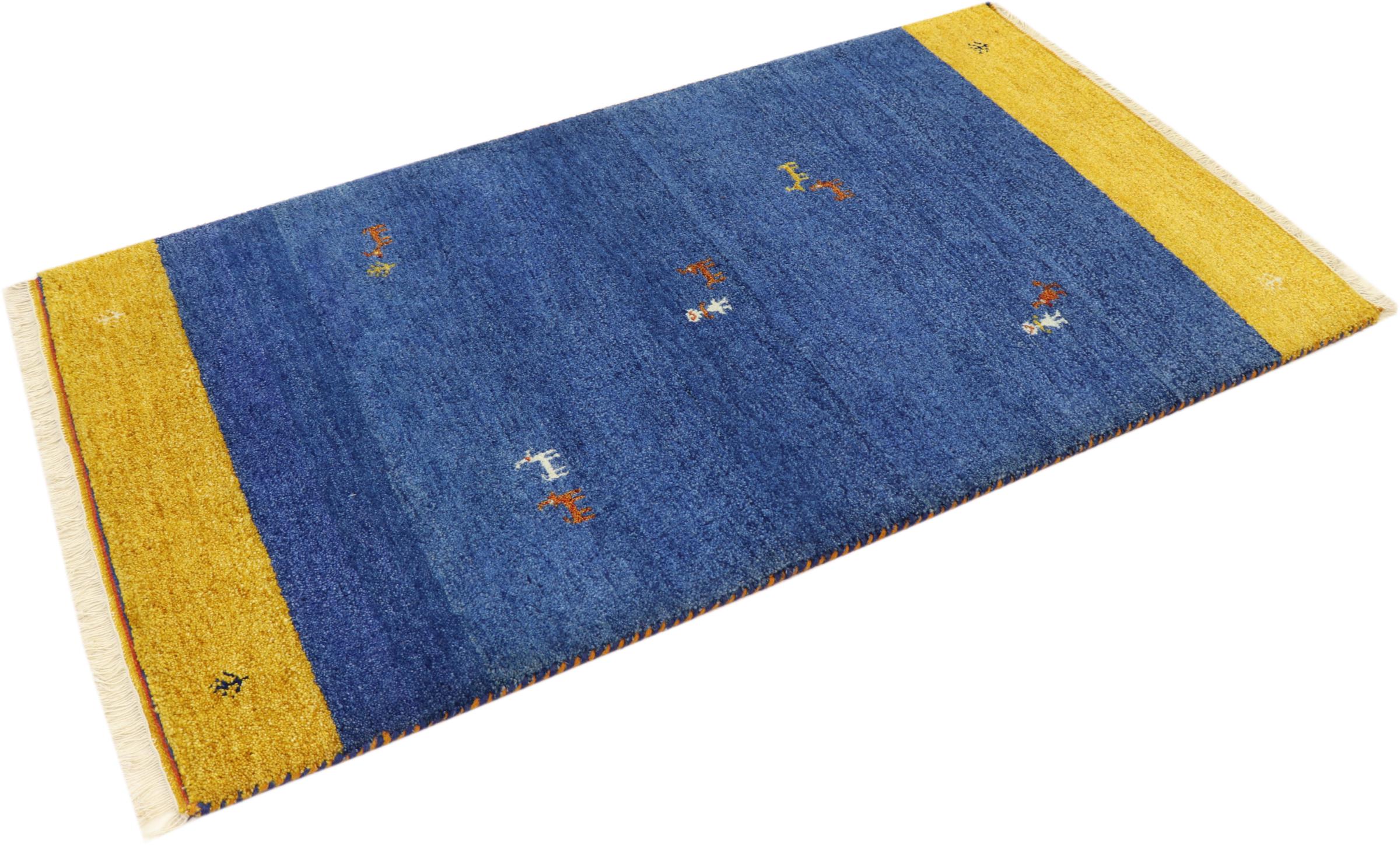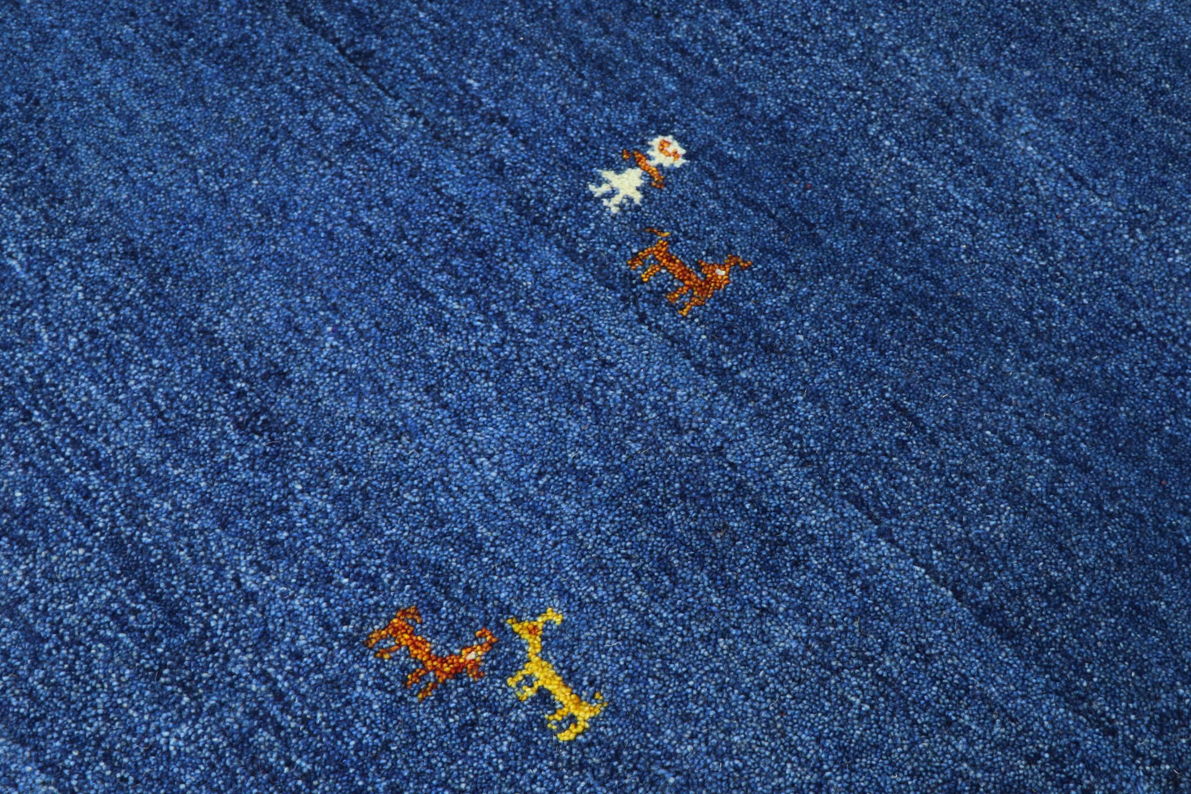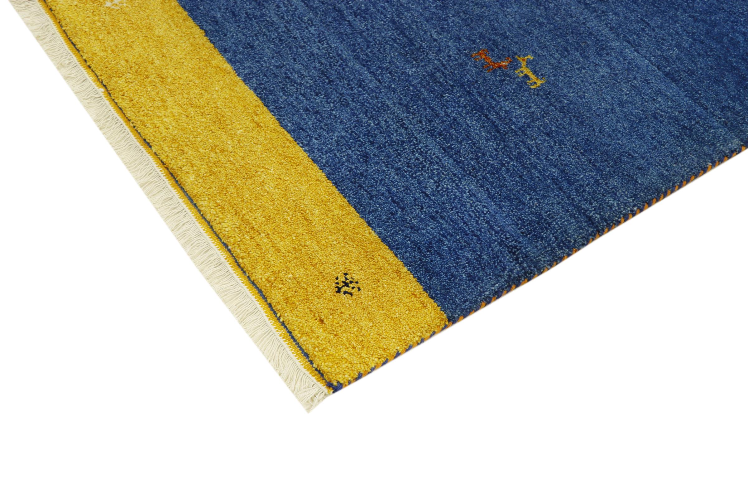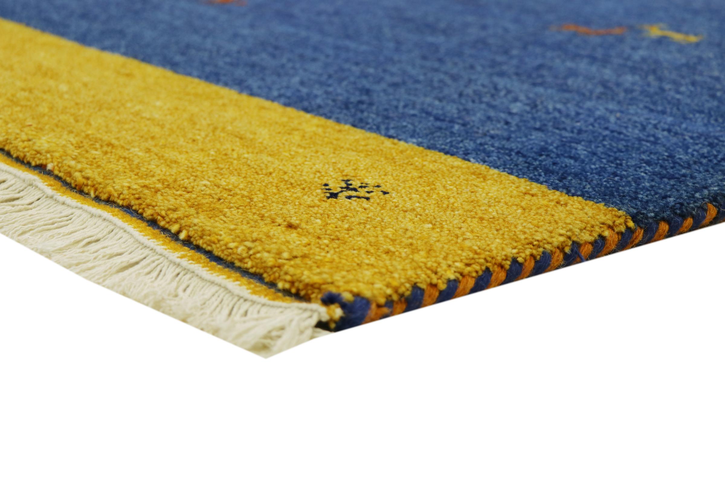 Esta hermosa alfombra de Gabbeh fue anudada a mano en la India. Las alfombras indias de Gabbeh están hechas de suave lana de oveja, son cómodas para los pies y tienen propiedades de aislamiento térmico. La mayoría de sus diseños son simples y modernos atemporales. Se inspiraron en los pueblos nómadas, que dejaban fluir en las alfombras motivos muy simples de su entorno. Las alfombras de Gabbeh de la India no se acercan mucho a la calidad de las de Gabbeh de Persia, pero tienen una muy buena relación precio-rendimiento. Por lo tanto, son perfectamente adecuadas como alfombras anudadas a mano para principiantes.