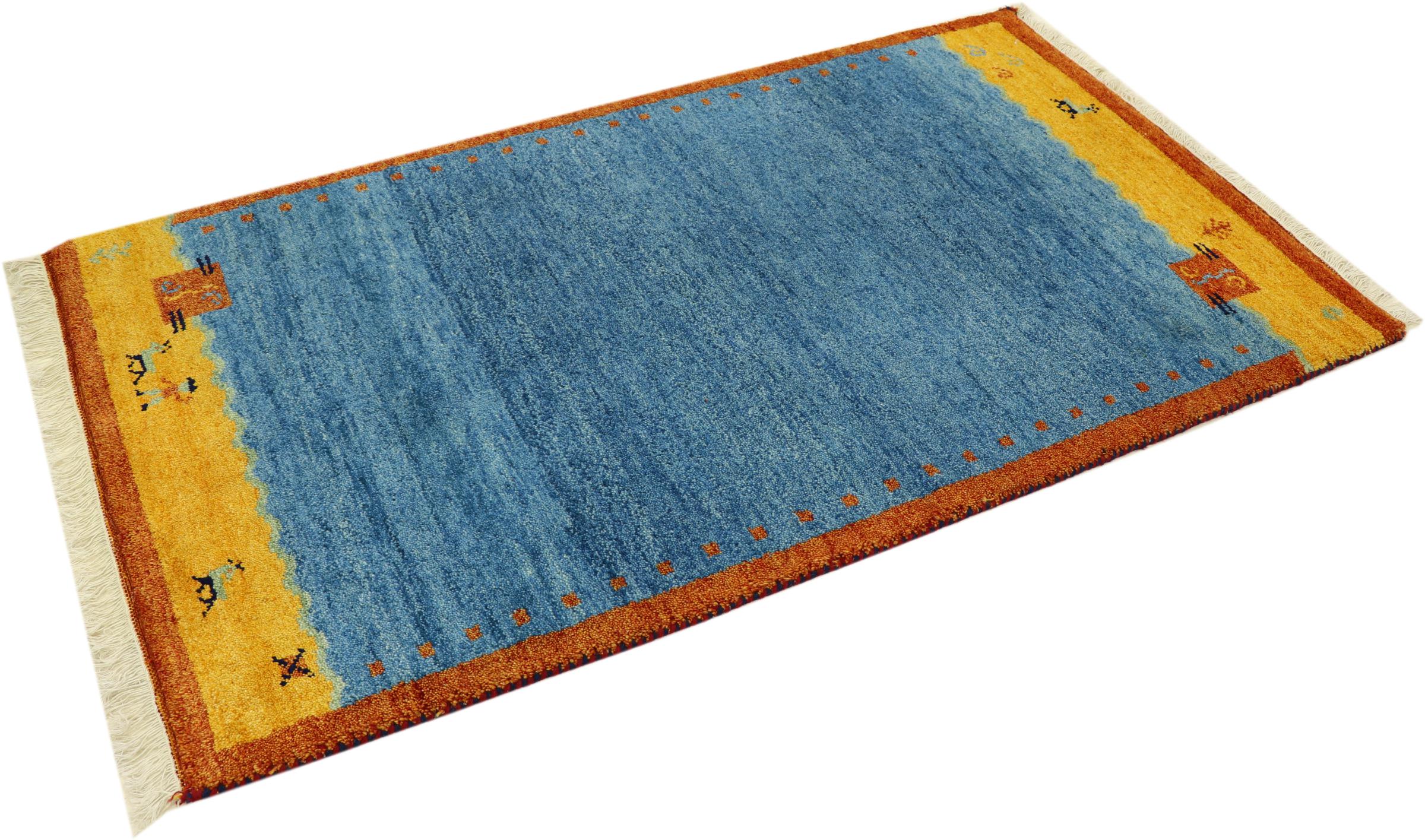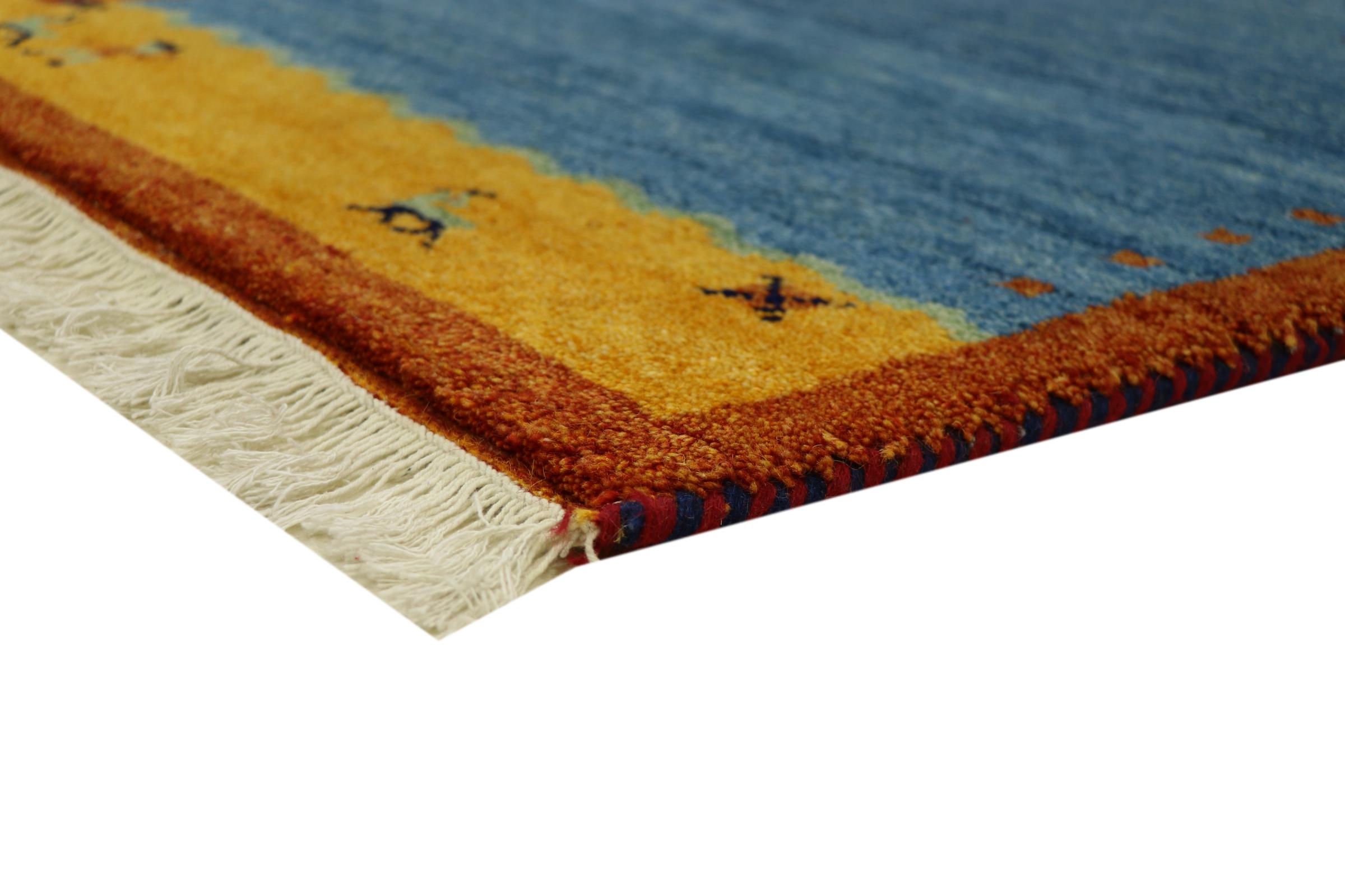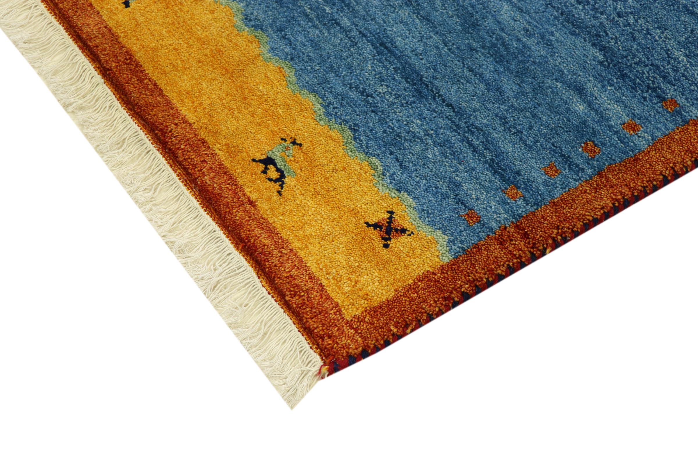 Esta hermosa alfombra de Gabbeh fue anudada a mano en la India. Las alfombras indias de Gabbeh están hechas de suave lana de oveja, son cómodas para los pies y tienen propiedades de aislamiento térmico. La mayoría de sus diseños son simples y modernos atemporales. Se inspiraron en los pueblos nómadas, que dejaban fluir en las alfombras motivos muy simples de su entorno. Las alfombras de Gabbeh de la India no se acercan mucho a la calidad de las de Gabbeh de Persia, pero tienen una muy buena relación precio-rendimiento. Por lo tanto, son perfectamente adecuadas como alfombras anudadas a mano para principiantes.