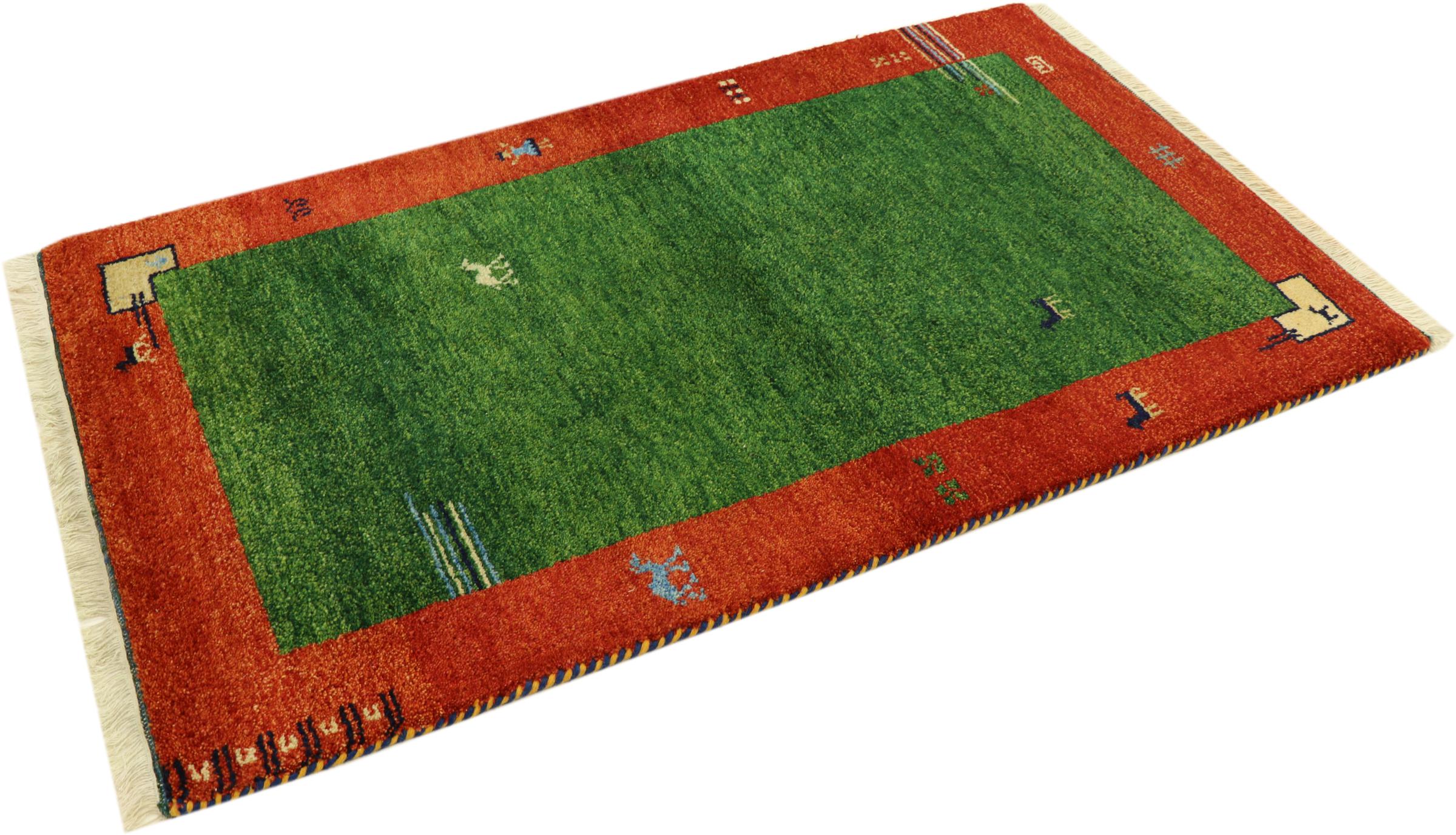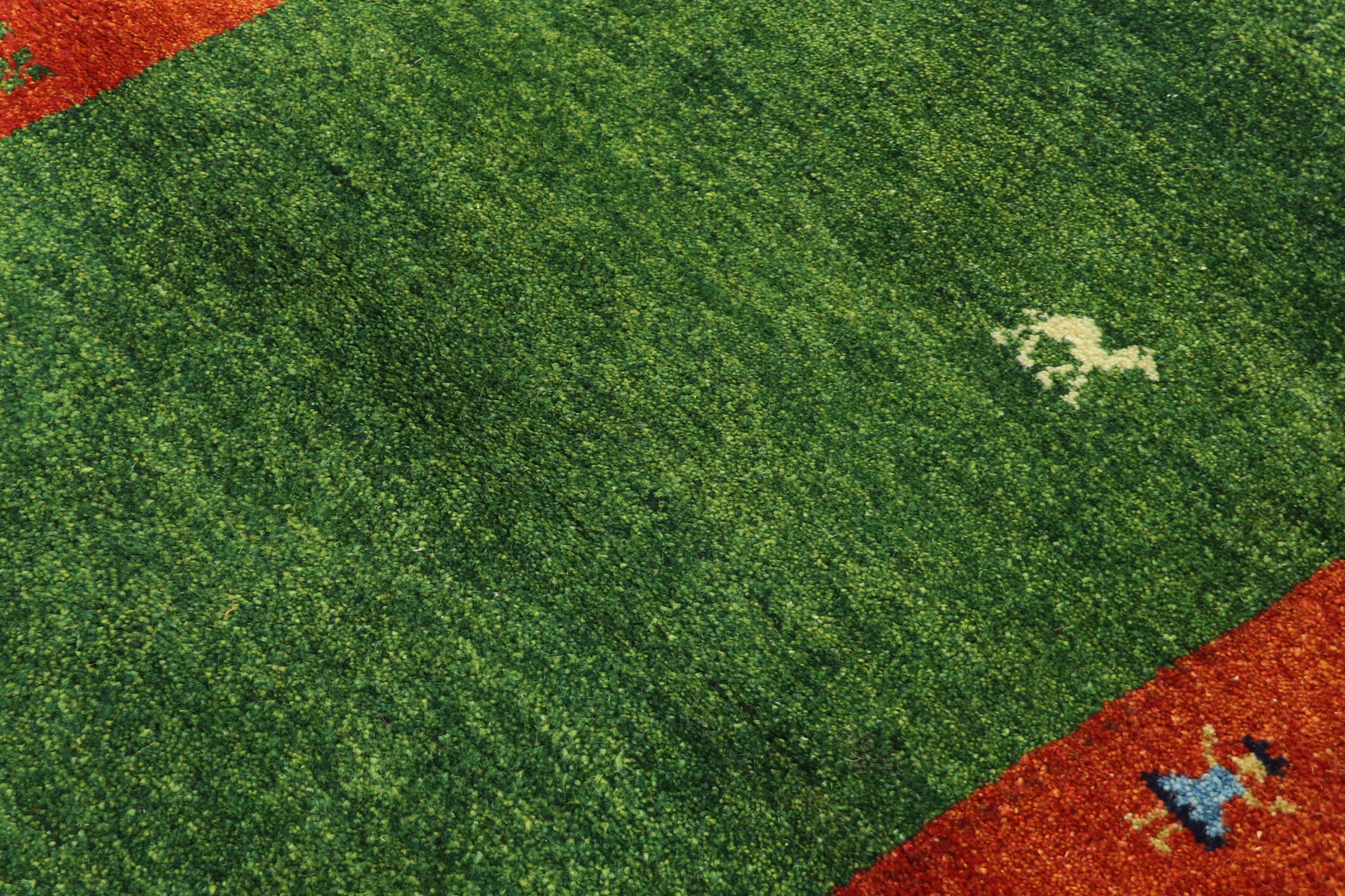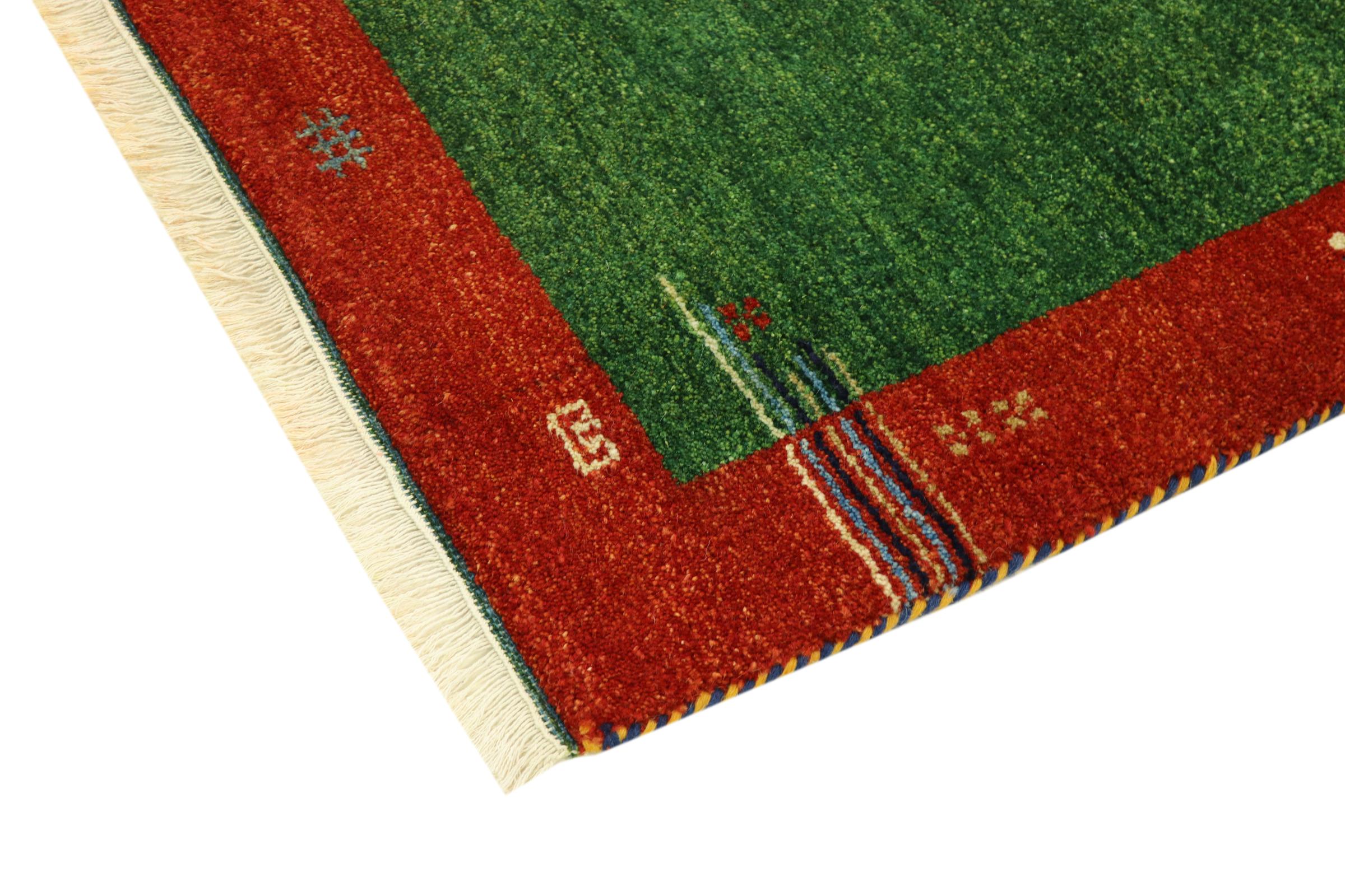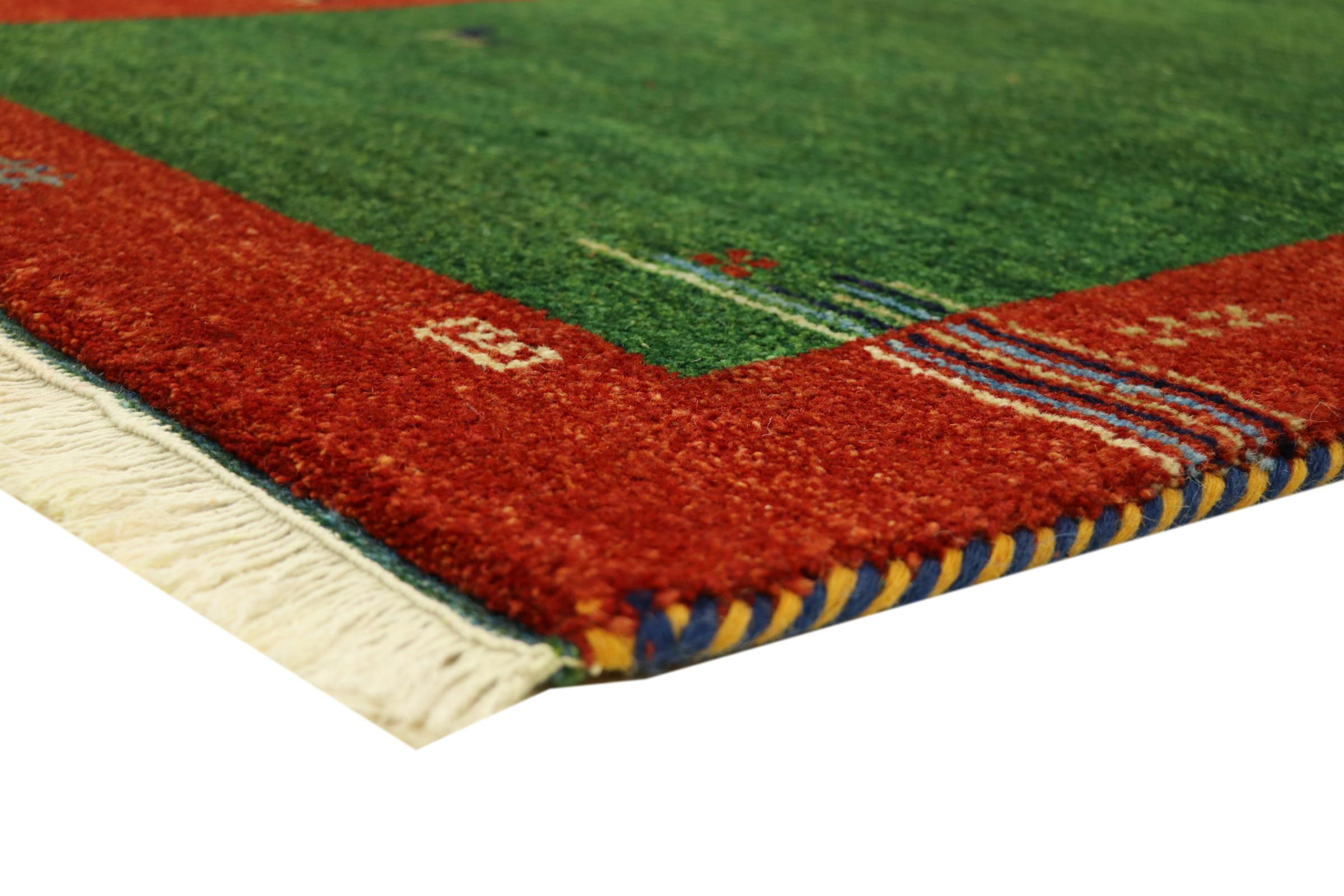 Esta hermosa alfombra de Gabbeh fue anudada a mano en la India. Las alfombras indias de Gabbeh están hechas de suave lana de oveja, son cómodas para los pies y tienen propiedades de aislamiento térmico. La mayoría de sus diseños son simples y modernos atemporales. Se inspiraron en los pueblos nómadas, que dejaban fluir en las alfombras motivos muy simples de su entorno. Las alfombras de Gabbeh de la India no se acercan mucho a la calidad de las de Gabbeh de Persia, pero tienen una muy buena relación precio-rendimiento. Por lo tanto, son perfectamente adecuadas como alfombras anudadas a mano para principiantes.