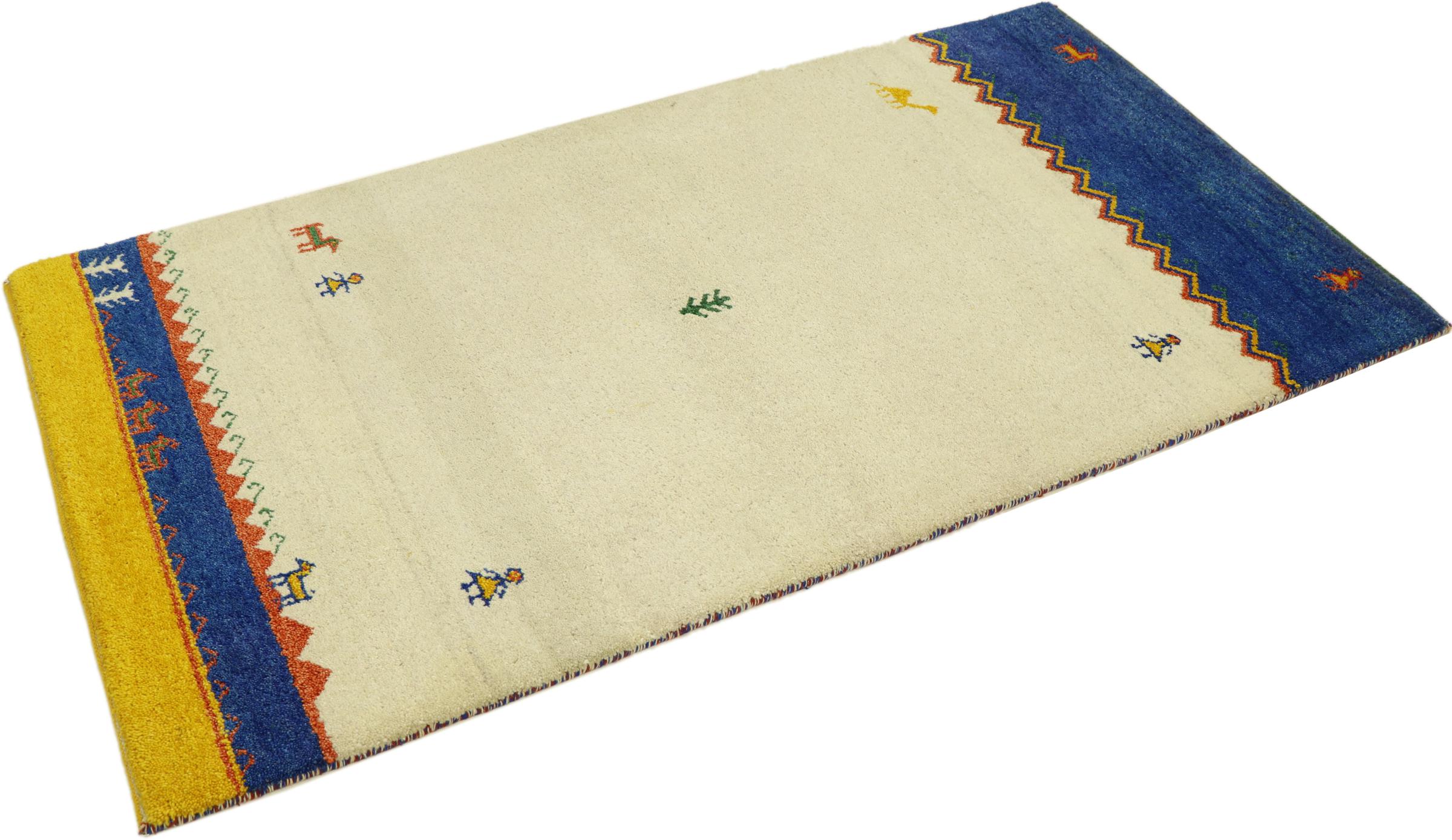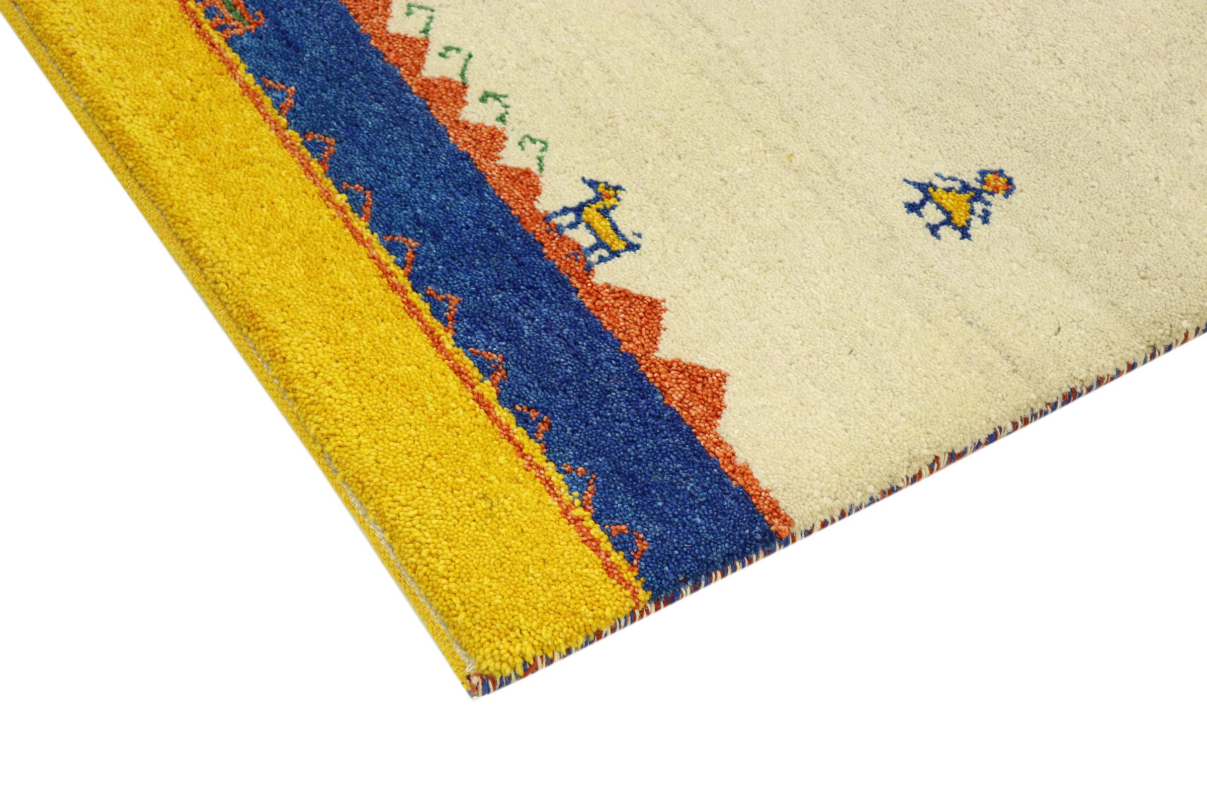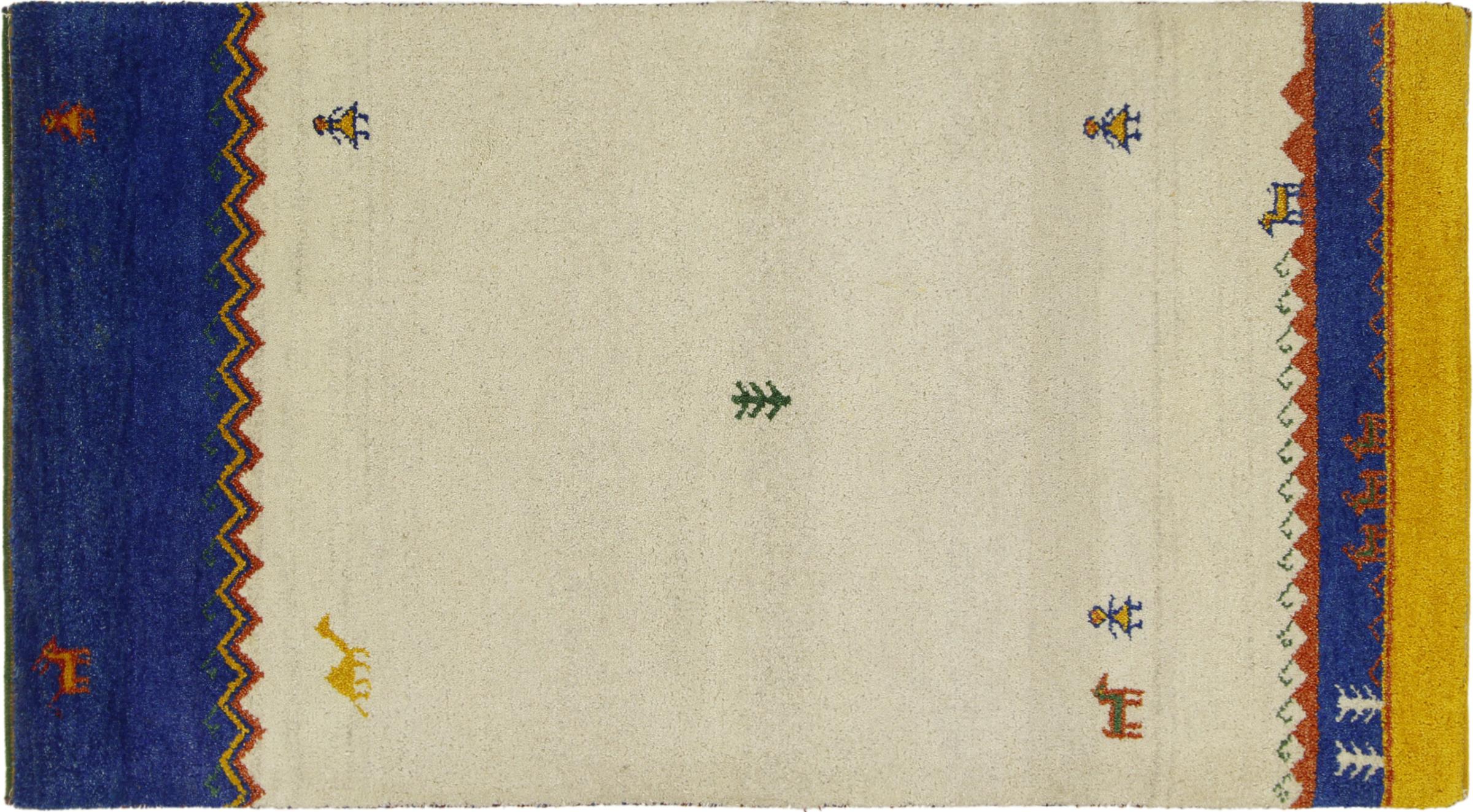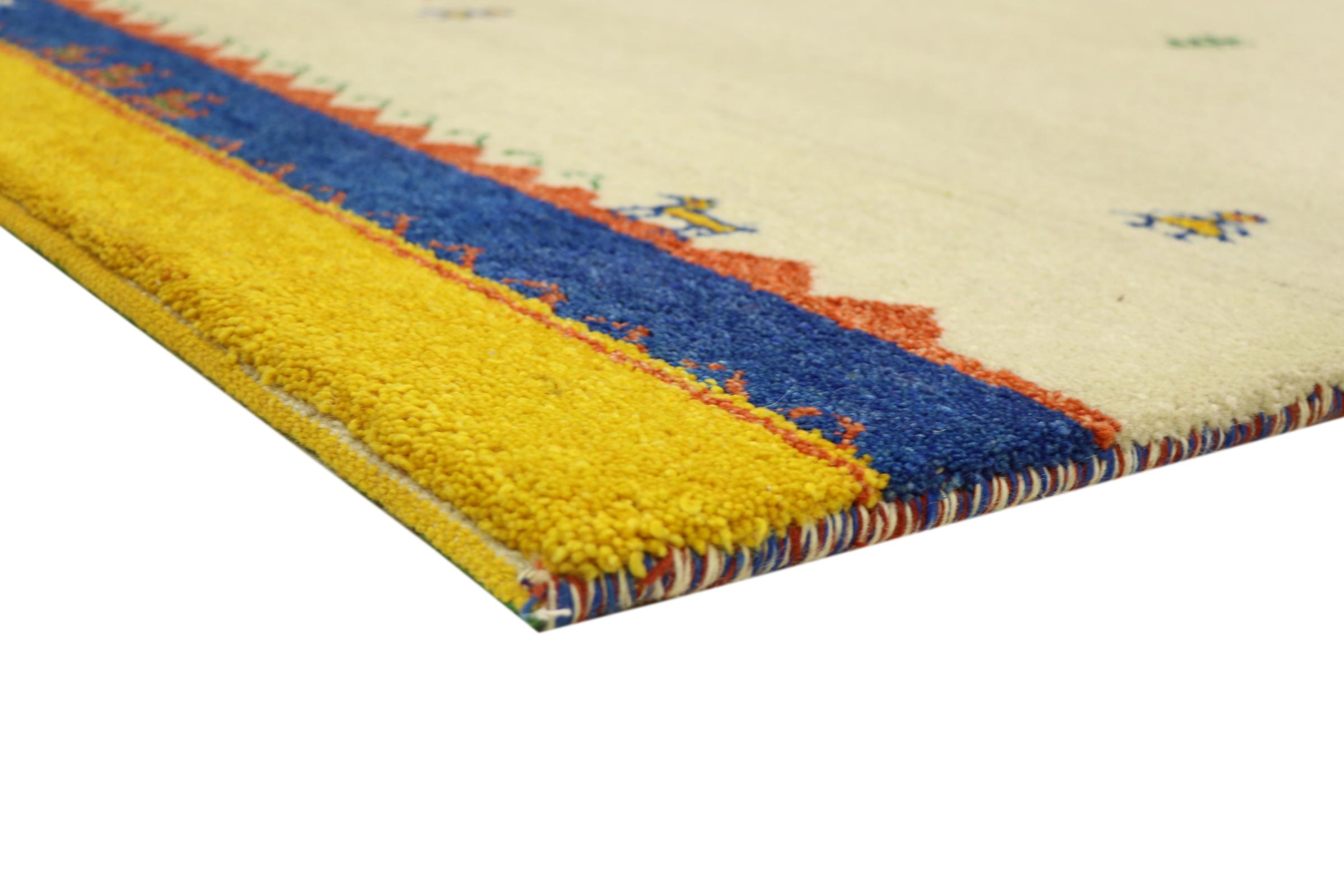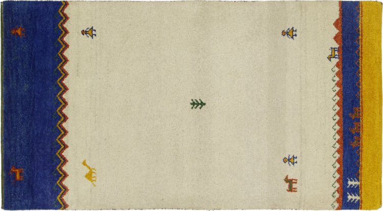 Esta hermosa alfombra de Gabbeh fue anudada a mano en la India. Las alfombras indias de Gabbeh están hechas de suave lana de oveja, son cómodas para los pies y tienen propiedades de aislamiento térmico. La mayoría de sus diseños son simples y modernos atemporales. Se inspiraron en los pueblos nómadas, que dejaban fluir en las alfombras motivos muy simples de su entorno. Las alfombras de Gabbeh de la India no se acercan mucho a la calidad de las de Gabbeh de Persia, pero tienen una muy buena relación precio-rendimiento. Por lo tanto, son perfectamente adecuadas como alfombras anudadas a mano para principiantes.