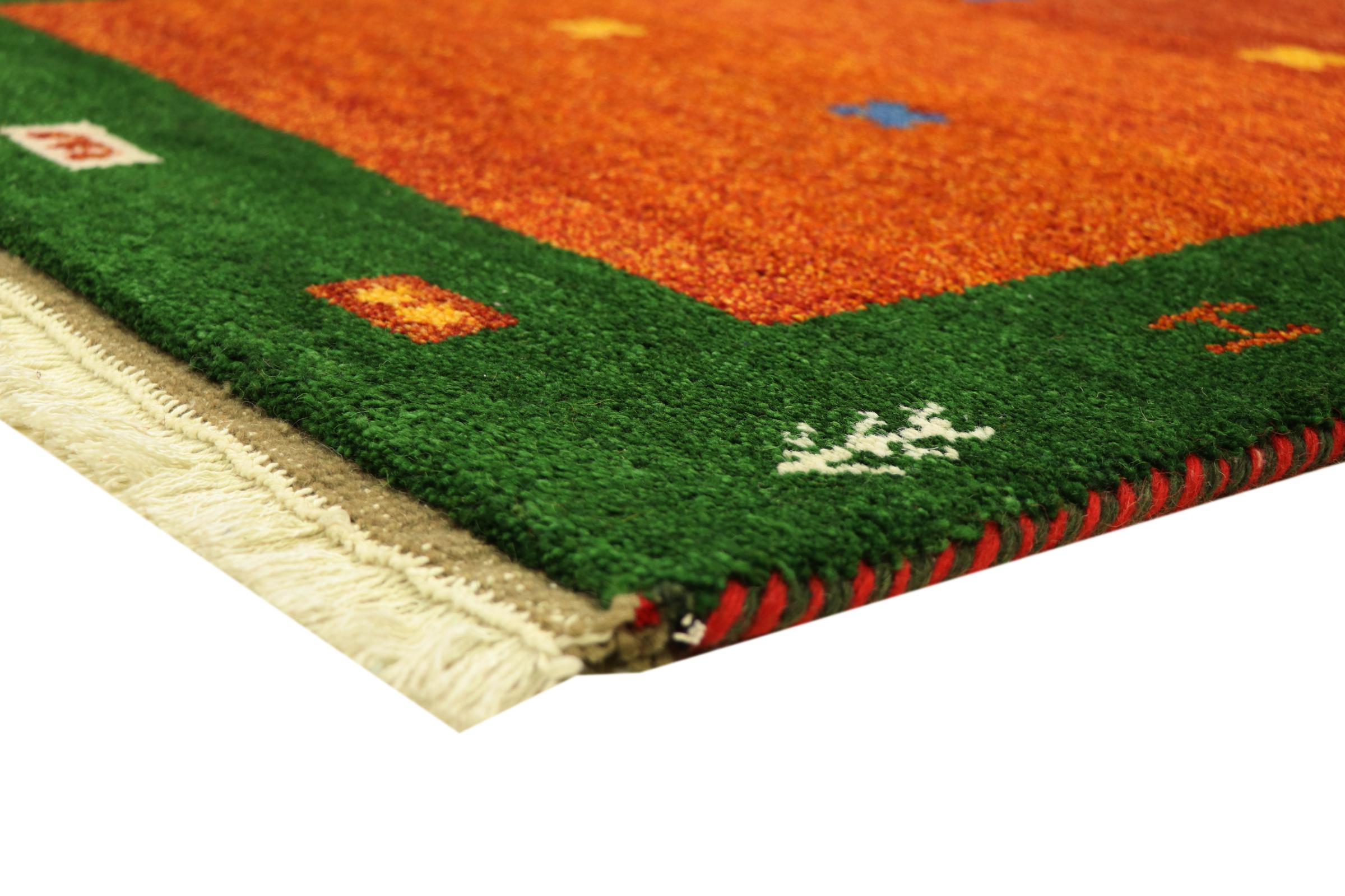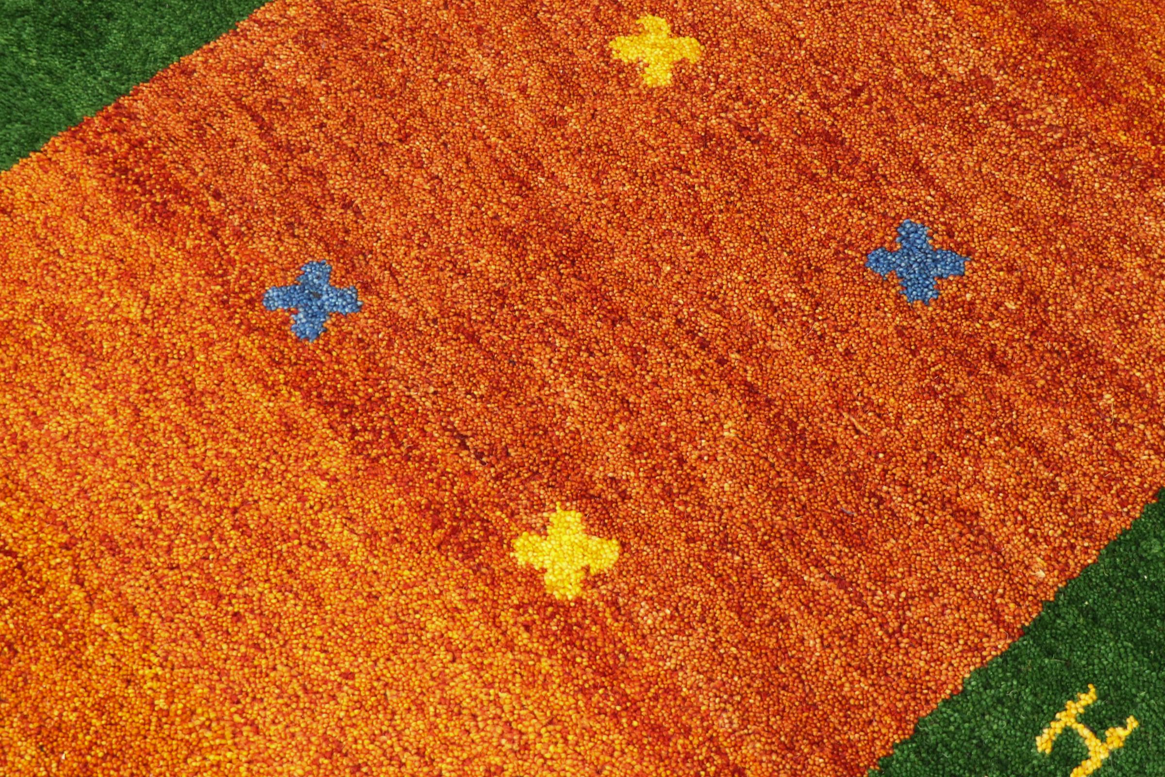 Esta hermosa alfombra de Gabbeh fue anudada a mano en la India. Las alfombras indias de Gabbeh están hechas de suave lana de oveja, son cómodas para los pies y tienen propiedades de aislamiento térmico. La mayoría de sus diseños son simples y modernos atemporales. Se inspiraron en los pueblos nómadas, que dejaban fluir en las alfombras motivos muy simples de su entorno. Las alfombras de Gabbeh de la India no se acercan mucho a la calidad de las de Gabbeh de Persia, pero tienen una muy buena relación precio-rendimiento. Por lo tanto, son perfectamente adecuadas como alfombras anudadas a mano para principiantes.