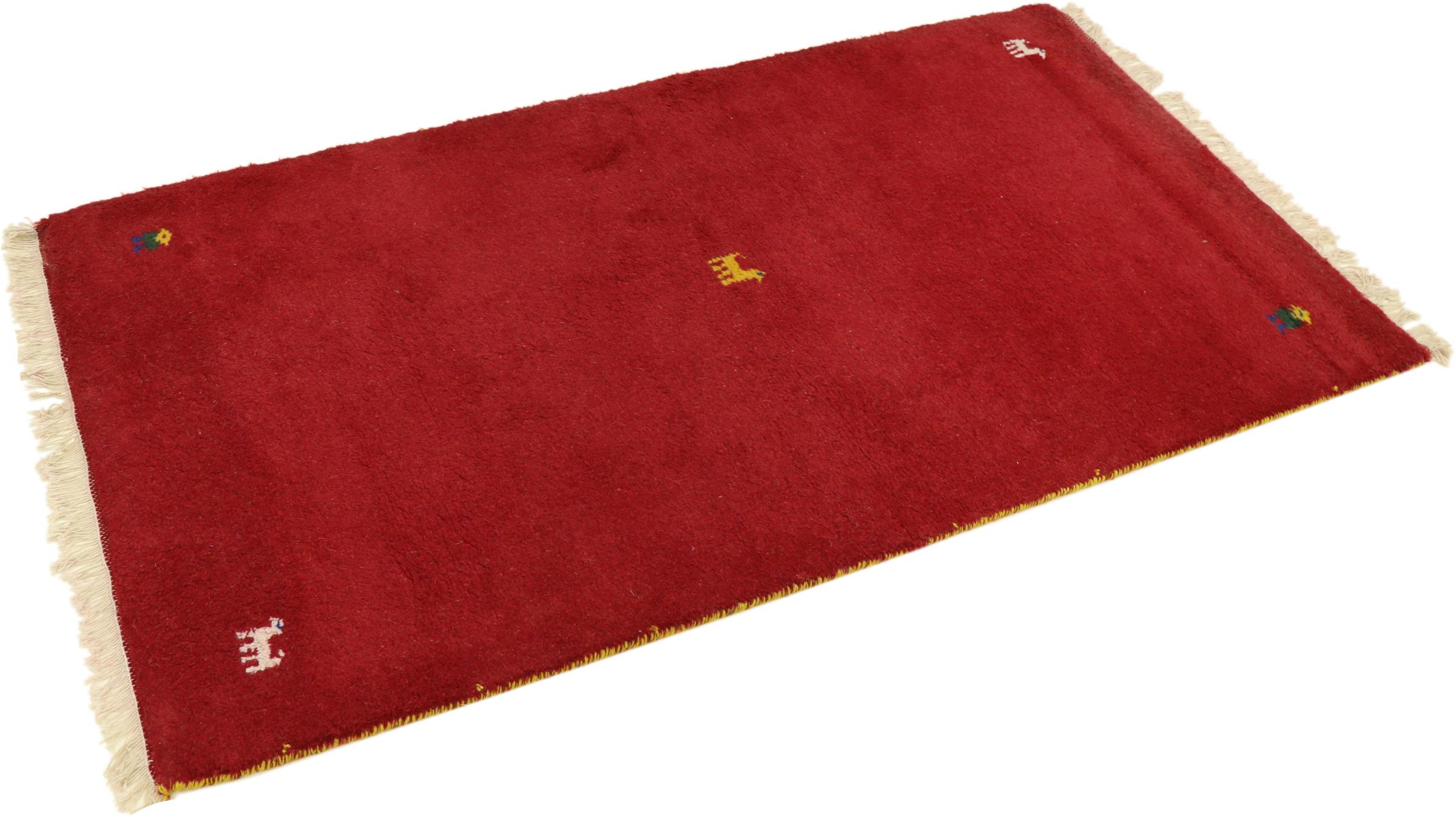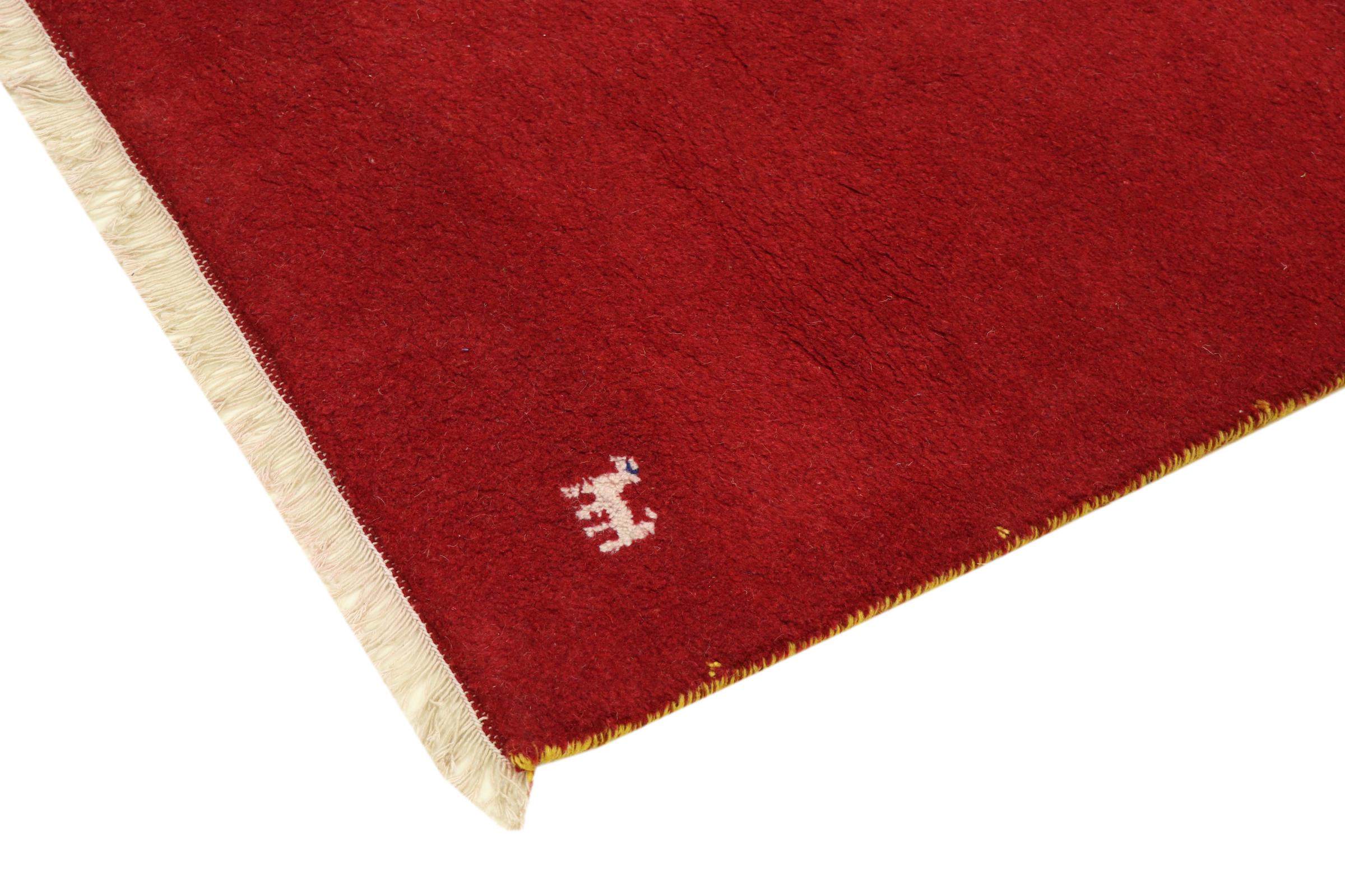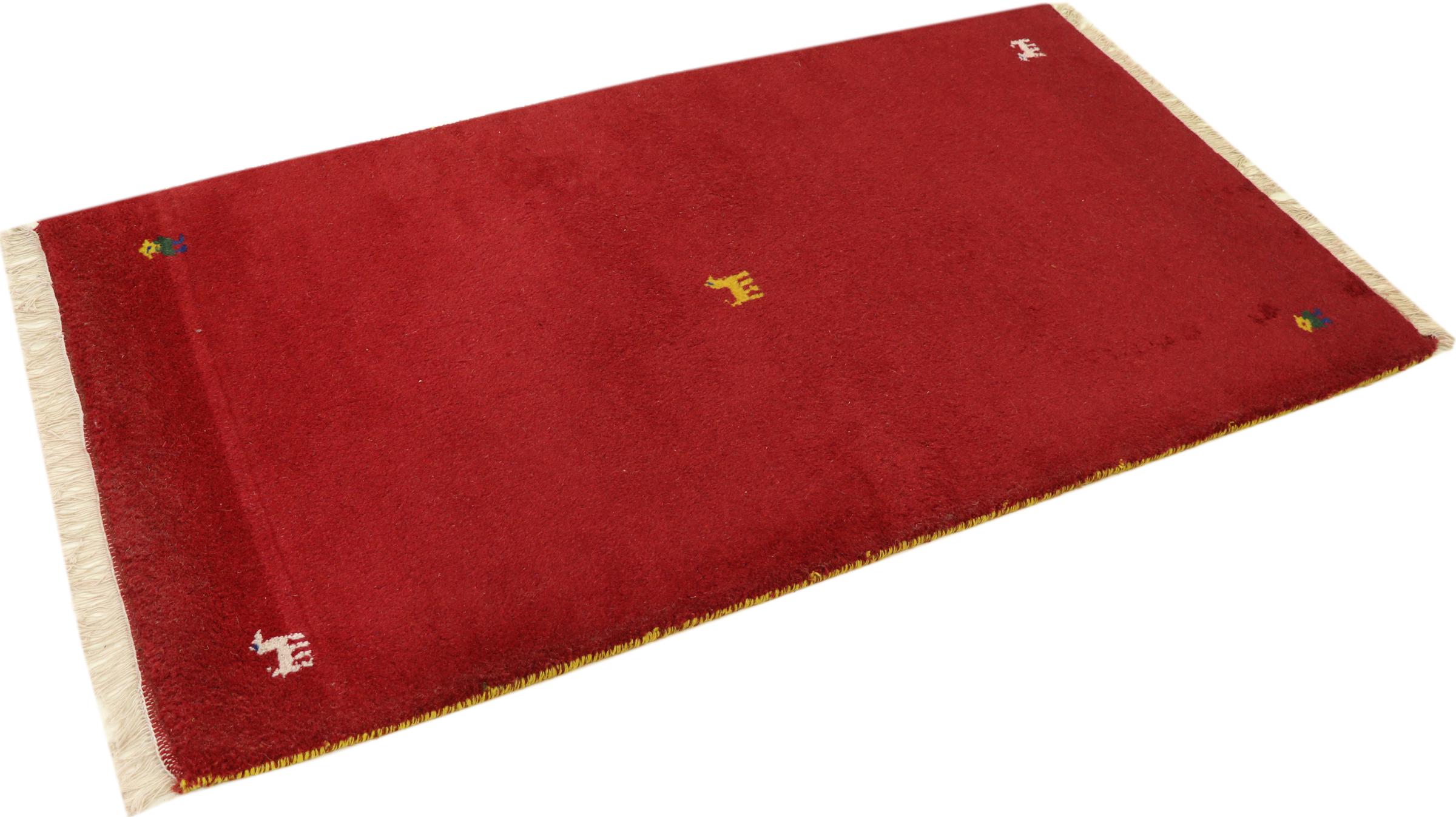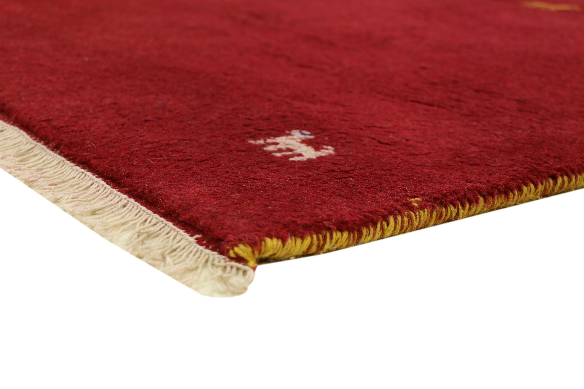 Esta hermosa alfombra de Gabbeh fue anudada a mano en la India. Las alfombras indias de Gabbeh están hechas de suave lana de oveja, son cómodas para los pies y tienen propiedades de aislamiento térmico. La mayoría de sus diseños son simples y modernos atemporales. Se inspiraron en los pueblos nómadas, que dejaban fluir en las alfombras motivos muy simples de su entorno. Las alfombras de Gabbeh de la India no se acercan mucho a la calidad de las de Gabbeh de Persia, pero tienen una muy buena relación precio-rendimiento. Por lo tanto, son perfectamente adecuadas como alfombras anudadas a mano para principiantes.