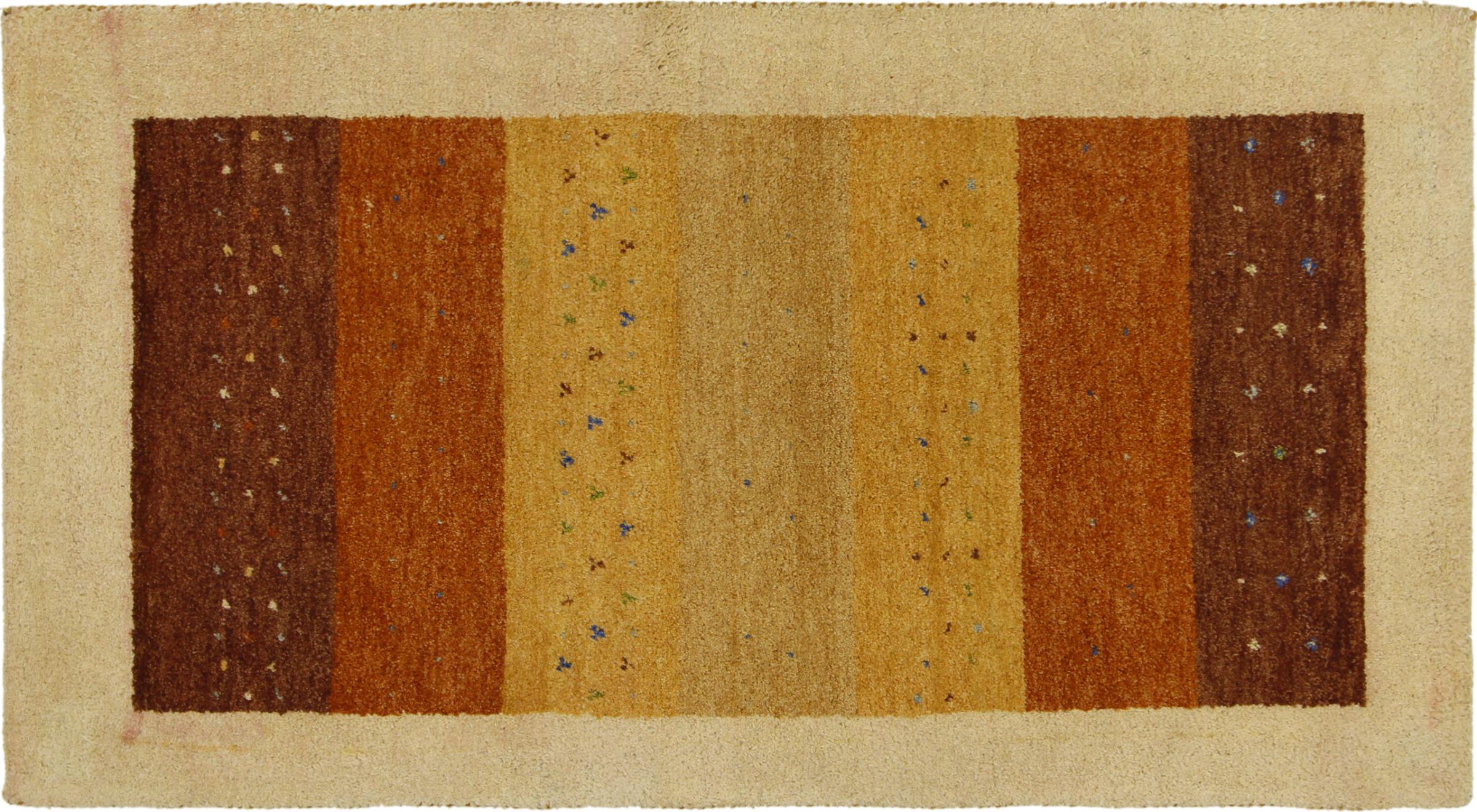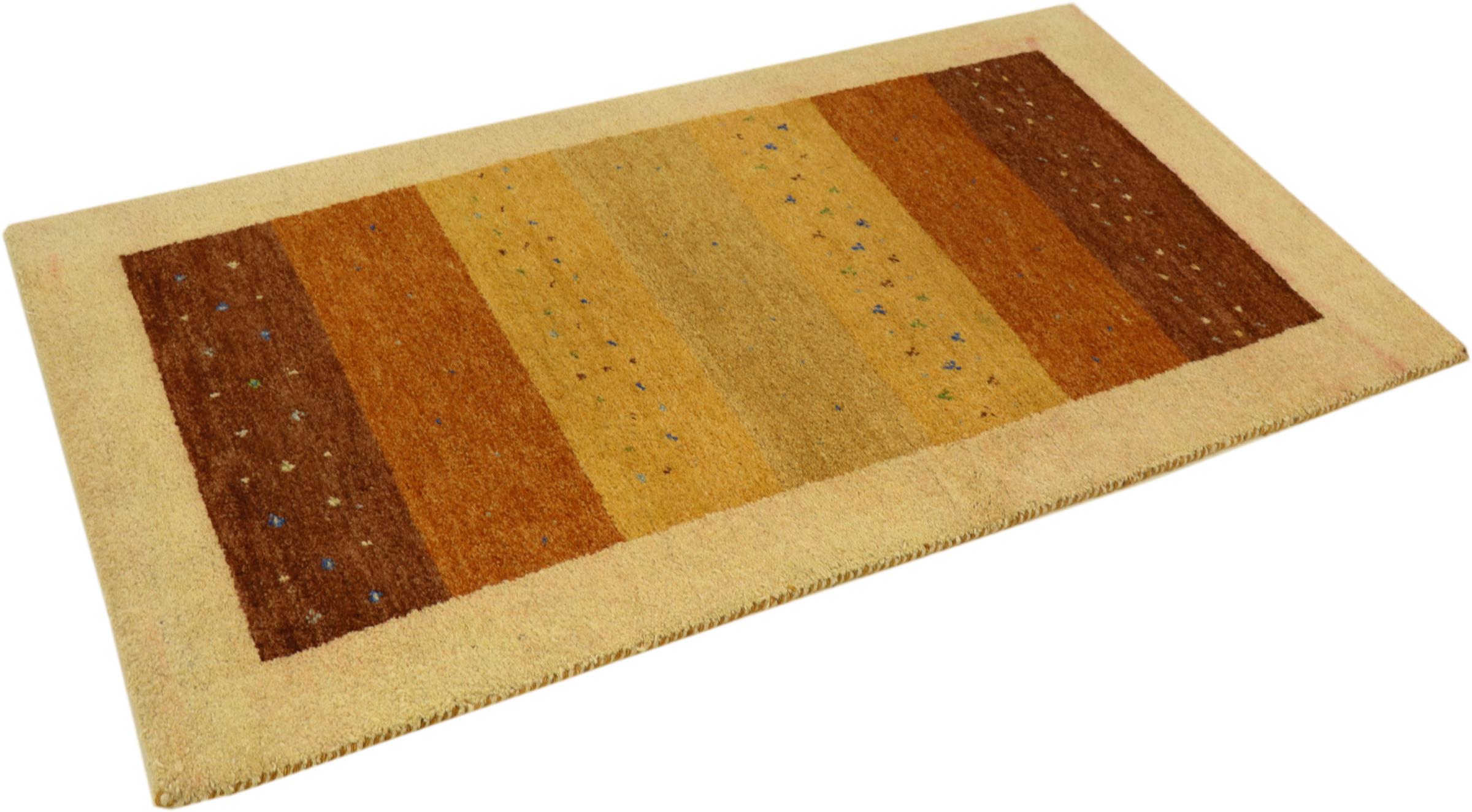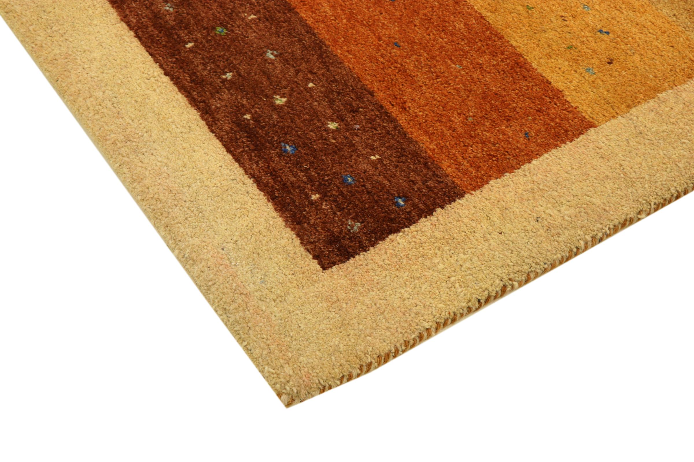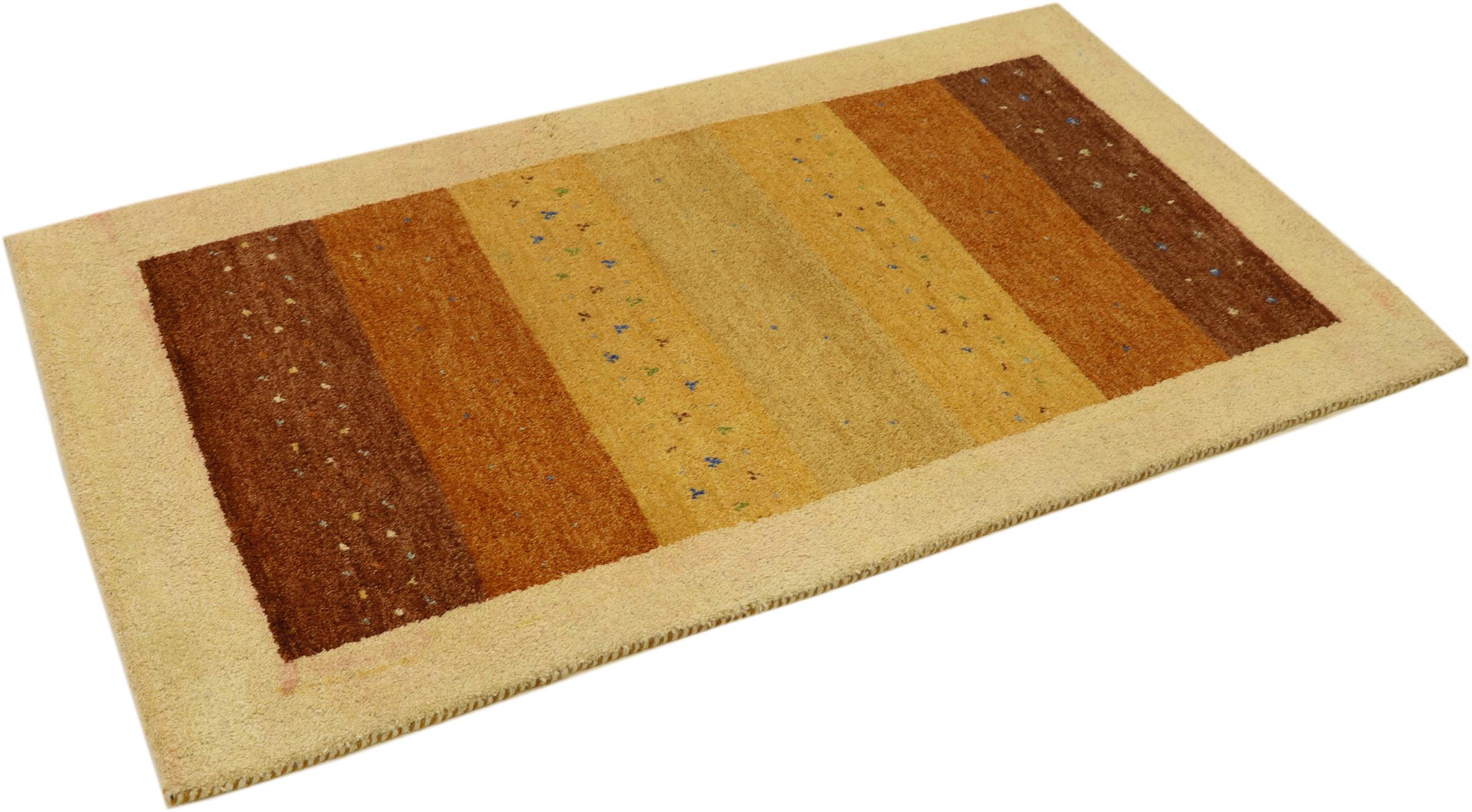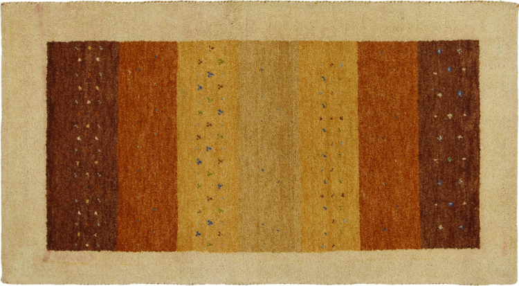 Esta hermosa alfombra de Gabbeh fue anudada a mano en la India. Las alfombras indias de Gabbeh están hechas de suave lana de oveja, son cómodas para los pies y tienen propiedades de aislamiento térmico. La mayoría de sus diseños son simples y modernos atemporales. Se inspiraron en los pueblos nómadas, que dejaban fluir en las alfombras motivos muy simples de su entorno. Las alfombras de Gabbeh de la India no se acercan mucho a la calidad de las de Gabbeh de Persia, pero tienen una muy buena relación precio-rendimiento. Por lo tanto, son perfectamente adecuadas como alfombras anudadas a mano para principiantes.